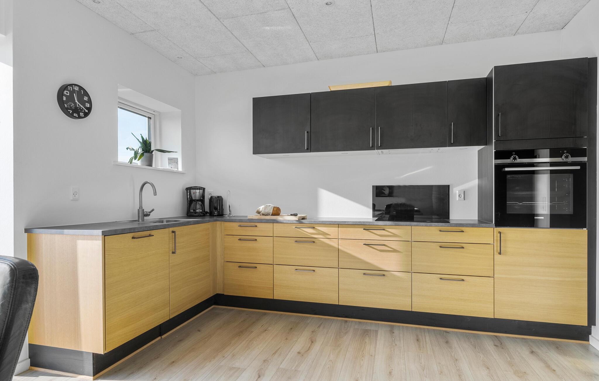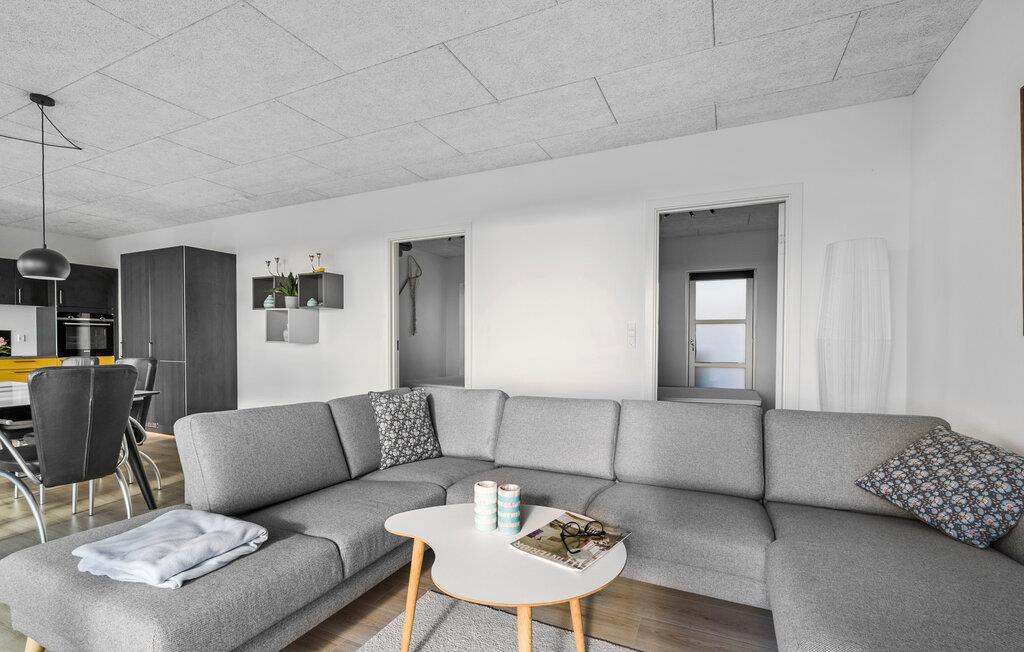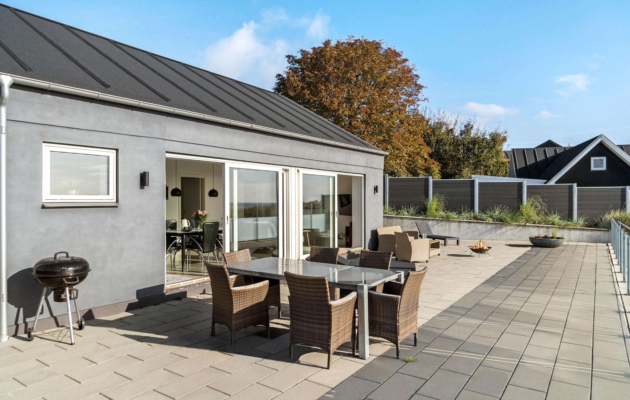 In unmittelbarer Nähe zum Bjert Strand besticht Ihr Ferienhaus durch seine elegante Ausstattung, wodurch ein echtes Wohlfühlambiente entsteht. Im großzügigen Wohnbereich mit seinen großen Fenstern und der offenen Küche können Sie gemeinsam Zeit verbringen, sei es beim Spielen, Essen oder einfach beim Entspannen. Der Esstisch bietet ausreichend Platz für alle und lädt dazu ein, den sagenhaften Blick auf das Meer zu genießen. Relaxen Sie auch auf den gemütlichen Sitzgelegenheiten im Wohnbereich. Ein Grillabend auf der Terrasse zum Tagesabschluss ist eine wunderbare Möglichkeit, den Tag ausklingen zu lassen.