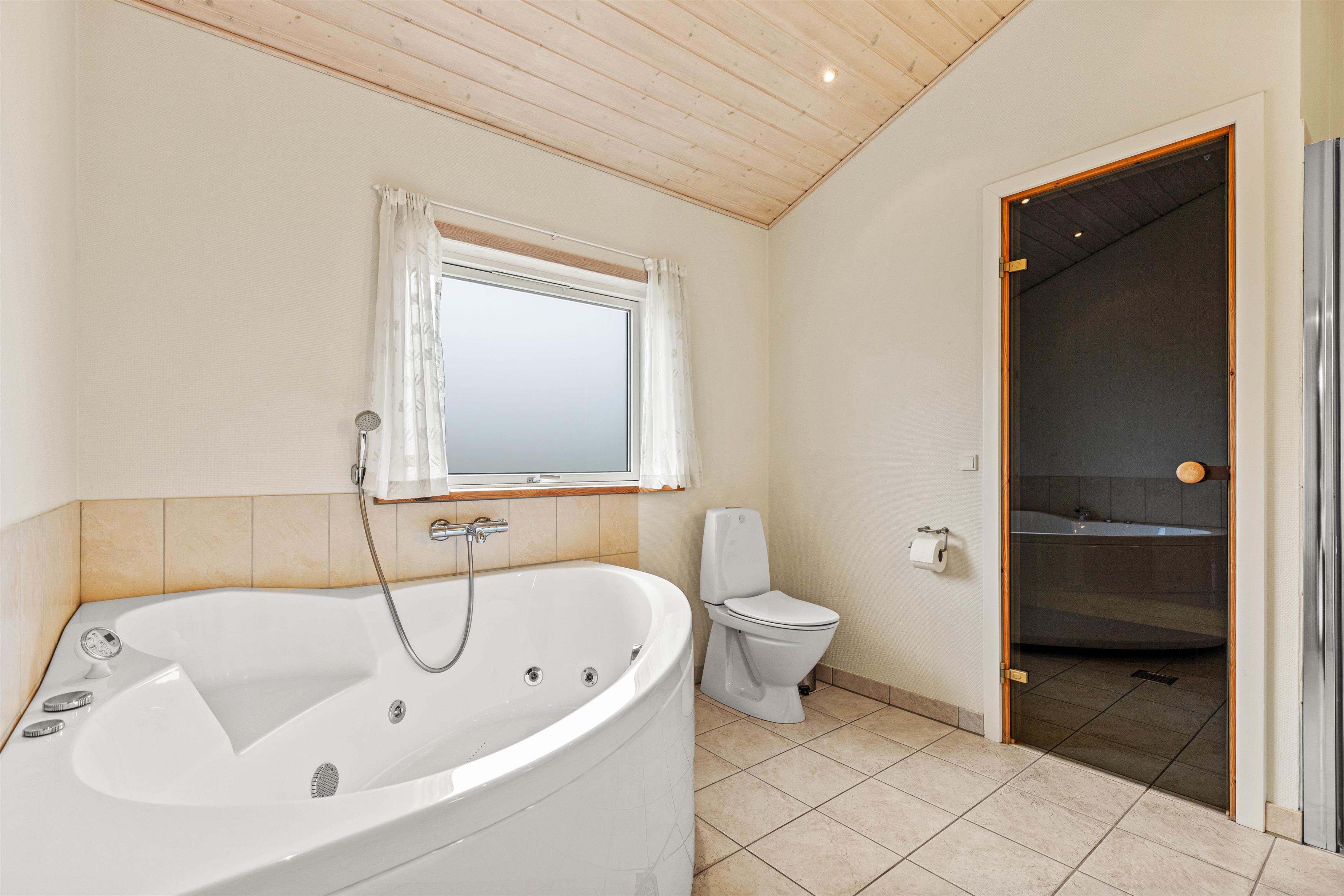 The large bathroom features both a sauna and a whirlpool for your use. After a long day in the fresh air, you can warm up and put your feet up here.