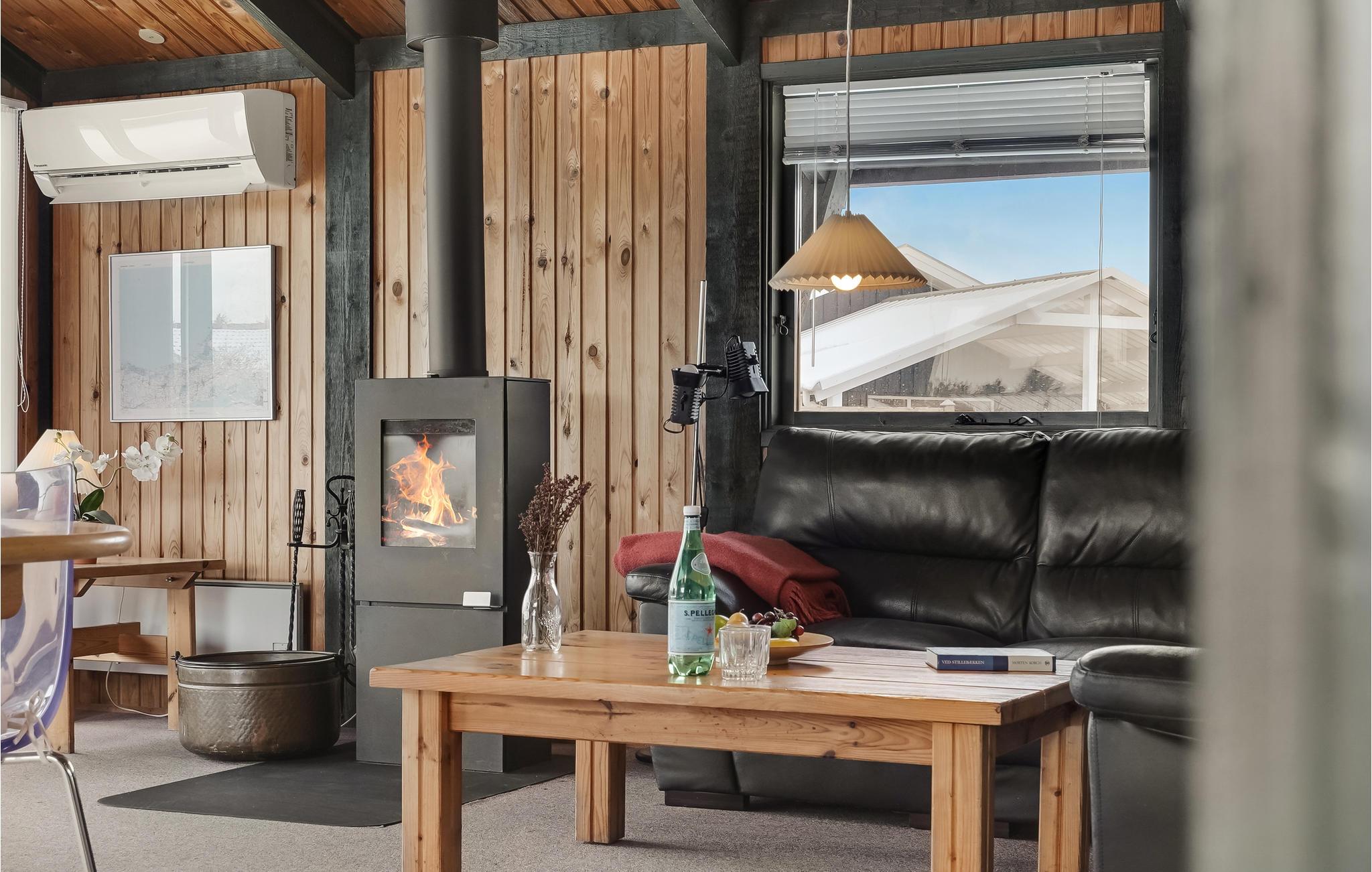 Dieses Ferienhaus in Blokhus bietet einen ruhigen Urlaub für Familien oder kleinere Gruppen. Die offene Küche ist funktional und geht nahtlos in das Wohnzimmer über, das durch große Fenster Licht und einen schönen Blick auf das umliegende Grundstück bietet. Die gemütliche Sofaecke verspricht entspannte Stunden am Feuer des Kaminofens, während das urige Holzambiente für die ganz richtige Sommerhausstimmung sorgt.