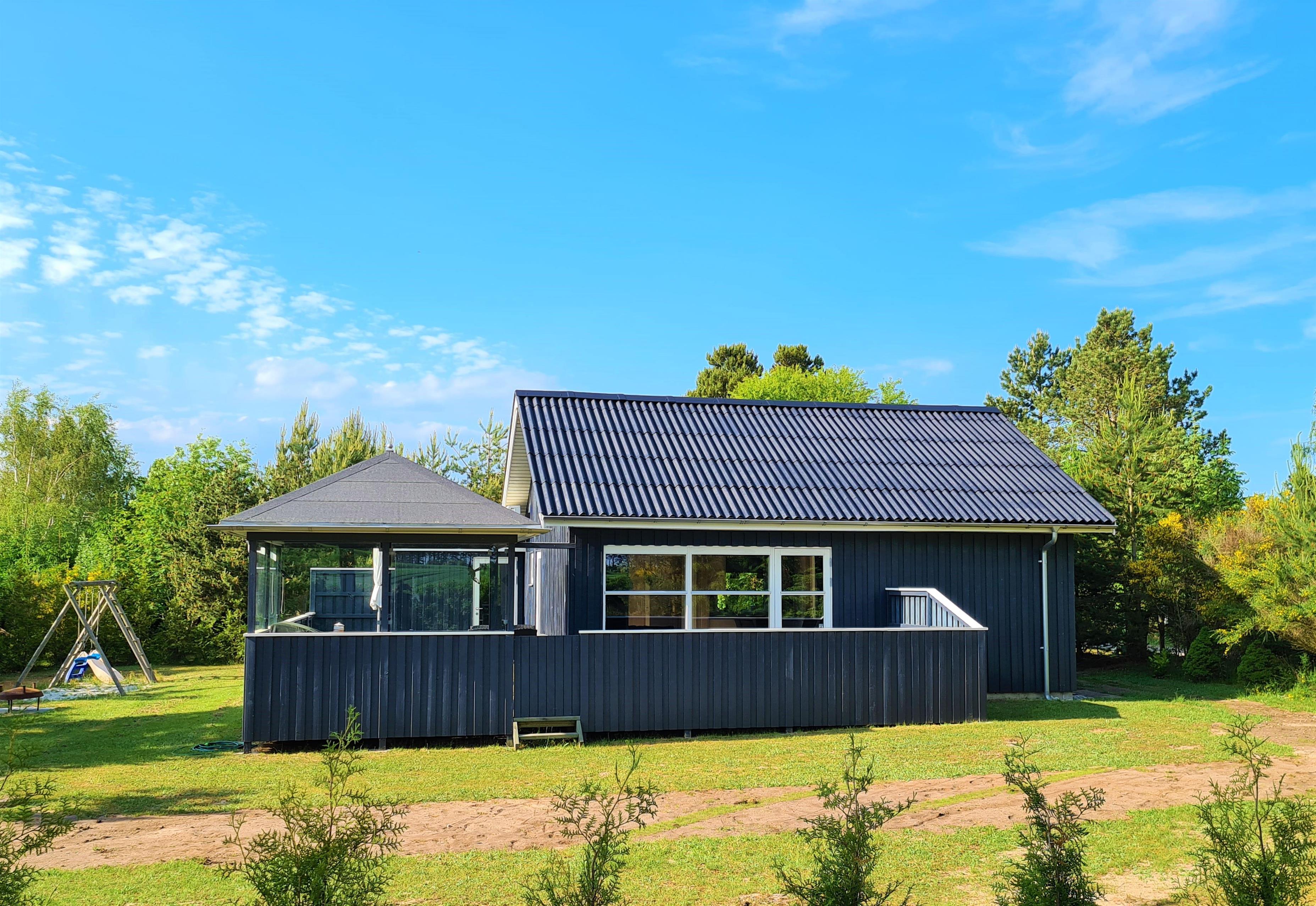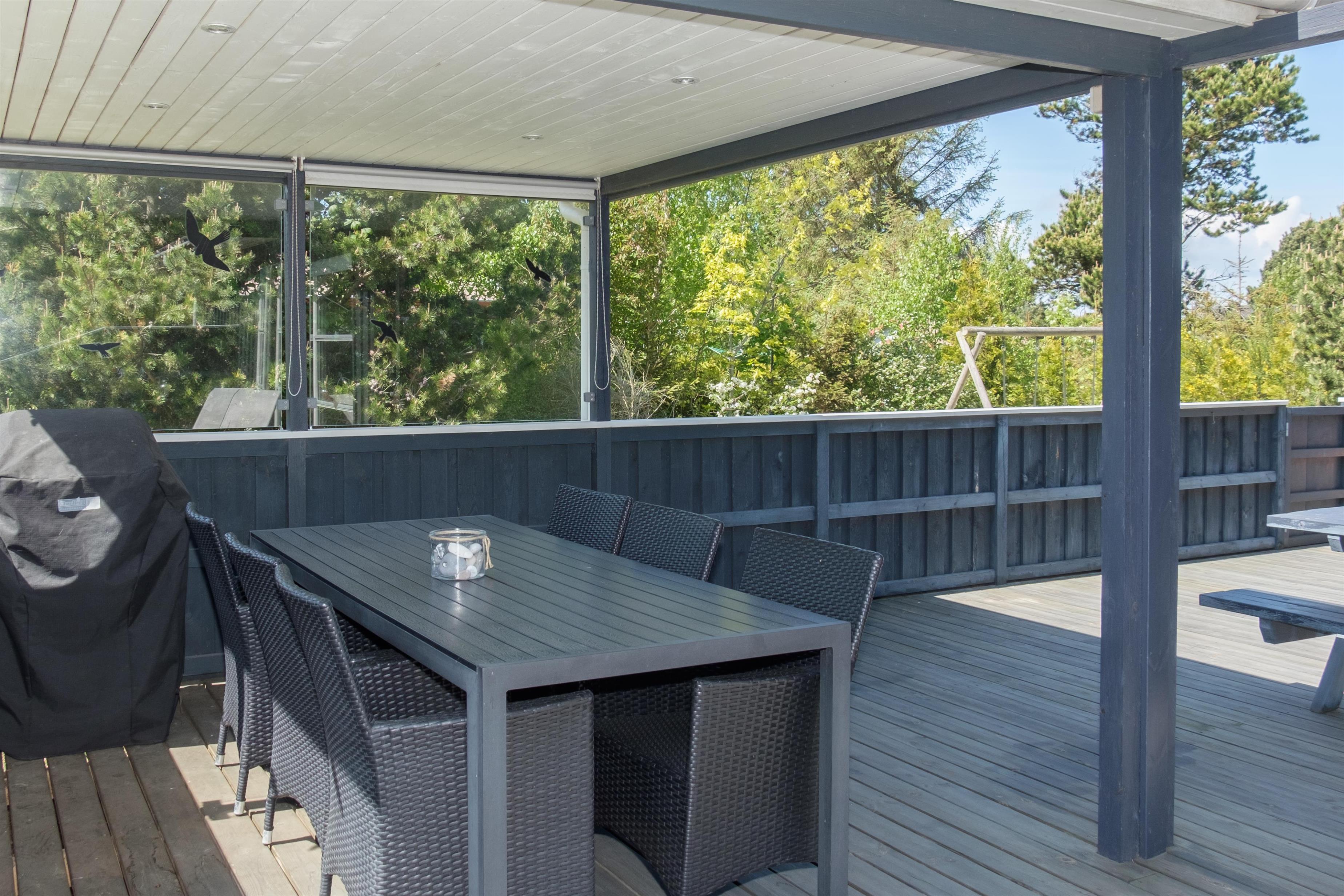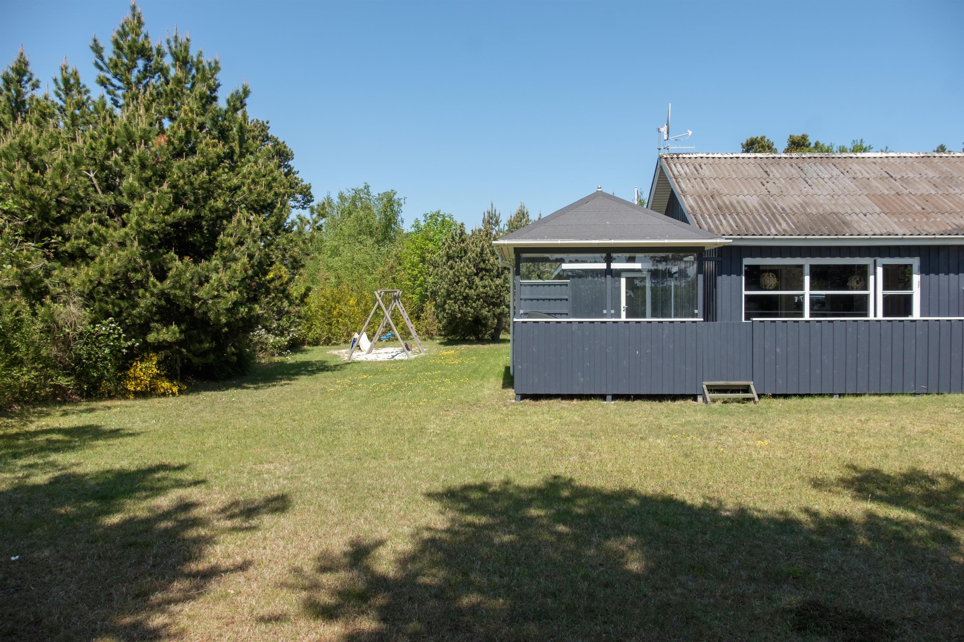 This continuously modernized and well-maintained holiday home is located on a wooded natural lot just 300 meters from Boeslum Strand. Lovely, sheltered, southwest-facing wooden terrace with a gazebo and good garden furniture, sun loungers, parasol, and a grill. For the children, there is a swing and climbing frame with a sand surface. The carport has a fish cleaning area.