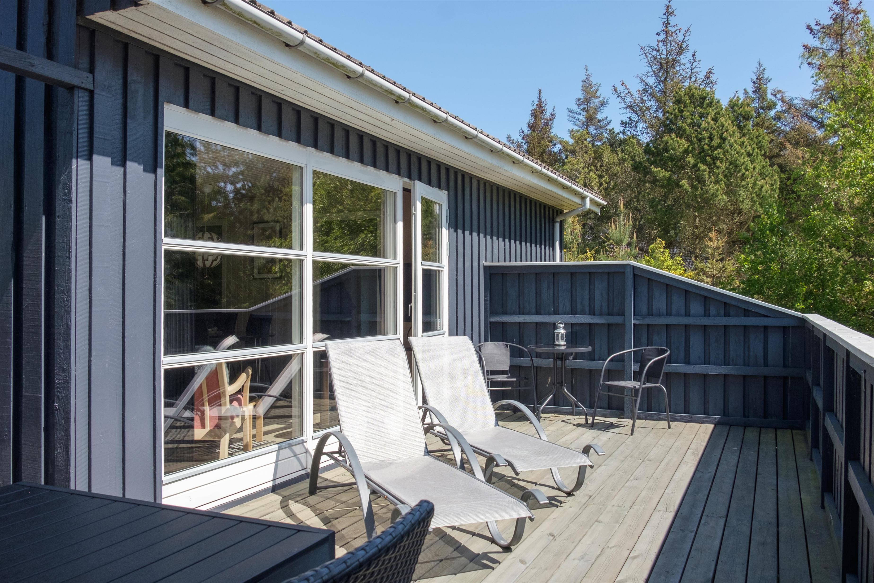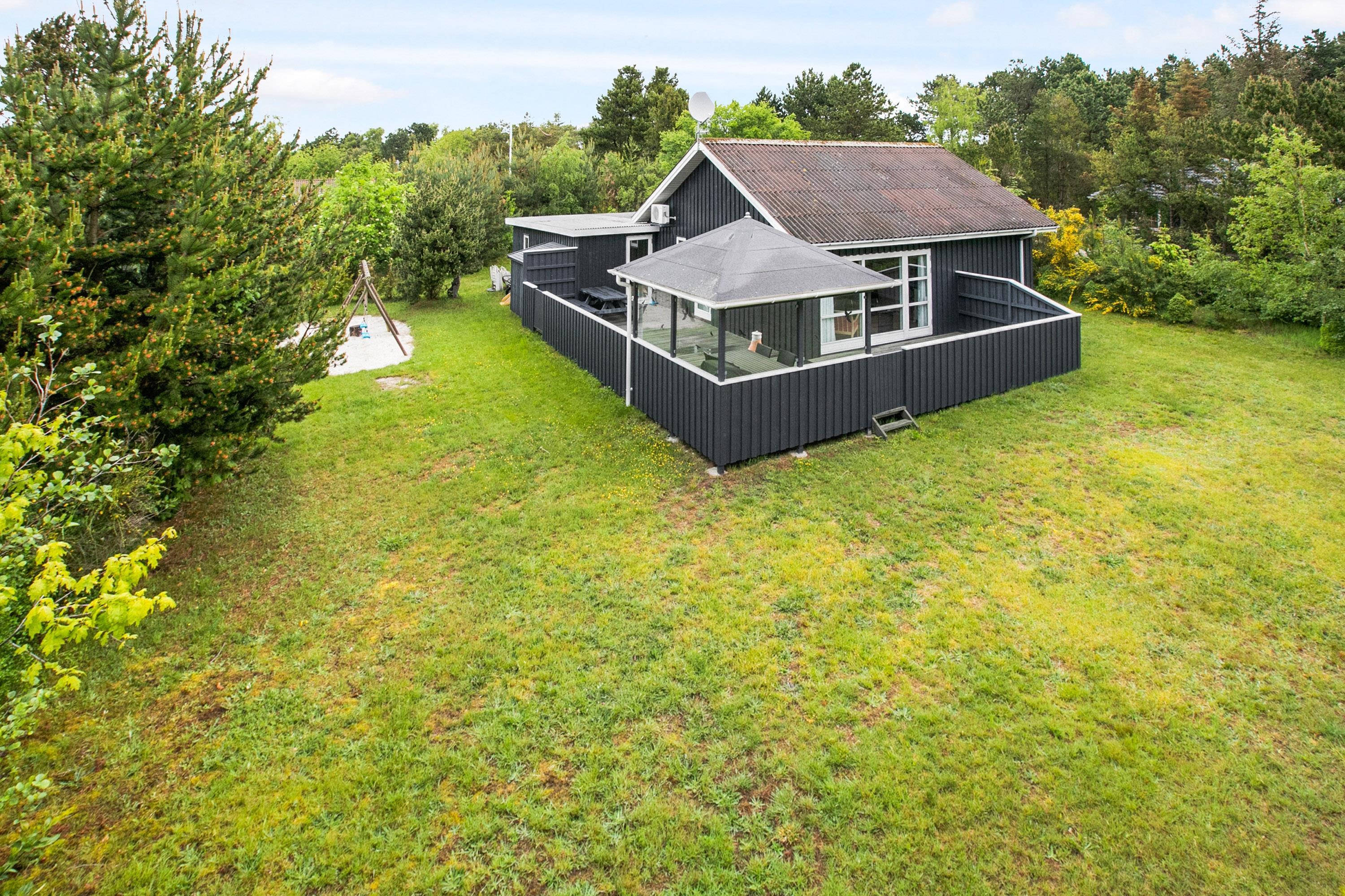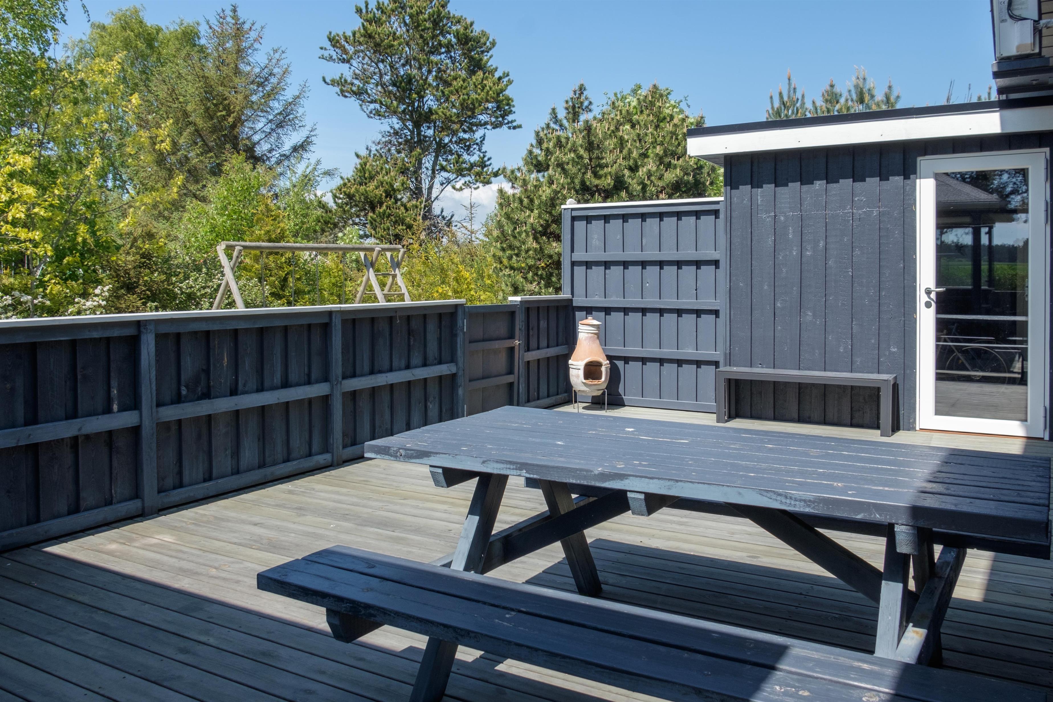 This continuously modernized and well-maintained holiday home is located on a wooded natural lot just 300 meters from Boeslum Strand. Lovely, sheltered, southwest-facing wooden terrace with a gazebo and good garden furniture, sun loungers, parasol, and a grill. For the children, there is a swing and climbing frame with a sand surface. The carport has a fish cleaning area.