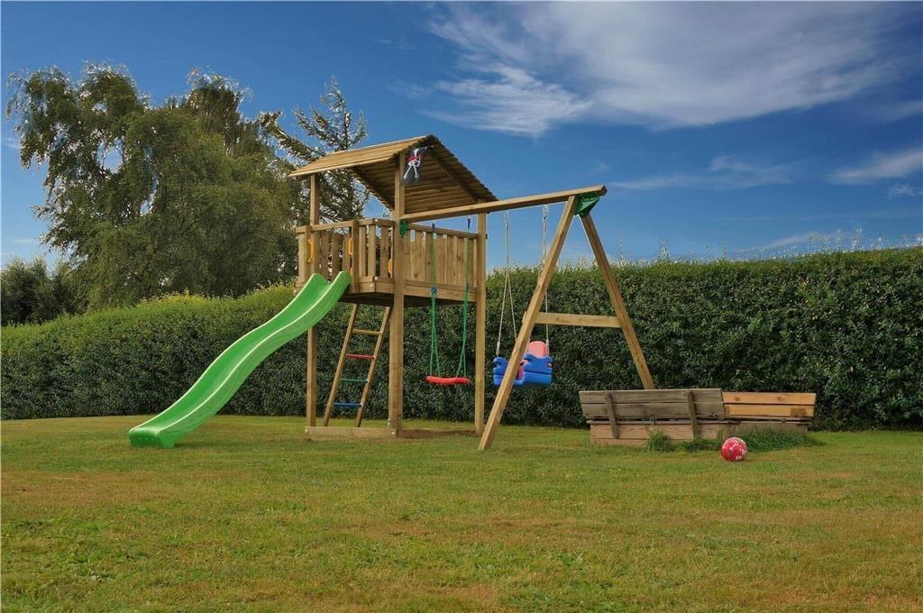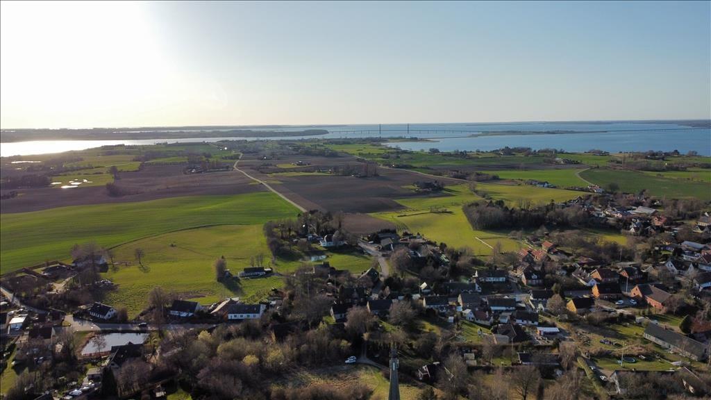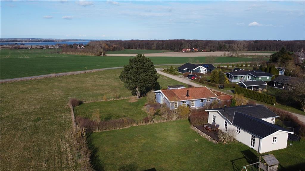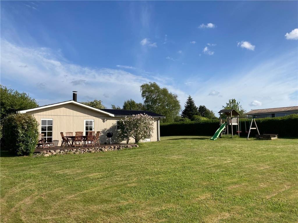 Das Haus liegt auf einem etwa 970 m² großen Grundstück mit Garten mit Schaukel, Sandkasten und Teakgartenmöbeln. Schöner Ausblick über weite Felder bis hin zur Ostsee und dem Ulvsund.