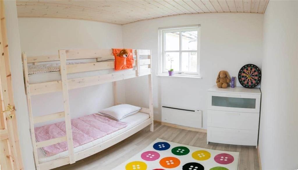 Zwei Schlafzimmer mit je ein Doppelbett, ein Kinderzimmer mit Etagenbett.