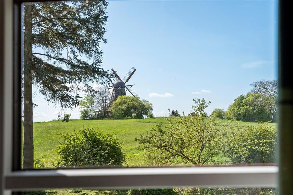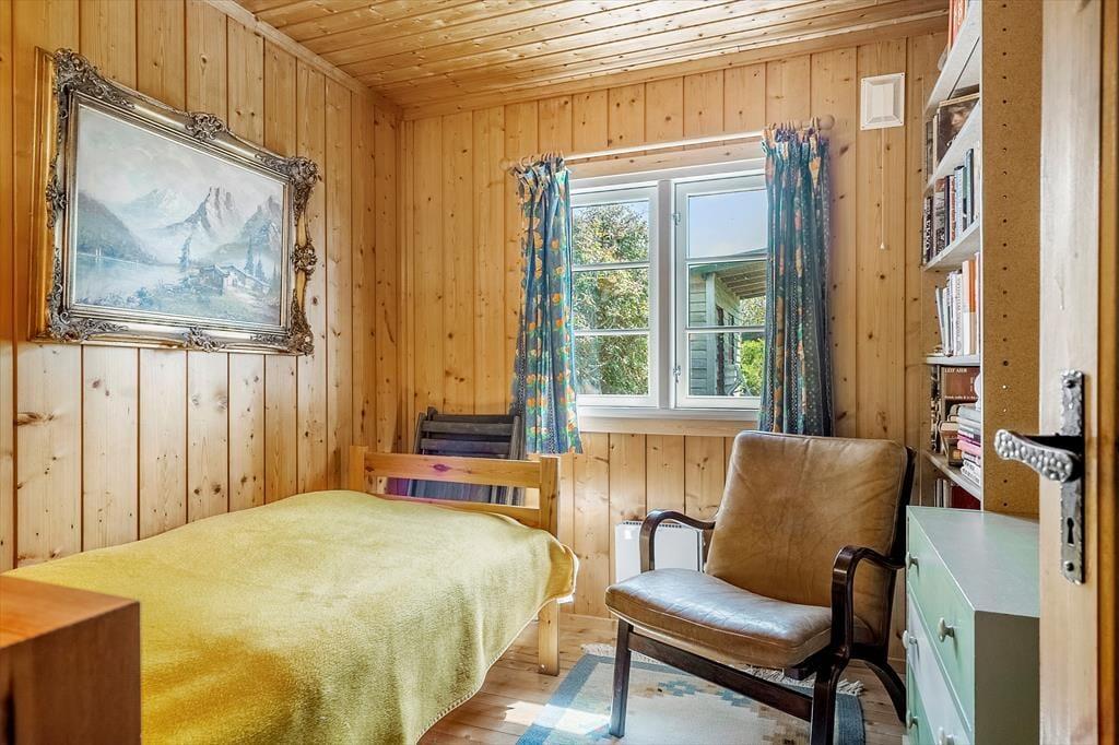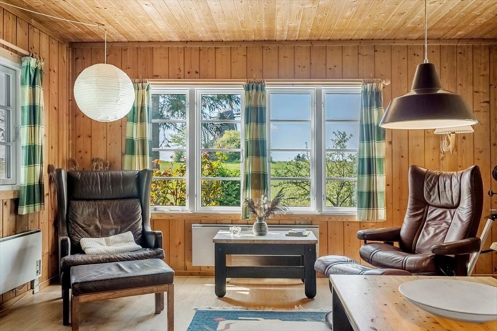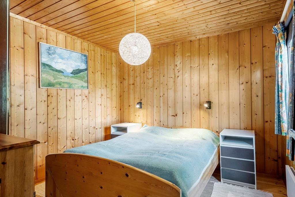 Hier können Sie Ruhe und Frieden einkehren lassen und in den gemütlichen und einladenden Zimmern gemeinsam Ihren Urlaub genießen. Es gibt Platz für 4 Erwachsene und das Haus verfügt über eine Küche mit offener Verbindung zum Wohnzimmer, das mit einer guten Essecke und Sofagruppe sowie einem Fernseher und Wärmepumpe ausgestattet ist. Vom Wohnzimmer aus hat man einen Blick auf die alte Mühle auf Bogø. In der Küche können Sie die Mahlzeiten des Tages zubereiten und diese draußen auf der gemütlichen, überdachten Terrasse genießen. Es gibt 3 Zimmer, 1 mit einem Doppelbett und 2 mit einem Einzelbett. Hier können Sie sich zurückziehen und ein Nickerchen machen oder ein gutes Buch lesen. Das Sommerhaus verfügt über ein gutes und funktionelles Badezimmer mit Toilette, Waschbecken und Dusche, sowie einer von oben bedienbaren Waschmaschine.