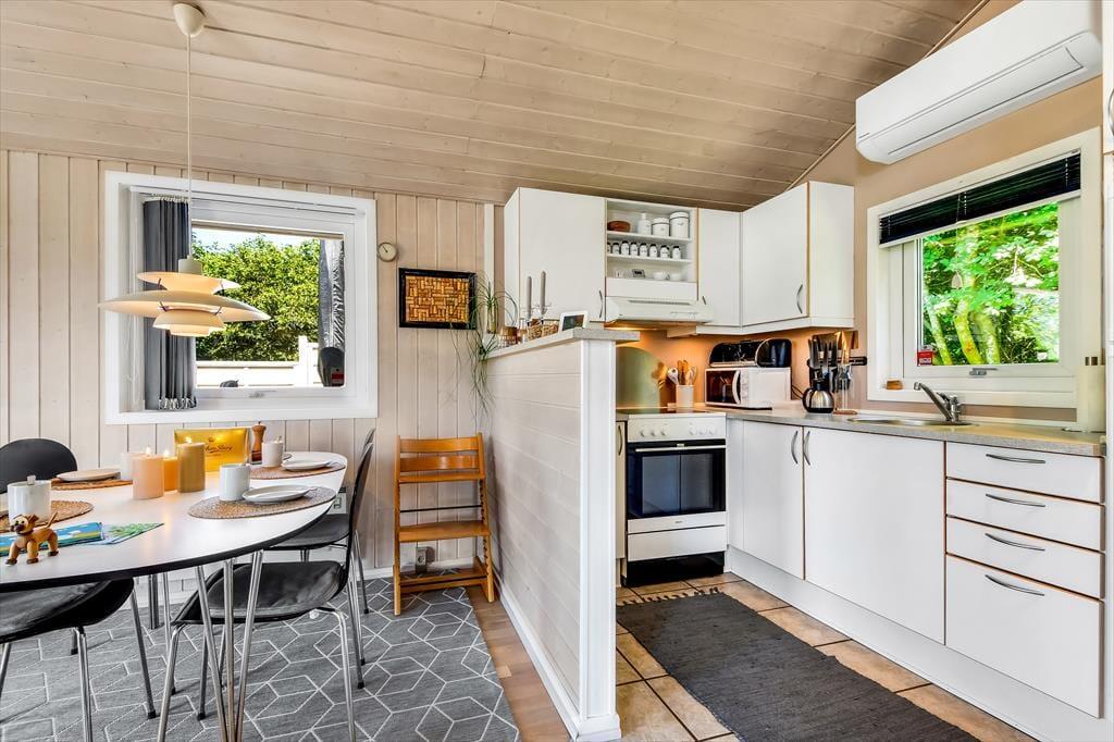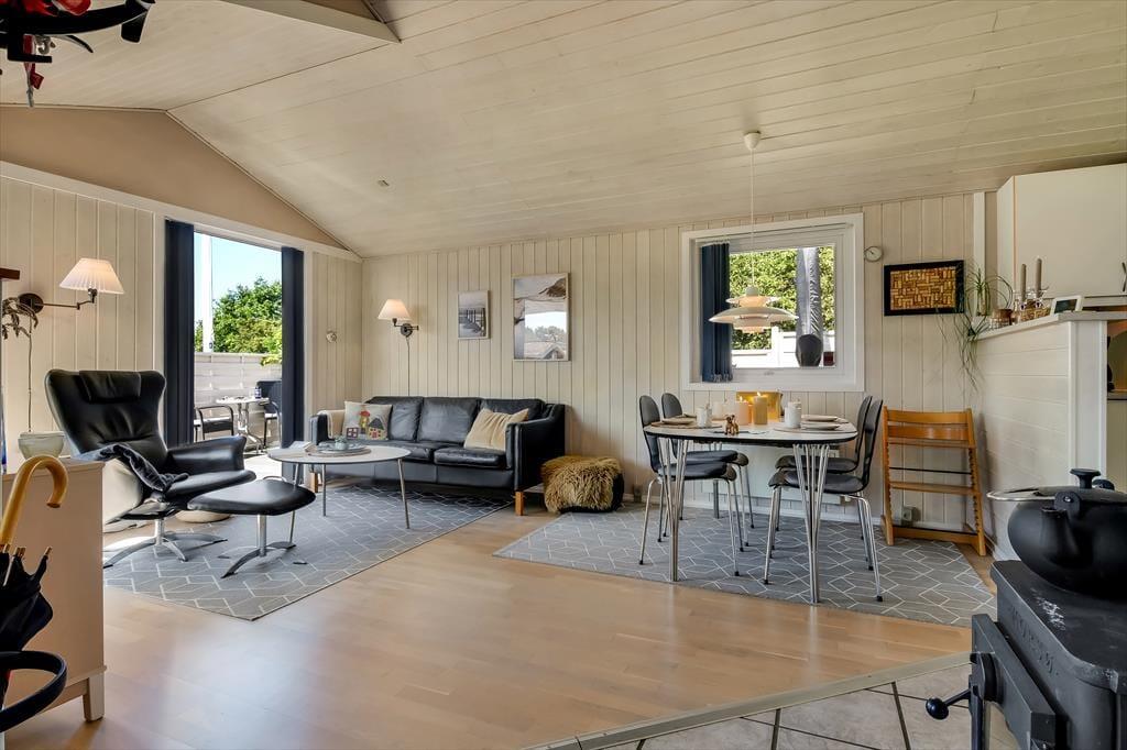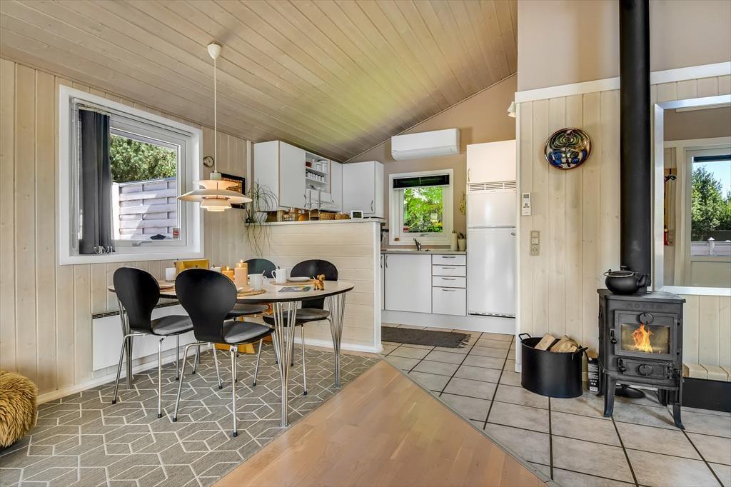 Dein Ferienhaus verzaubert mit einer traumhaft gemütlichen Wohnatmosphäre. Die 50 m² große Wohnfläche unterteilt sich in einen Aufenthaltsbereich, ein Badezimmer und zwei Schlafräume. Die Raumaufteilung macht das Haus zu einem idealen Ziel für eine kleine Familie oder ein alleinreisendes Paar. Ganz gleich, mit wem du anreist, du darfst dich auf entspannte Stunden im Wohnraum freuen, die vom knisternden Feuer im Kaminofen romantisch untermalt werden. Abwechslung und Unterhaltung garantiert der Flachbild-TV. Gemütlich geht es beim Lesen eines spannenden Buches zu, gesellig bei unterhaltsamen Brettspielen am Esstisch. Nach dem Mittagessen gönnst du dir sicher gern ein kleines Mittagsschläfchen, damit du die langen hellen Abendstunden in vollen Zügen mit deinen Lieben genießen kannst.