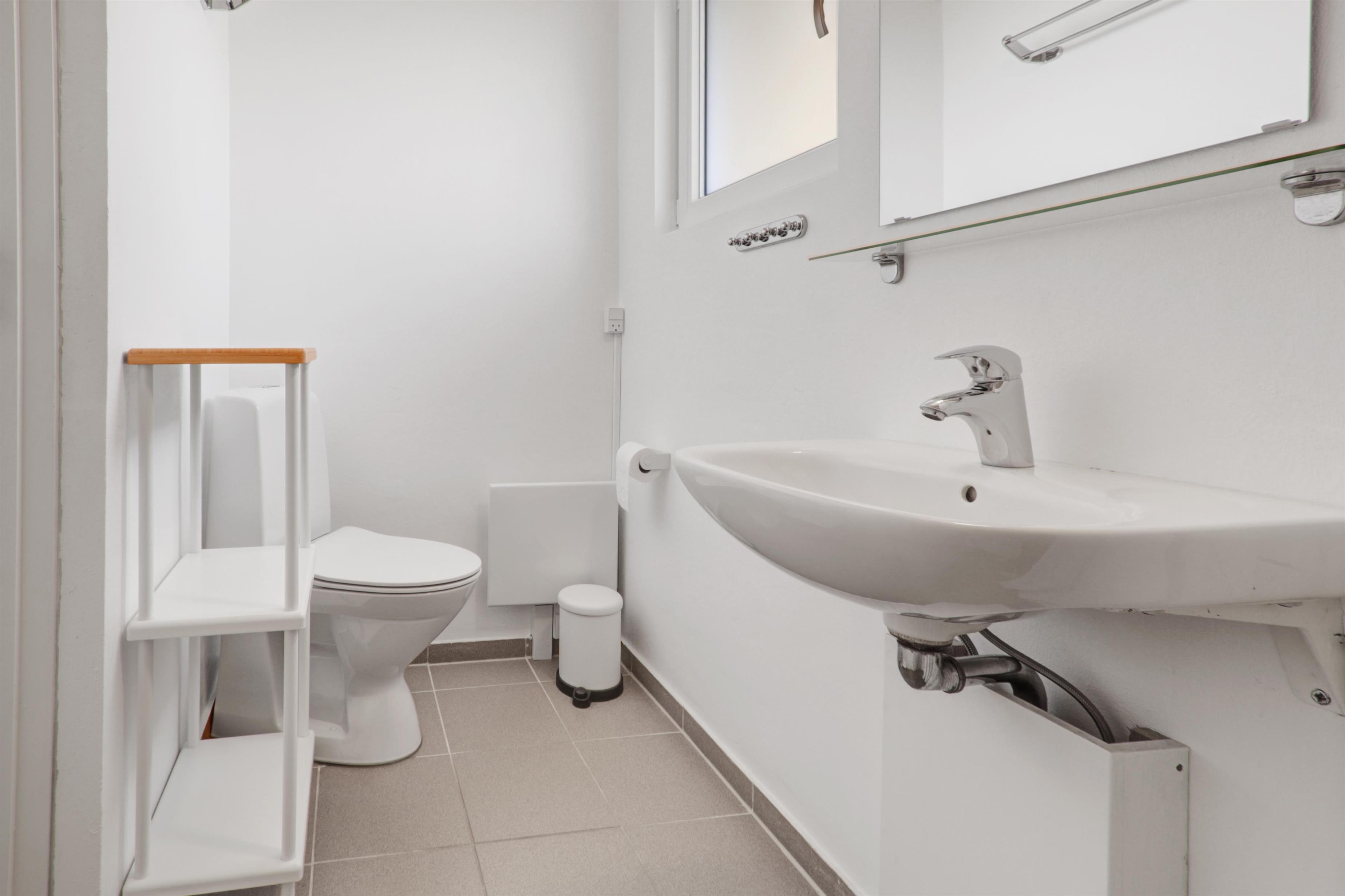 Die Wohnung verfügt über zwei Schlafzimmer (1 Doppelbett + 2 Einzelbetten) sowie ein Badezimmer mit Dusche, WC, Waschbecken und Fußbodenheizung. Außerdem gilt eine Nichtraucherregelung, und ein Haustier ist willkommen.