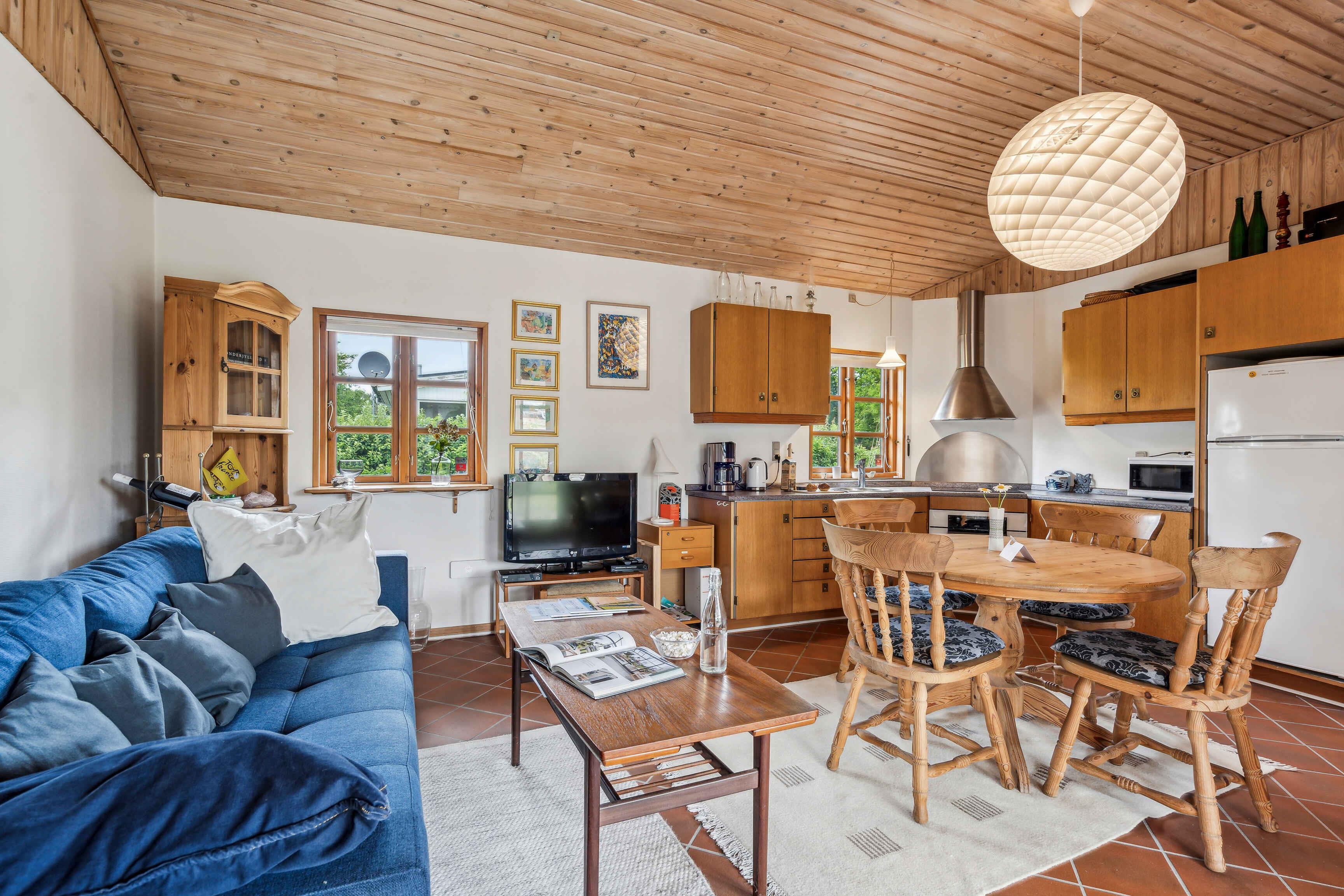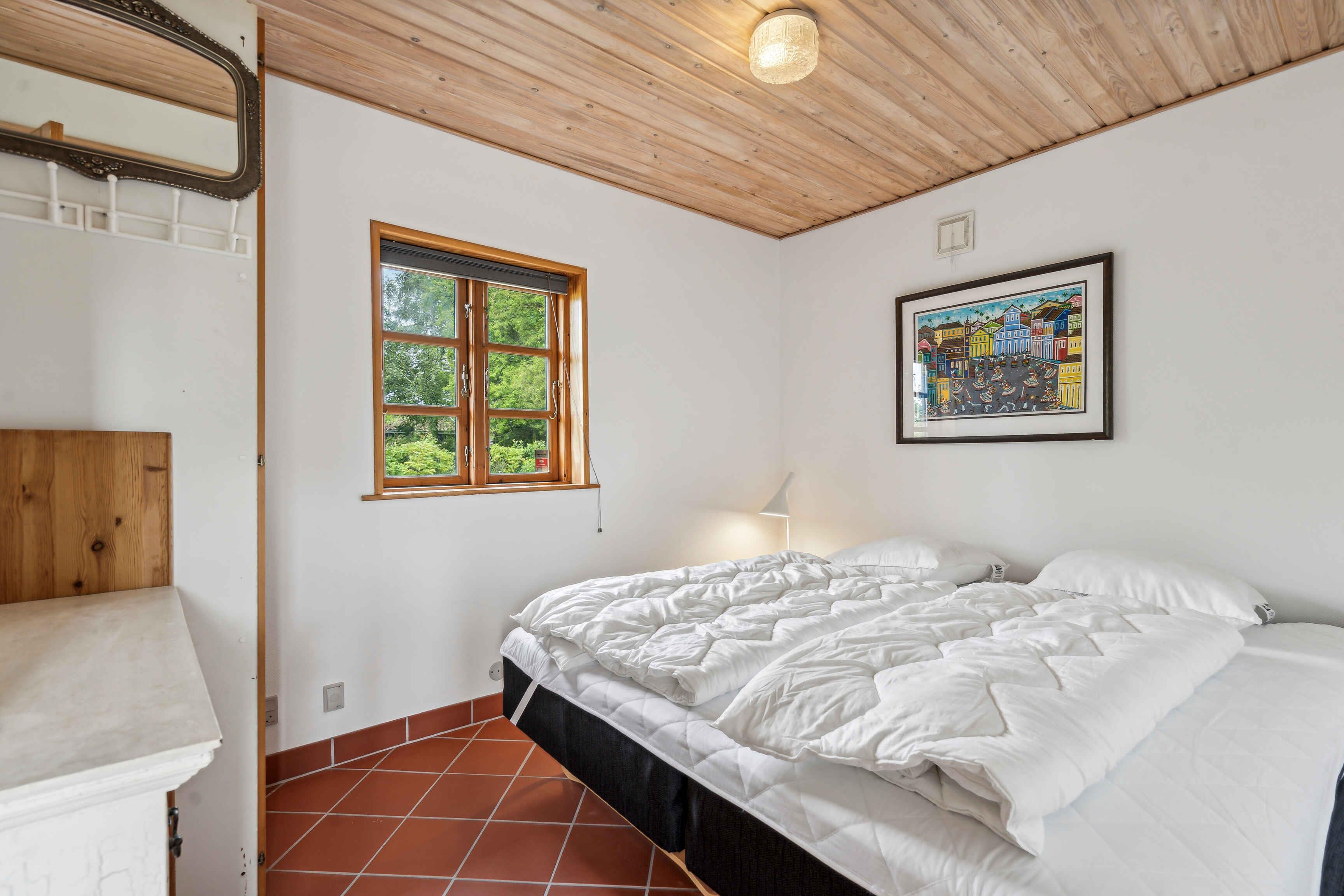 Indoors Welcome to a charming older summer house that exudes coziness and comfort. It accommodates 5 people, making it ideal for a family vacation or a relaxing weekend with friends. The summer house features a lovely open kitchen connected to the dining area and a cozy living room. In the living room, you will find a wood-burning stove that creates a warm and inviting atmosphere, as well as a comfortable sofa that can also be used as a sleeping space. The bathroom is equipped with a shower, washing machine, and delightful underfloor heating for extra comfort. The house boasts two bedrooms: one with a double bed and the other with a sofa bed, offering flexible sleeping arrangements. Both bedrooms are equipped with separate floor heating. Outdoors The summer house is situated on a small, beautiful natural plot close to the child-friendly beach in Vemmingbund. The garden is a biodiversity oasis, emphasizing the preservation and highlighting of various plants. Inside the holiday home, you will find information and stories about the garden's plants and their significance. The garden also features an elegant pavilion and a lovely covered terrace, furnished with garden furniture and a grill, allowing you to fully enjoy outdoor life. Location Vemmingbund is known for its child-friendly sandy beach and offers amenities such as a playground and restaurant, making it an ideal vacation destination for families. The area around Flensborg Fjord is rich in both historical and modern attractions. In northern Als lies Universe, an exciting theme park filled with natural phenomena and technology, fascinating both children and adults. For those interested in history, the History Center Dybbøl Banke is a must, where you can delve into the drama and events of the war in 1864. Sønderborg, the largest city in the area, offers a range of activities, including a visit to Sønderborg Castle, a stroll along the beautiful waterfront, and shopping in the charming pedestrian street. This summer house is the perfect place for a relaxing and enriching holiday, with both nature and culture at your fingertips. Note: Not for commercial rental.