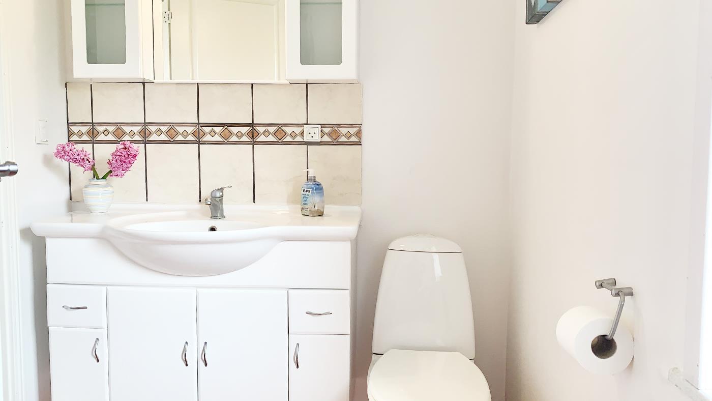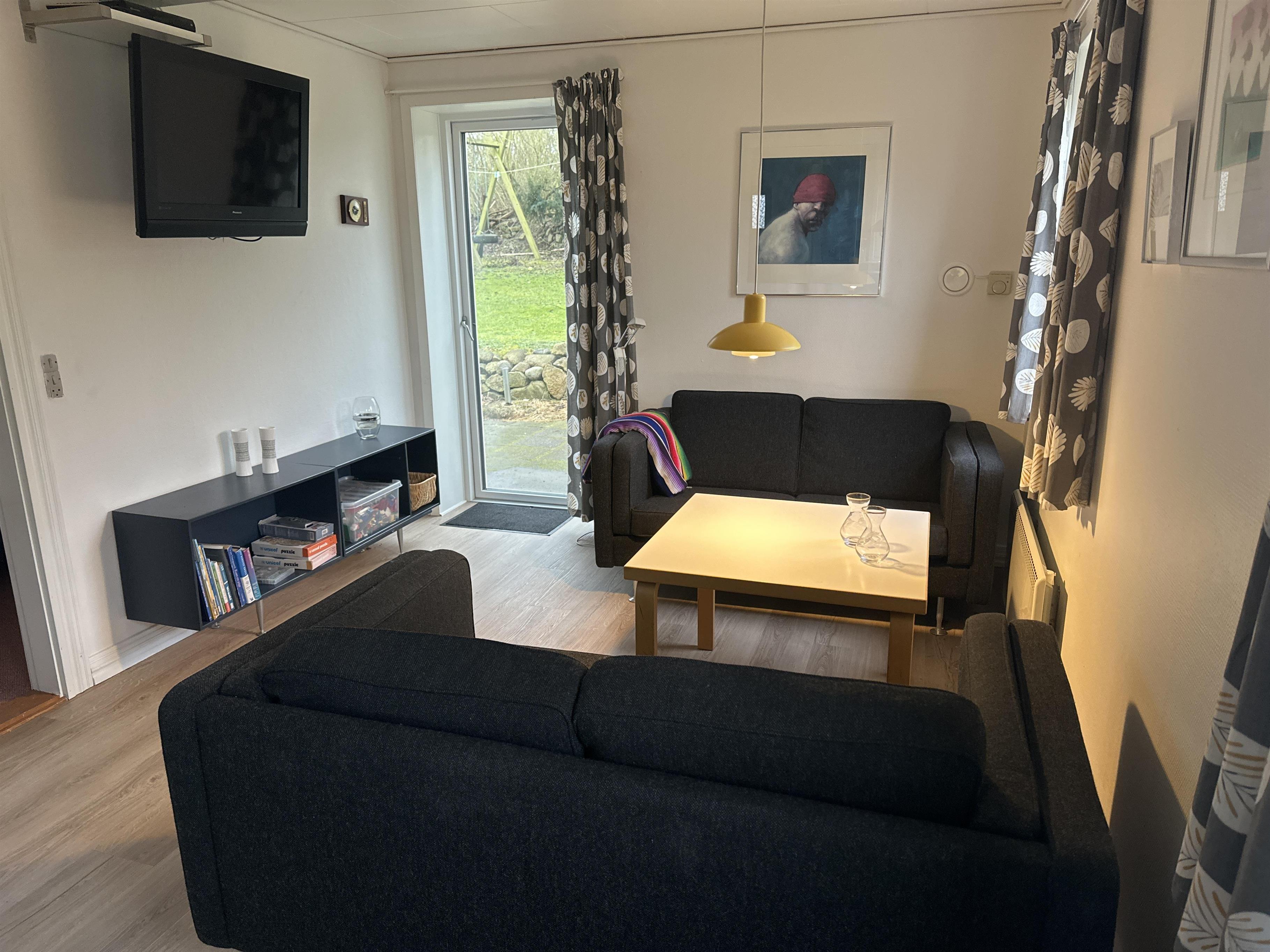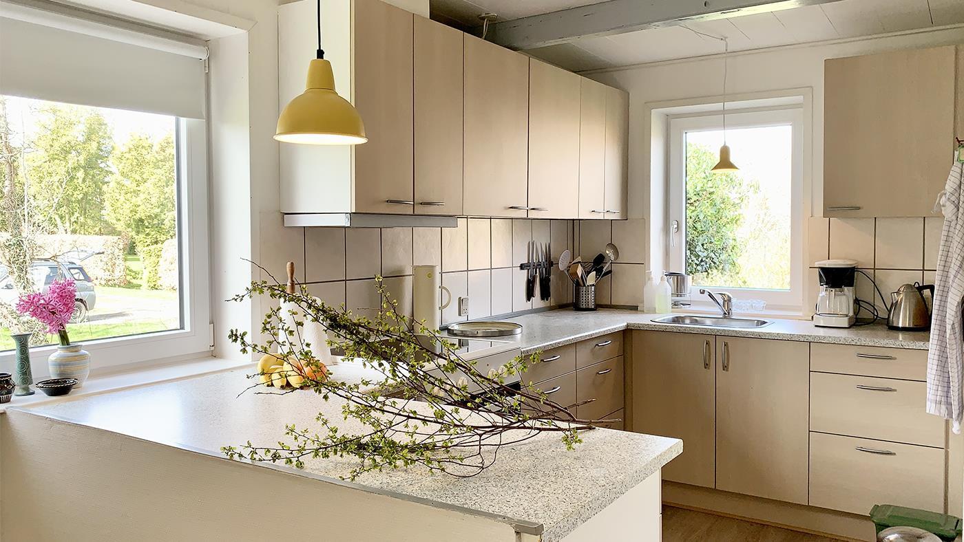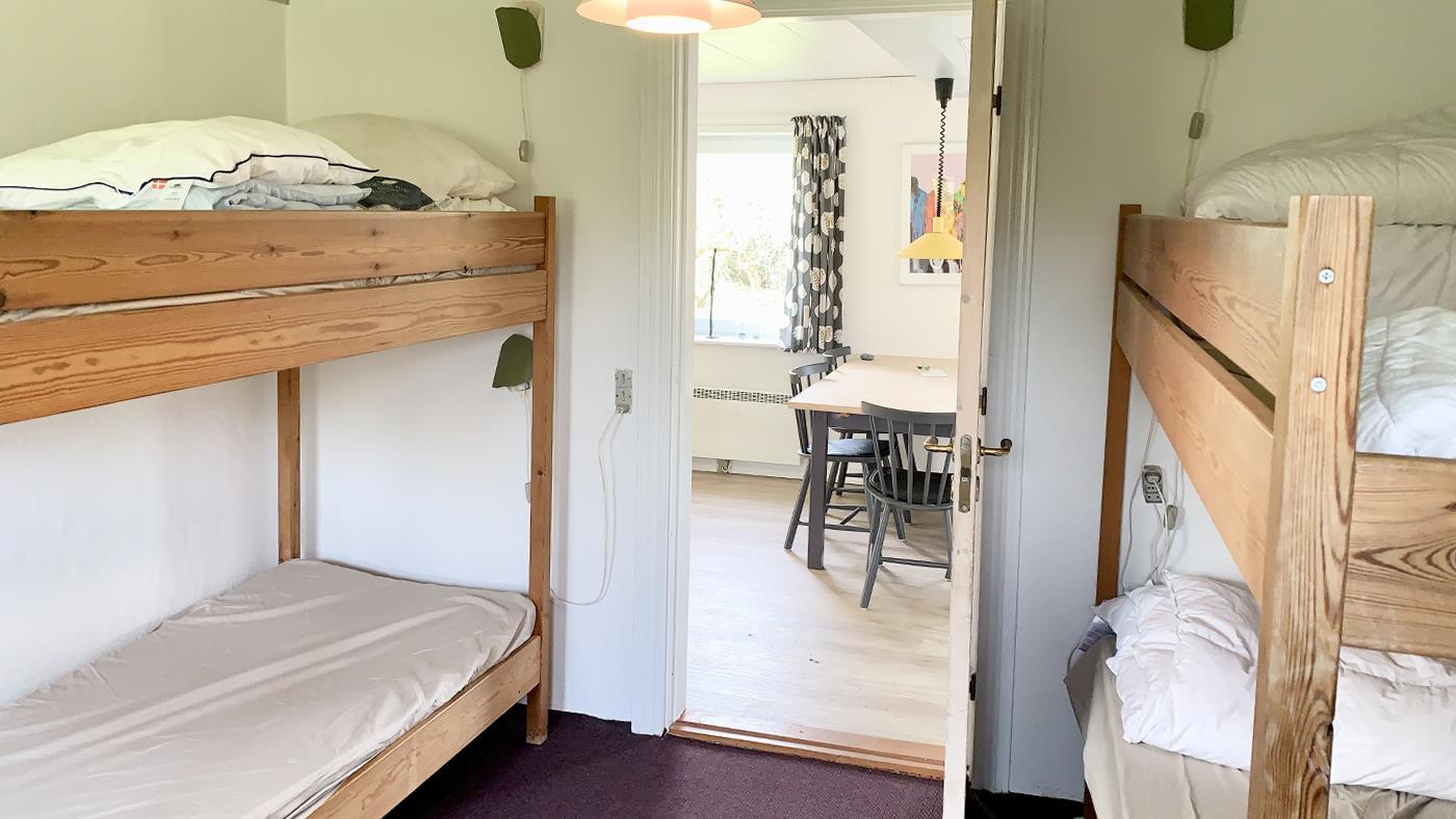 The house exudes summer atmosphere and personality. Inside, you are greeted by a bright and inviting living area, where the kitchen, dining area and living room merge into one cosy common room. The kitchen is well equipped with everything you need for your holiday – here you can easily prepare meals together while conversation and laughter flow around the dining table.