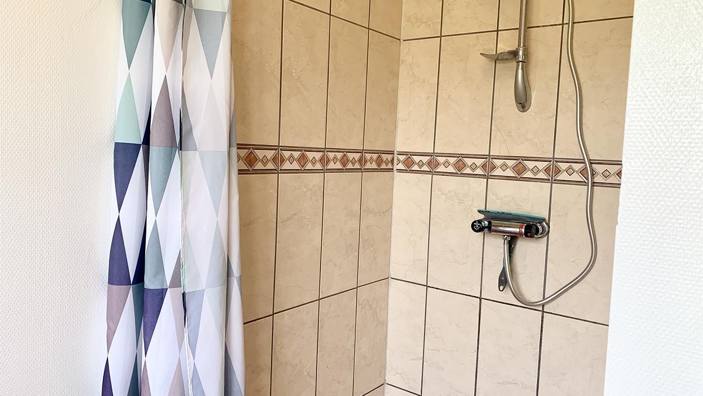The bathroom is bright and functional with a shower cubicle and underfloor heating, so it feels comfortable even on chilly mornings.