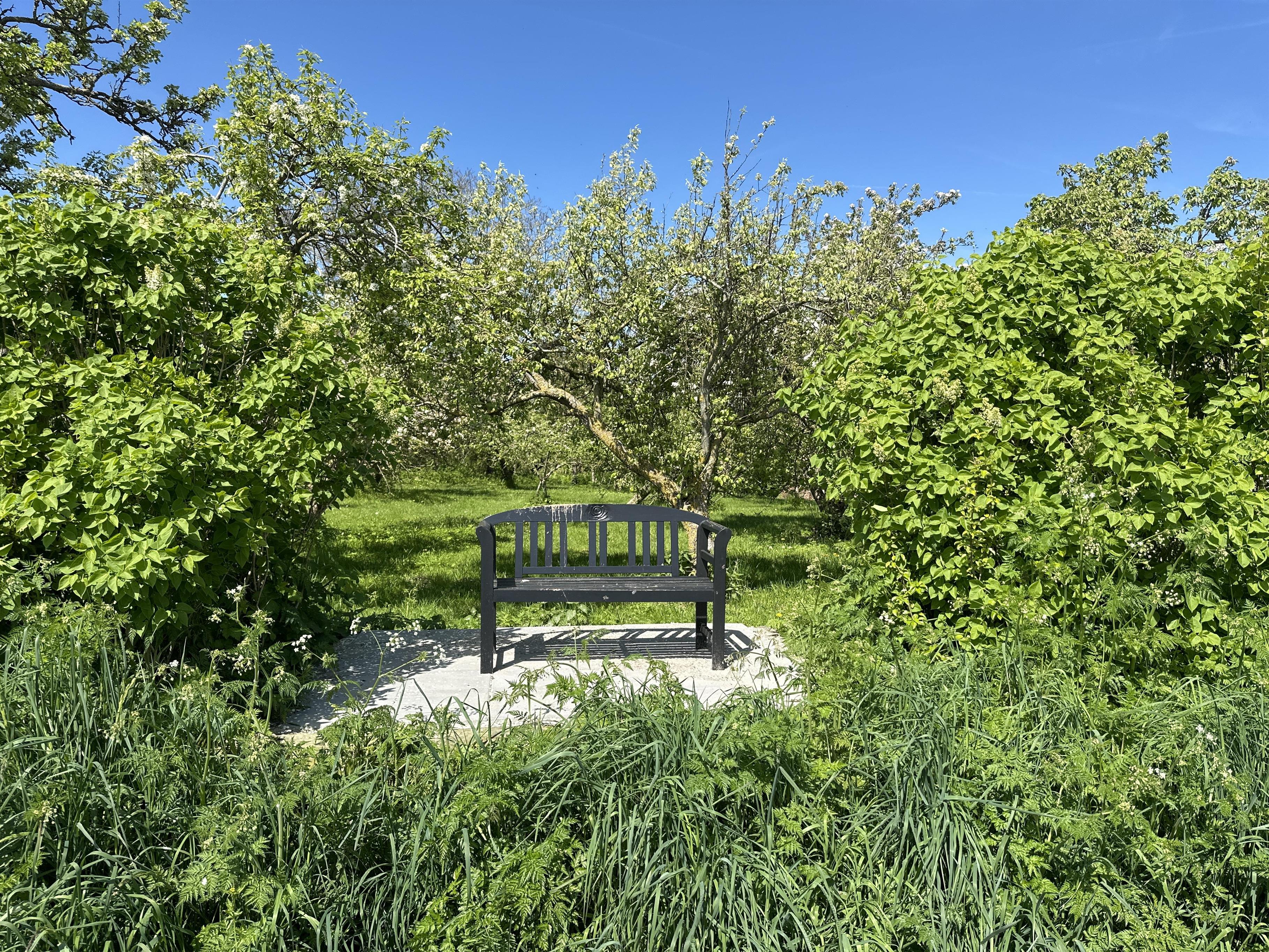 If you follow the path up through the apple orchard, you will find a small bench with a breathtaking view of the water – a perfect place for morning coffee, a good book or a quiet moment with nature.