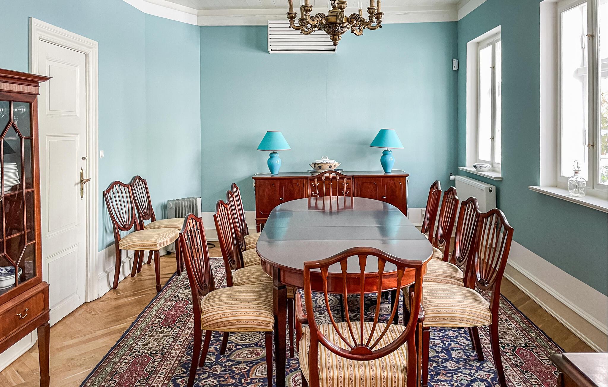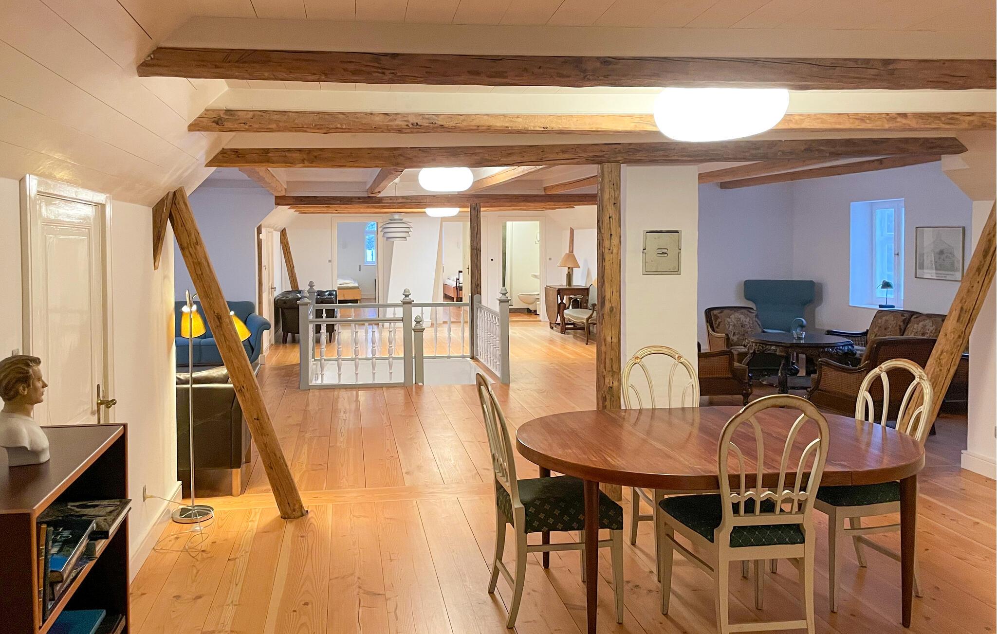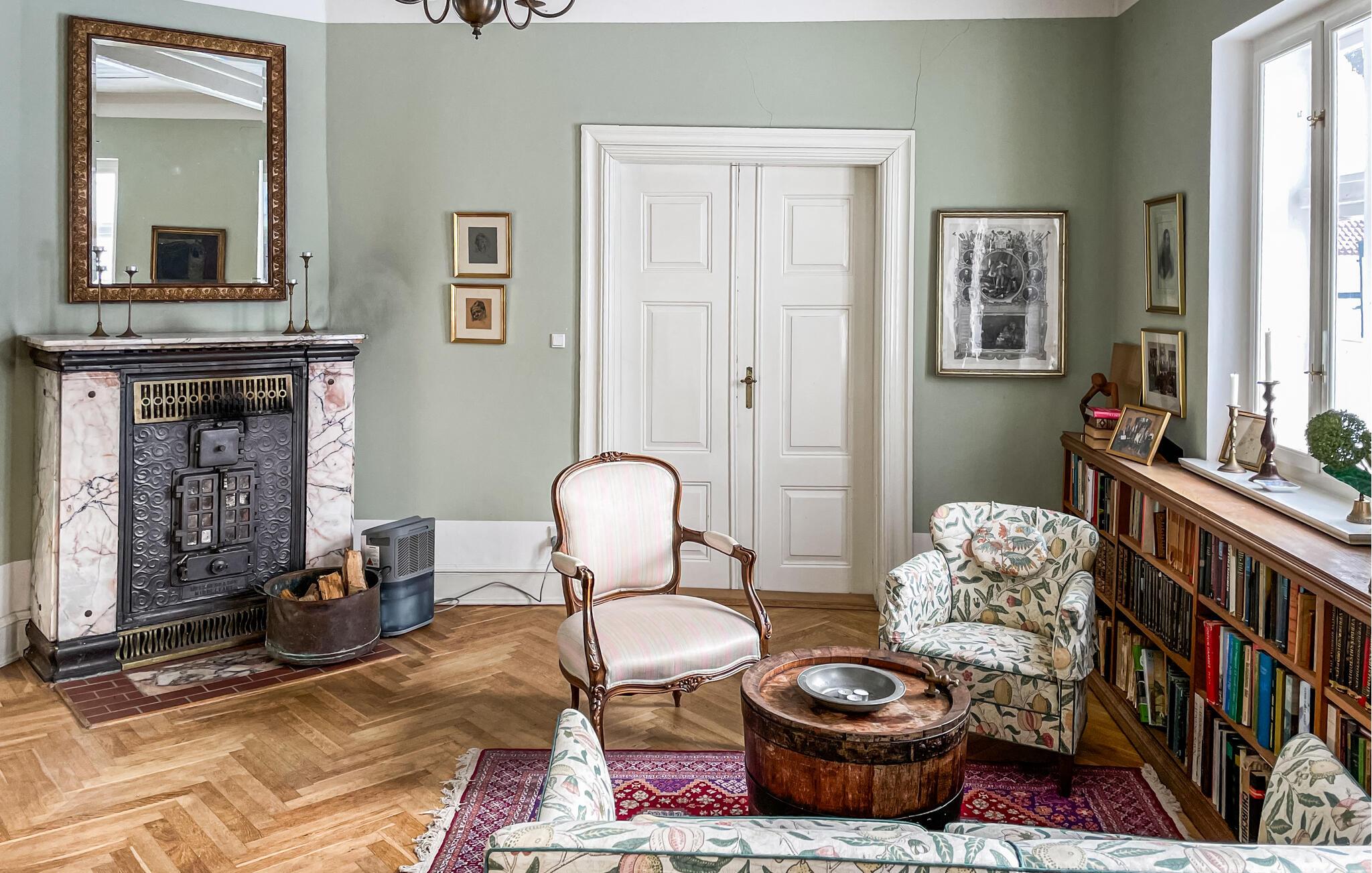 Dieses ehemalige Gutshaus besticht durch seine historische Einrichtung, die sich auf elegante Weise mit Komfort und Gemütlichkeit verbindet. Historische Möbel und Kunstwerke verleihen dem Ganzen zusätzlich eine persönliche Note. Verbringen Sie hier entspannte Stunden auf dem Sofa beim Kaffeetrinken, Plaudern oder Lesen und lassen Sie das besondere Flair auf sich wirken.
