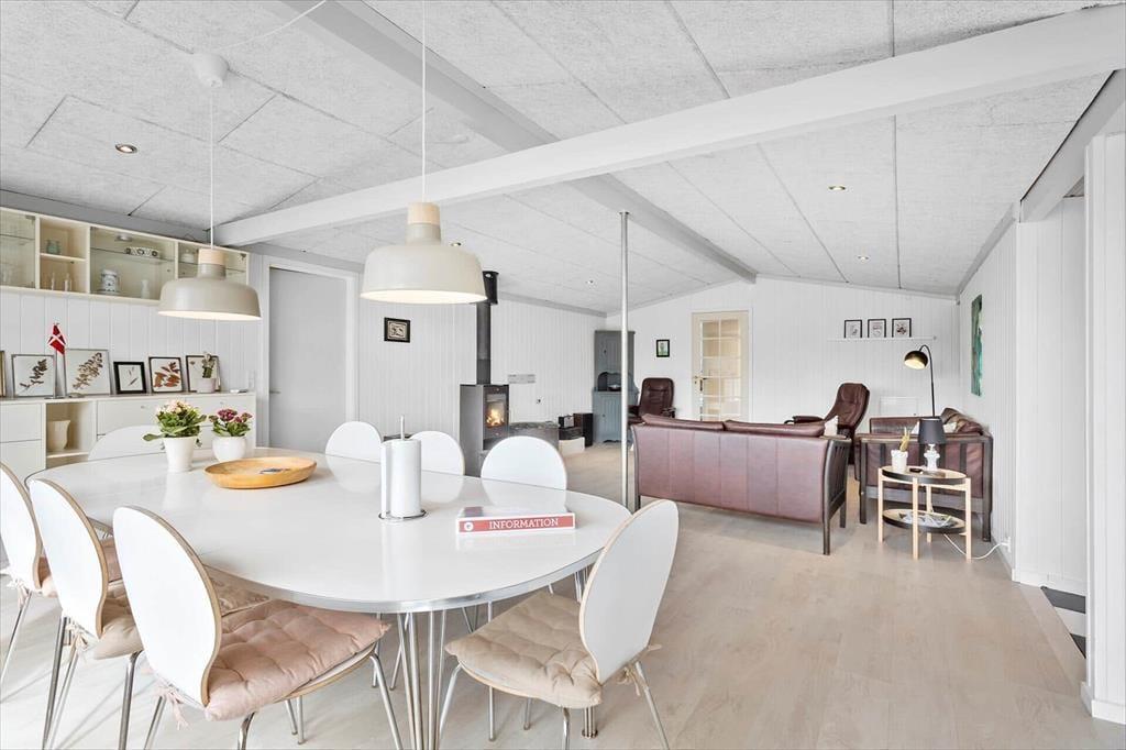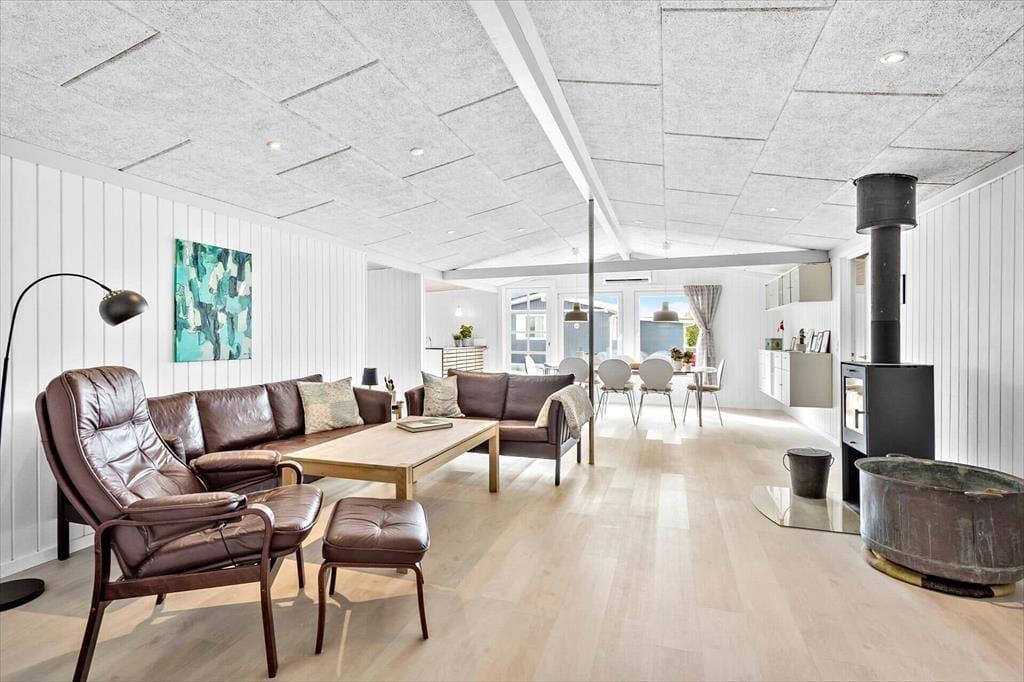 Beim Betreten des Hauses werdet ihr von einem hellen und geräumigen Wohn-Essbereich empfangen, der den natürlichen Treffpunkt des Ferienhauses darstellt. Hier könnt ihr euch zu den Mahlzeiten versammeln, die in der gut ausgestatteten Küche zubereitet werden können, während der Kaminofen Wärme und Gemütlichkeit verbreitet. Die Wärmepumpe sorgt das ganze Jahr über für ein angenehmes Raumklima, sodass ihr euch immer wohlfühlen könnt. Mit sechs Schlafzimmern, die im Haus verteilt sind, gibt es ausreichend Platz, damit sich jeder zurückziehen und eine erholsame Nacht genießen kann, egal ob ihr eine große Familie oder mehrere Paare seid. Die zwei Badezimmer sorgen dafür, dass es morgens keine Warteschlangen gibt, und mit der Sauna des Hauses habt ihr zudem die Möglichkeit, euch nach einem aktiven Tag eine entspannende Auszeit zu gönnen.