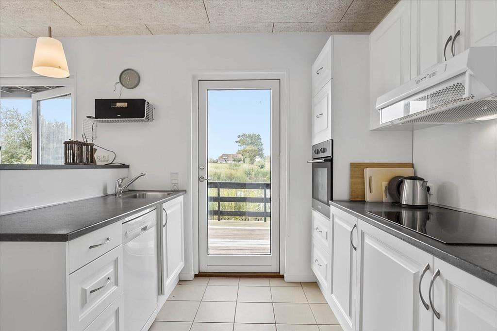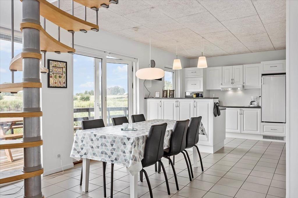 Wenn du dieses geschmackvoll eingerichtete Ferienhaus betrittst, wirst du von hellen Räumen und modernen Einrichtungen empfangen. Das Haus verfügt über drei schöne Schlafzimmer und zwei Badezimmer. Die Küche ist offen mit dem Wohnzimmer verbunden, sodass ihr die Gesellschaft der anderen genießen könnt, während das Abendessen zubereitet wird. Der Essbereich bietet reichlich Platz für lange, gemütliche Mahlzeiten. Nach dem Abendessen könnt ihr euch auf dem Sofa entspannen und die Ruhe genießen, während ihr den Ausblick durch die großen Fenster bewundert, die für ein herrliches Licht und ein Gefühl, mitten in der Natur zu sein, sorgen.