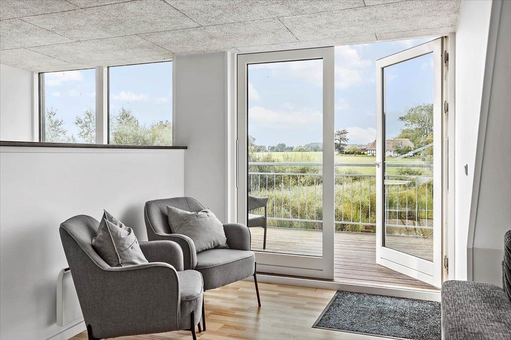 Es fällt schwer, sich der Verlockung der südwestlich ausgerichteten Terrasse und des Balkons zu entziehen, die zu Entspannung und langen Grillabenden einladen. Hier könnt ihr den Blick auf die umliegende Natur und den friedlichen See, der direkt vor der Tür liegt, genießen. Die Terrasse ist ideal für eine ruhige Zeit mit einem guten Buch, während die Kinder auf der Schaukel im Garten spielen. Mit nur 450 Metern bis zum Strand könnt ihr schnell einen Sprung ins Meer wagen, und die malerische Umgebung lädt zu langen Spaziergängen oder Radtouren in der Umgebung ein.