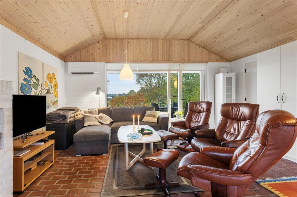 Bukkemose ist ein attraktives Feriengebiet mit Strand, Badesteg und einer grünen Gemeinschaftsfläche mit kleinem Fußballplatz und Schaukeln für Kinder. Außerdem gibt es eine Slipanlage und einen Bootssteg, was die Gegend ideal für Angler, Kajakfahrer, Schnorchler und Naturliebhaber macht. Die Küste bietet hervorragende Angelmöglichkeiten: Im Frühling lassen sich Hornfische fangen, später im Jahr Flundern und Meerforellen. Wenn das Wetter zu rau ist, befindet sich der Langeland Put & Take-See nur einen Steinwurf entfernt. Nur wenige Autominuten vom Haus entfernt liegt der Golfclub Langeland – eine Runde auf dem schönen Platz mit Blick auf das Meer im Sonnenuntergang ist ein unvergessliches Erlebnis. Wenn Sie mit einem Elektroauto anreisen, können Sie die 16A-CEE-Steckdose des Hauses zusammen mit Ihrem eigenen Ladegerät nutzen.