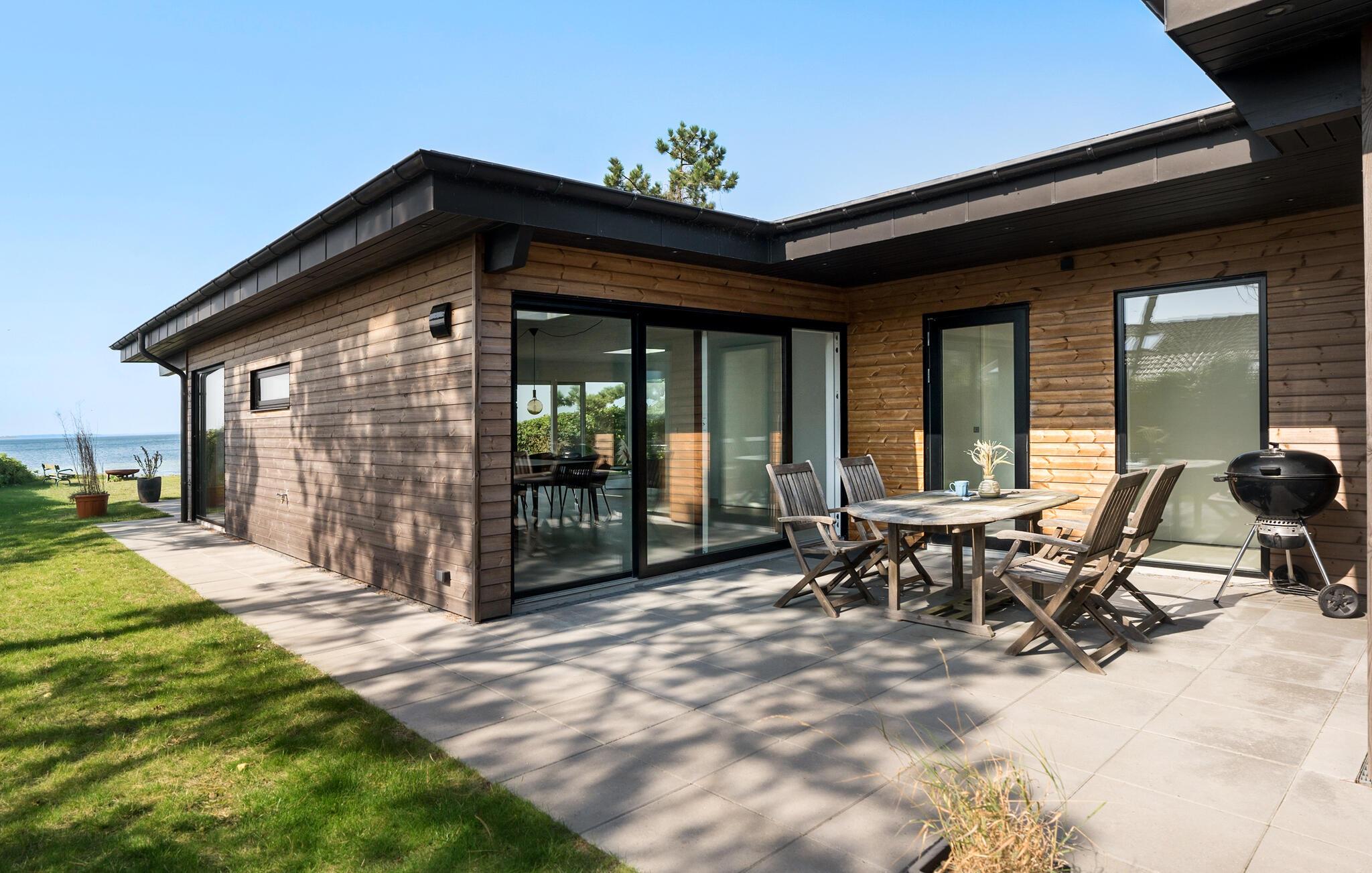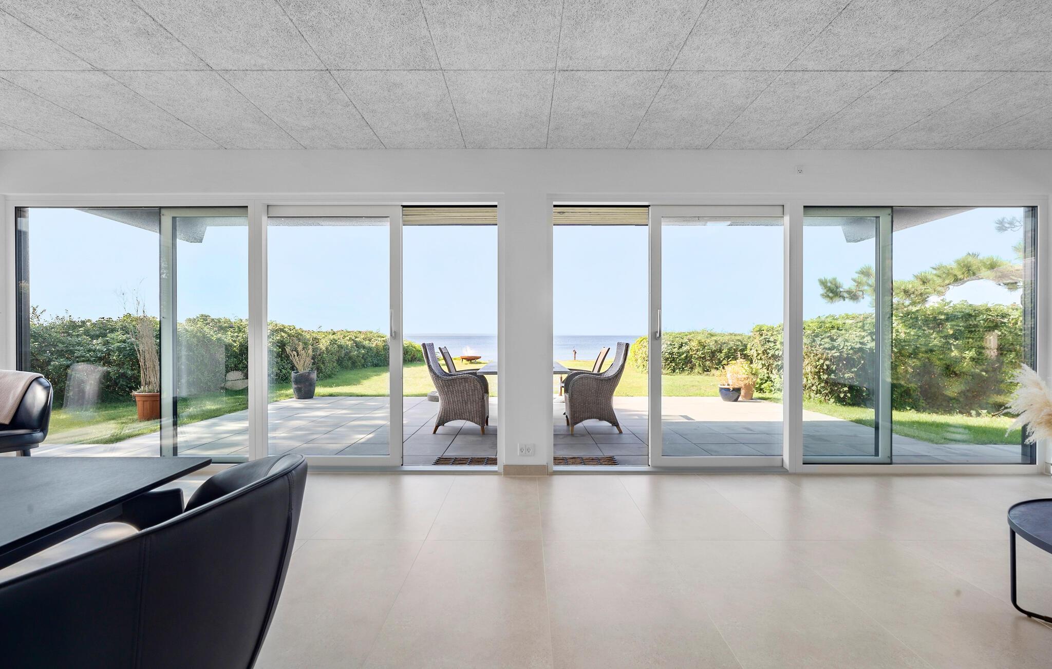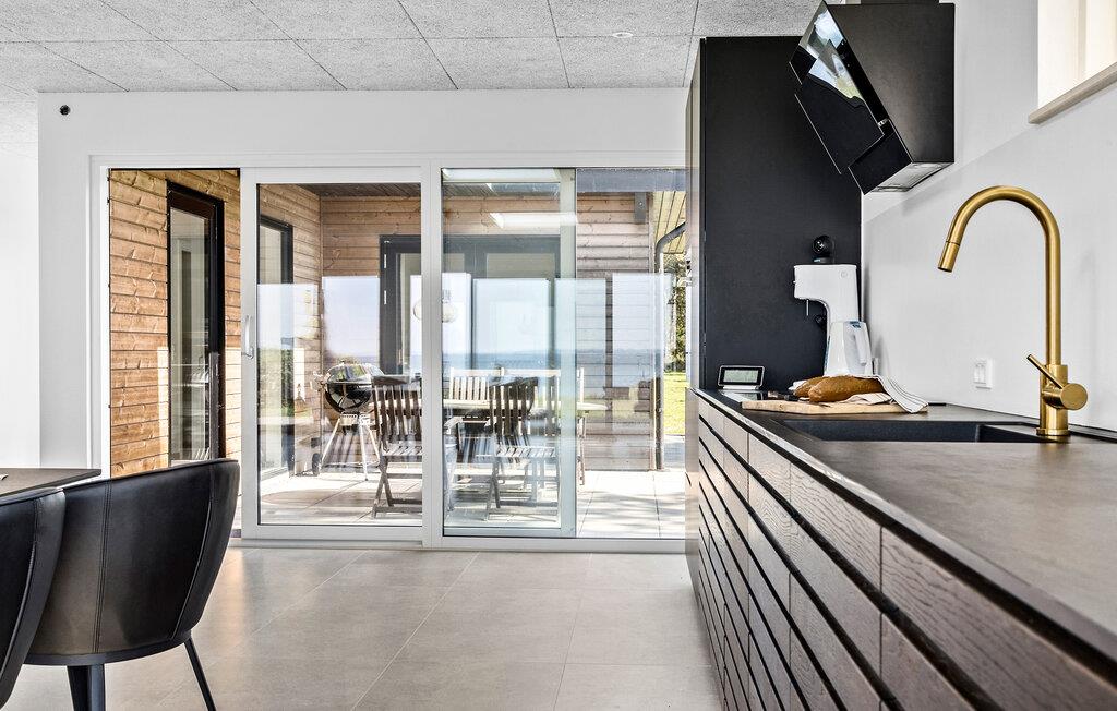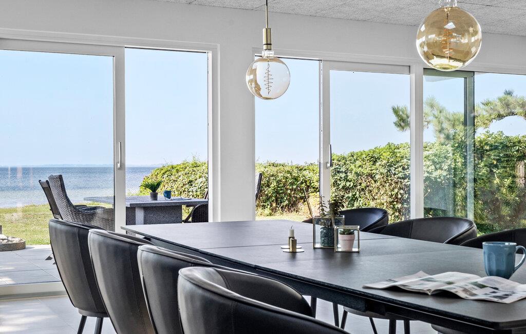 Verbringen Sie unvergessliche Tage auf dem wunderschönen Nordfünen. Dieses architektonisch gestaltete Haus liegt direkt an der ruhigen Dalby-Bucht und besticht durch exklusive Details, Qualität und Luxus. Der Blick auf das endlose Blau des Meeres begleitet Sie den ganzen Tag, besonders im großzügigen Wohnbereich, der den perfekten Rahmen für Ihren Urlaub bietet.
