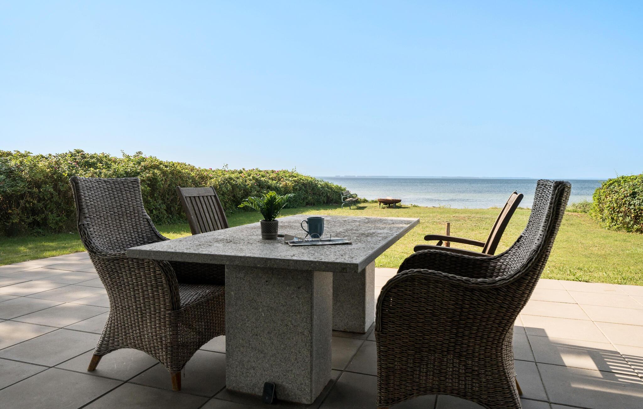 Im Außenbereich erwartet Sie ein liebevoll angelegter privater Garten, der direkt zum Wasser führt. Gönnen Sie sich eine erfrischende Abkühlung im Meer und spülen Sie den Sand anschließend unter der Außendusche ab. Mehrere Terrassen laden dazu ein, bei einer Tasse Kaffee die Sonne zu genießen. Während Sie das Abendessen auf dem Grill vorbereiten, können die Kinder auf der Rasenfläche eine Runde Fußball spielen.