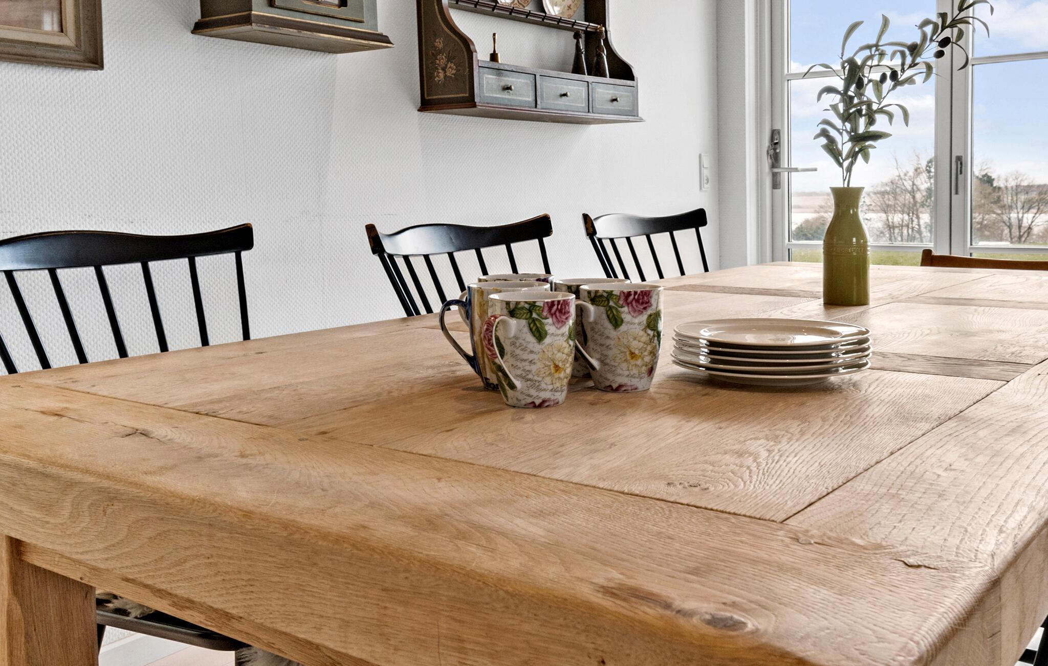 In diesem Ferienhaus am schönen Isefjord beginnt jeder Tag mit einem malerischen Ausblick, den Sie unter anderem vom verglasten Wintergarten aus genießen können. Genießen Sie hier Ihren Morgenkaffee und schmieden Sie Pläne für Ihren Urlaubstag, während Sie die weitläufige Sicht auf das ruhige Gewässer und die Landschaft bewundern. Die helle, offene Küche, die ländliche Idylle vermittelt, grenzt an den Essbereich an. Kochen Sie hier gemeinsam mit der Familie und genießen Sie so die Gesellschaft Ihrer Liebsten. Beim Essen bietet die große Fensterfront einen herrlichen Blick auf die Umgebung. Im Wohnzimmer laden komfortable Sitzgelegenheiten zu gemütlichen Stunden ein. Schnappen Sie sich ein Buch oder spielen Sie Kartenspiele mit Ihren Kindern. Die geschmackvolle Einrichtung sorgt für ein Ambiente, in dem Sie sich wohlfühlen werden.