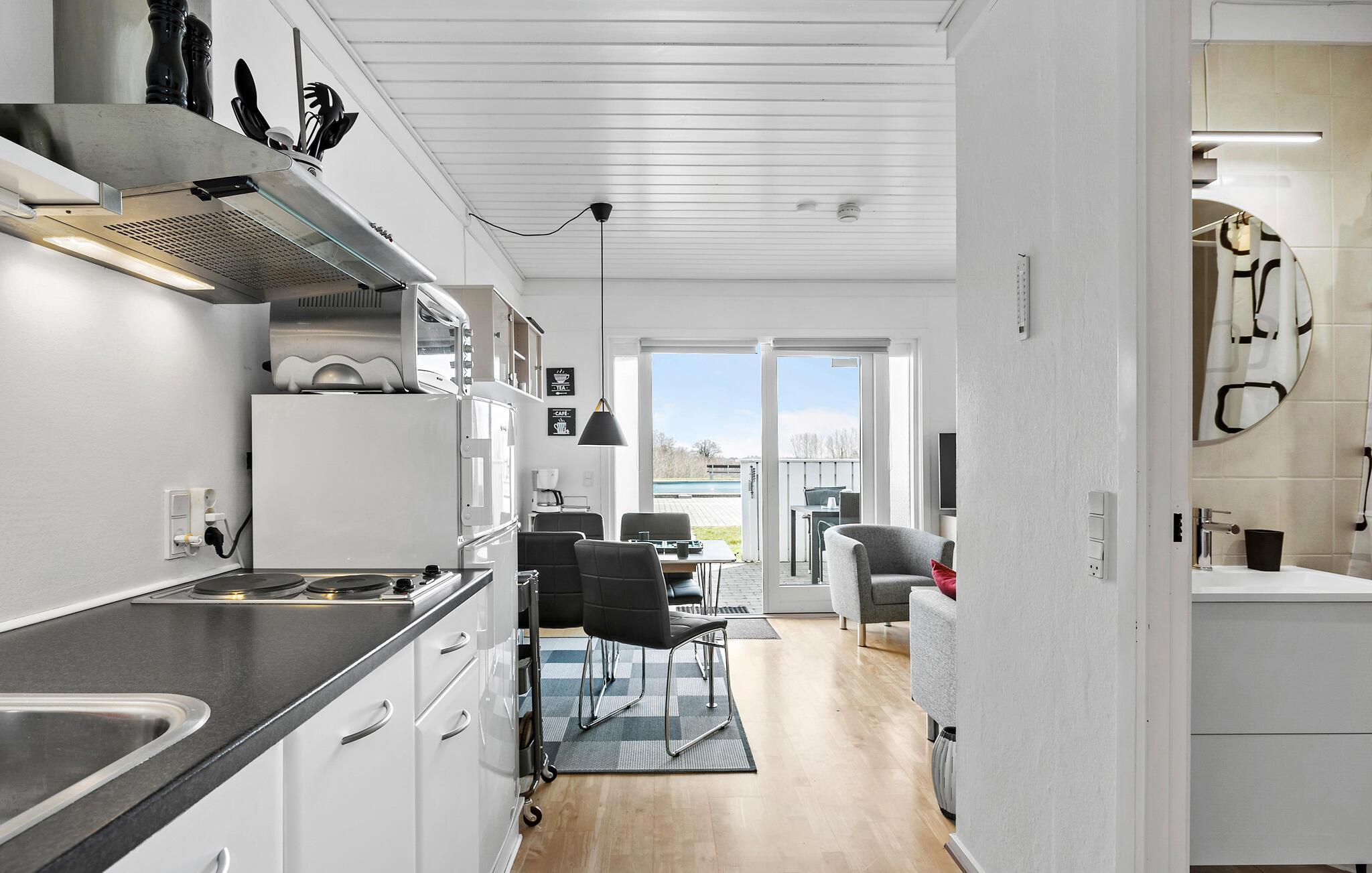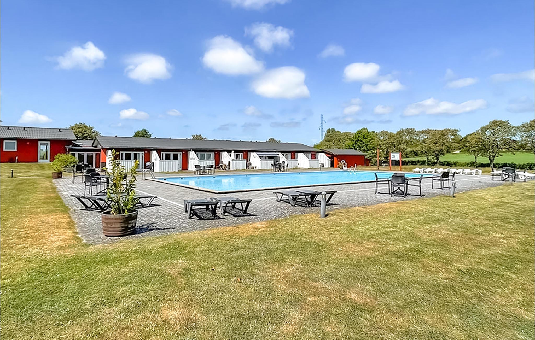 Diese schöne Wohnung mit 2 Schlafzimmern und Platz für 4 Personen gehört zur Ferienanlage Dams på Bakken, die u. a. einen großen Außenpool mit flachem Ende, ein großes Trampolin, Schaukeln, Sandkasten, Lagerfeuerplatz, Bouleplatz und Fußballplatz bietet. Die Wohnung verfügt über ein gemütliches Wohnzimmer mit TV/DVD und Radio/CD. Die offene Küche ist u. a. mit Minibackofen, Gefrierschrank, Elektro-Herd (2 Platten), Dunstabzugshaube und Essecke ausgestattet. Im Badezimmer gibt es eine komfortable Fußbodenheizung. Kostenloses WLAN (schnell und unbegrenzt) ermöglicht Indoor-Entertainment. Auf der privaten Terrasse mit Markise können Sie sich in bequemen Gartenmöbeln gemütlich entspannen und auf dem Grill leckere Urlaubsmahlzeiten zubereiten. Bis zum Pool, wo Sie jederzeit ein erfrischendes Bad nehmen können, sind es nur wenige Meter.