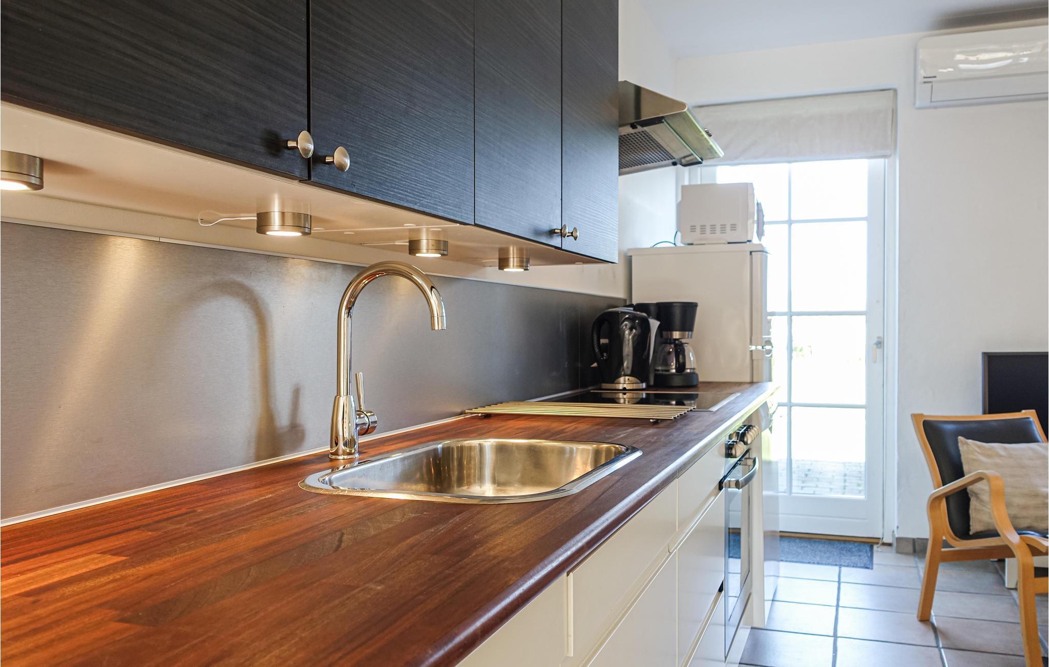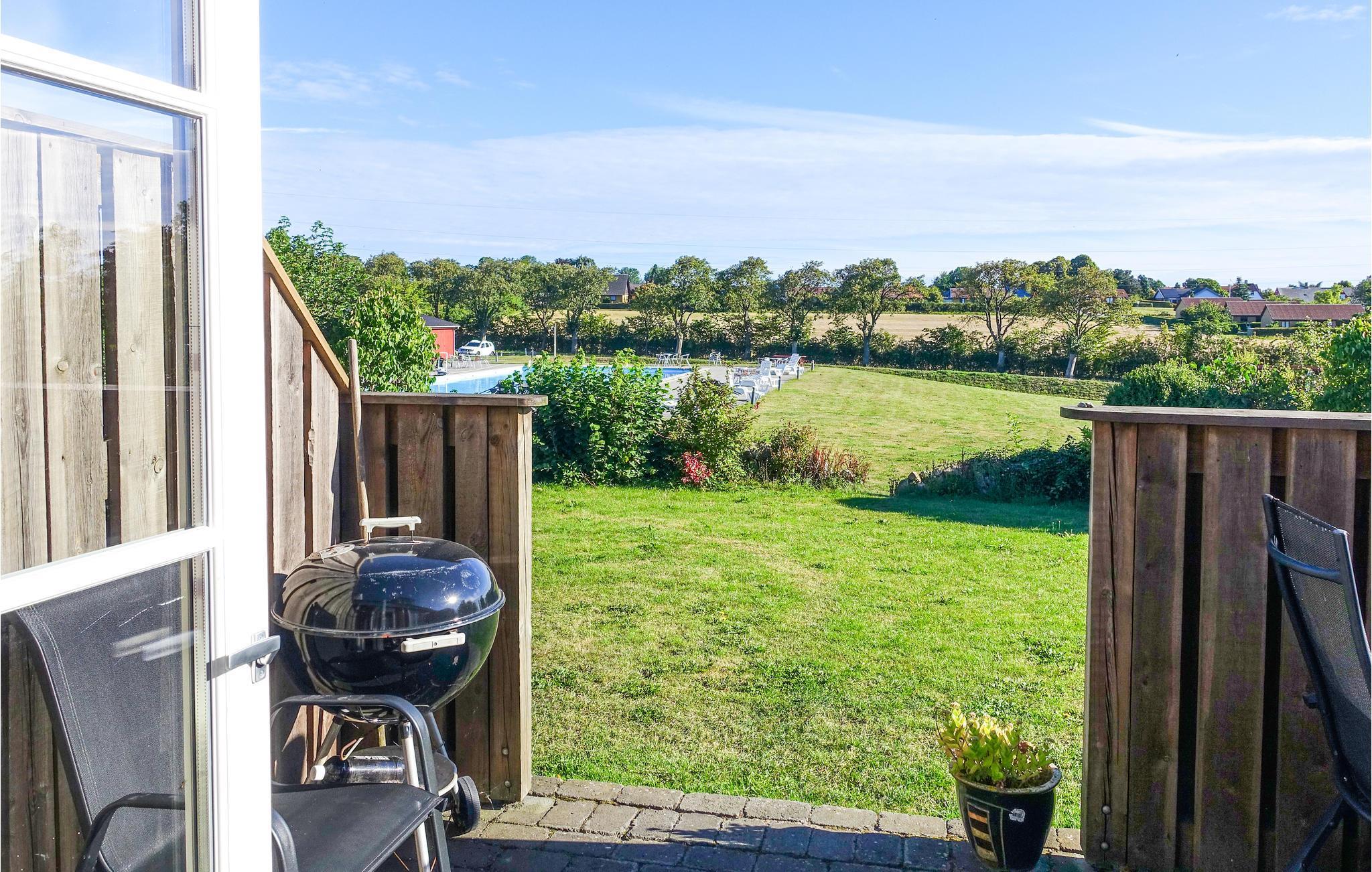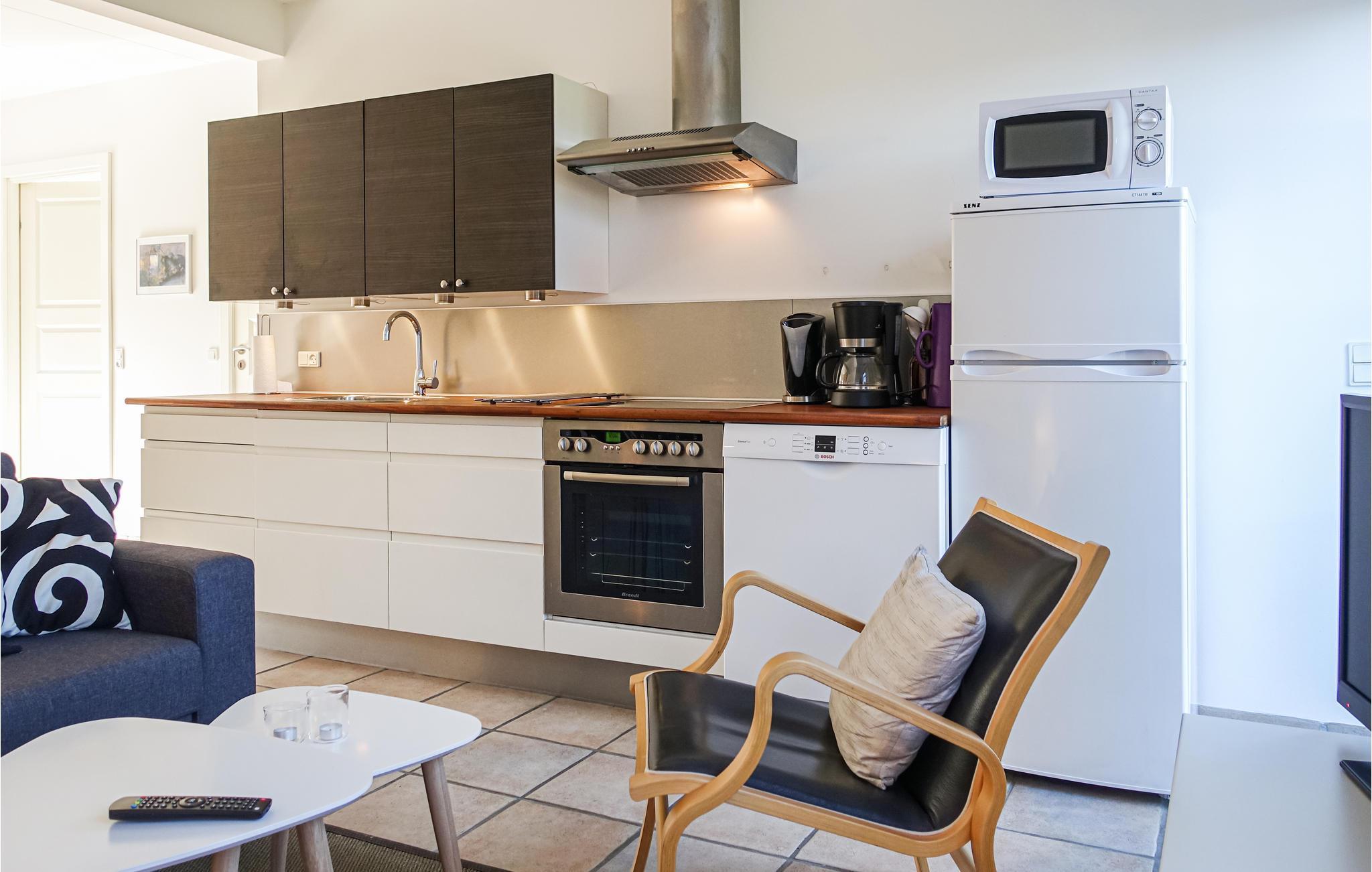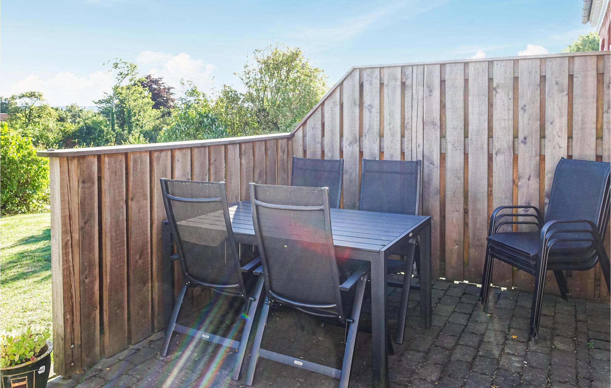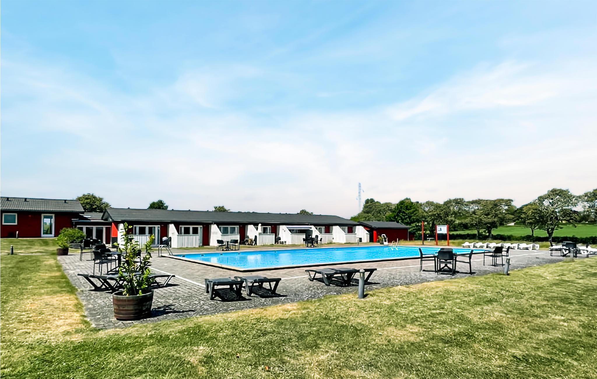 Diese schöne Wohnung kann dank zwei Schlafzimmern und einem 140 cm-Doppelschlafsofa im Wohnzimmer bis zu 4 Gäste empfangen. Die Wohnung ist Teil der Ferienanlage Dams på Bakken, die u. a. einen großen Außenpool mit flachem Ende, ein großes Trampolin, Schaukeln, Sandkasten, Lagerfeuerplatz, Bouleplatz und Fußballplatz bietet. Die Wohnung ist von hoher Qualität und verfügt über eine Fußbodenheizung im gesamten Erdgeschoss samt Wohnzimmer und Küche. Im schönen Wohnzimmer gibt es TV/Chromecast/DVD und Radio/CD. Die offene Küche ist u. a. mit Spülmaschine, Mikrowelle, Cerankochfeld, Dunstabzugshaube und Essecke ausgestattet. Im Erdgeschoss gibt es Zugang zu zwei Terrassen: Auf der Hofseite befindet sich ??eine Holzterrasse mit Gartenmöbeln und auf der Poolseite eine Terrasse mit Gartenmöbeln und Grill, wo Sie leckere Urlaubsmahlzeiten zubereiten können. In der 1. Etage befinden sich die beiden Schlafzimmer. In der Wohnung gibt es kostenloses WLAN.