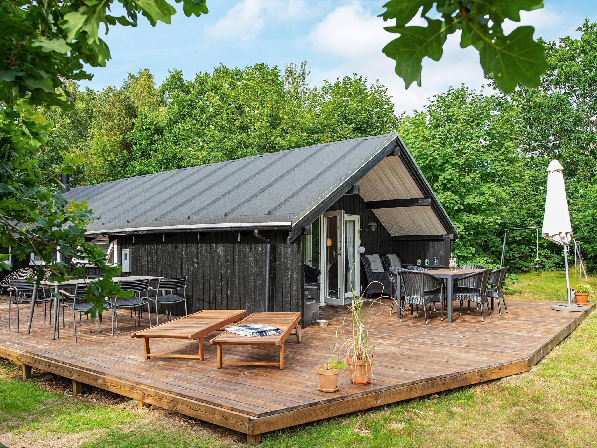 Dieses charmante, traditionelle Ferienhaus liegt auf einem malerischen Naturgrundstück in Knebel, umgeben von hohen, alten Bäumen, die Schatten und Schutz spenden. Es ist der perfekte Ort, um abzuschalten und die friedliche Atmosphäre der Landschaft zu genießen. Das Anwesen verfügt über eine große Terrasse, die einen Teil des Hauses umgibt und viel Platz zum Entspannen im Freien bietet. Hier können Sie sich mit einem Buch zurücklehnen, gemeinsam an der frischen Luft essen oder einfach die leisen Geräusche der Natur um sich herum genießen.