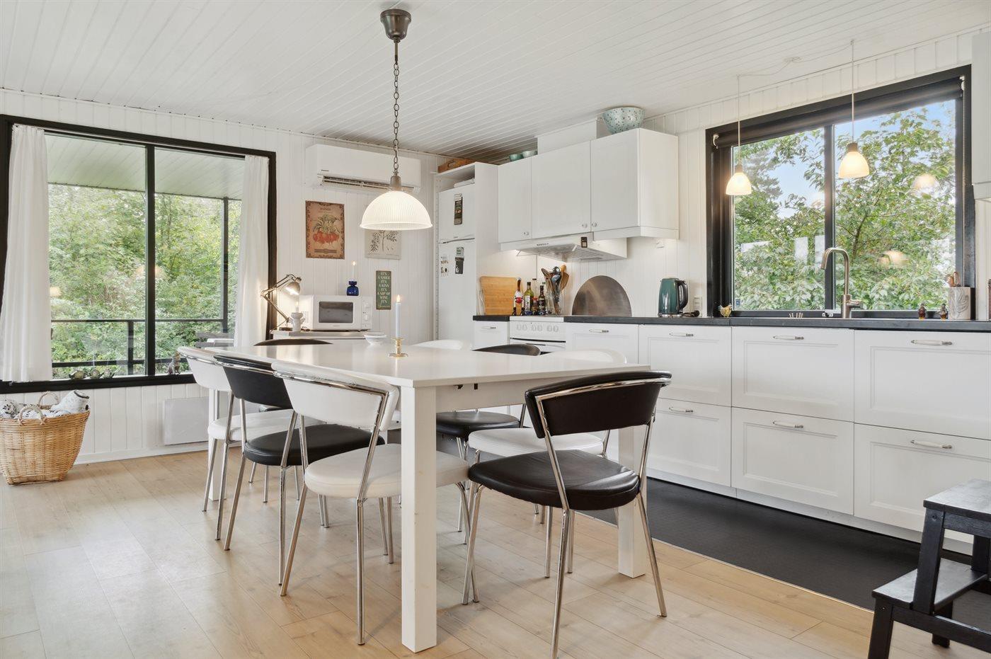 Holiday home suitable for 6 persons as well as 1 child up to 3 years. The holiday home is 74 m² and is build in 1974. In 2021 the holiday home was partial renovated. You can bring along 1 pet. The holiday home is equipped with 1 energy-saving air-to-air heat pump. The holiday home has washing machine. Tumble dryer. Freezer capacity of 44 litres. Further more there is 1 wood-burning stove. For the youngest ones there are 2 high chairs.