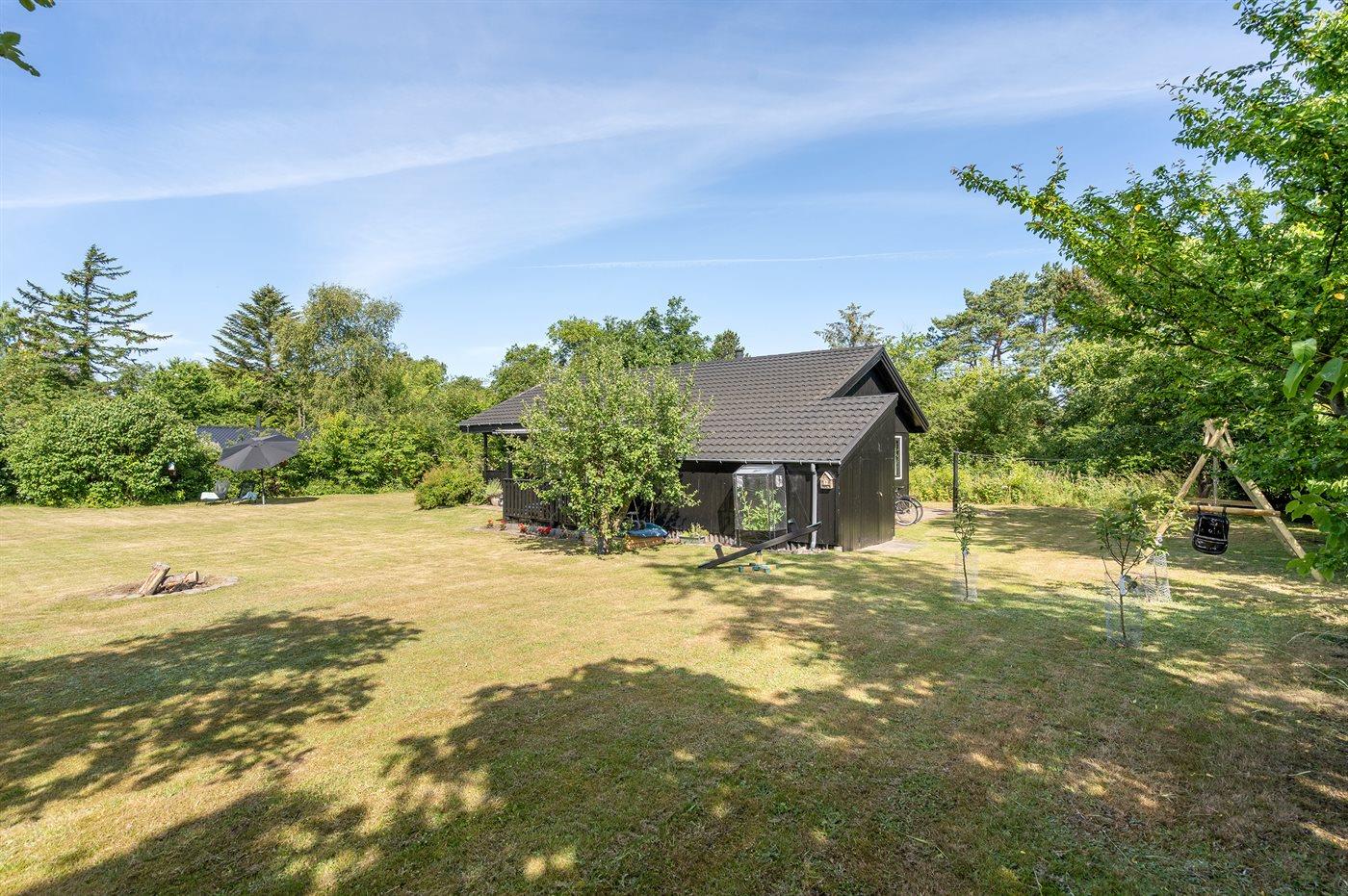 The holiday home is situated on a 1600 m² natural site. Situated 300 m from the sea. Nearest shop is 3000 m away. A terrace belong to the holiday home. Furthermore the house has a covered terrace. You find a tool shed. Swing. Sandbox. Playhouse. Trampoline. Seesaw. Football goal.Fire place. Barbecue at your disposal. Parking place by the holiday home.