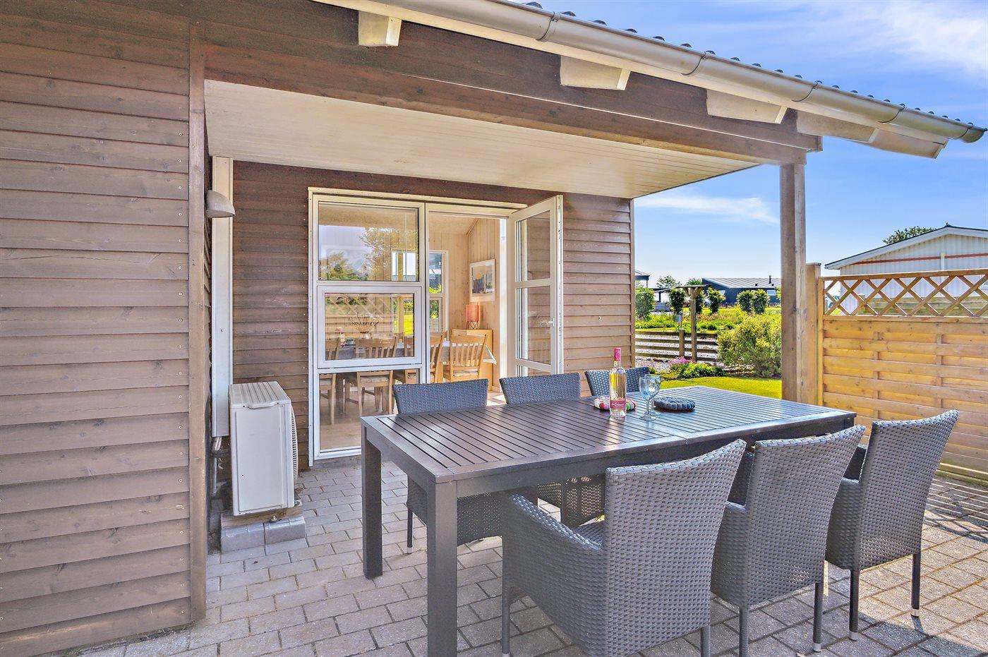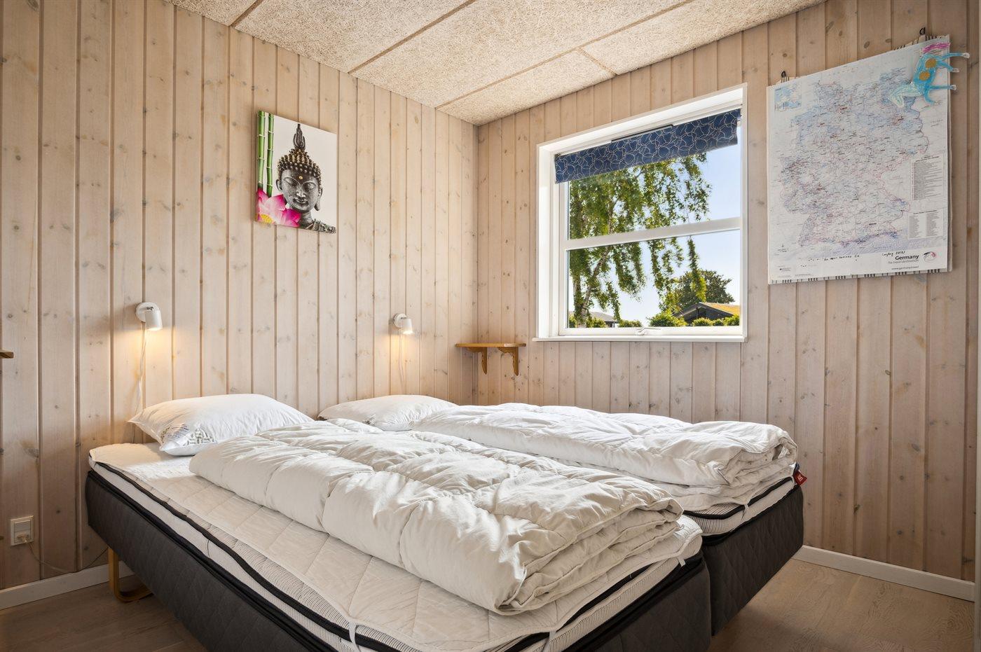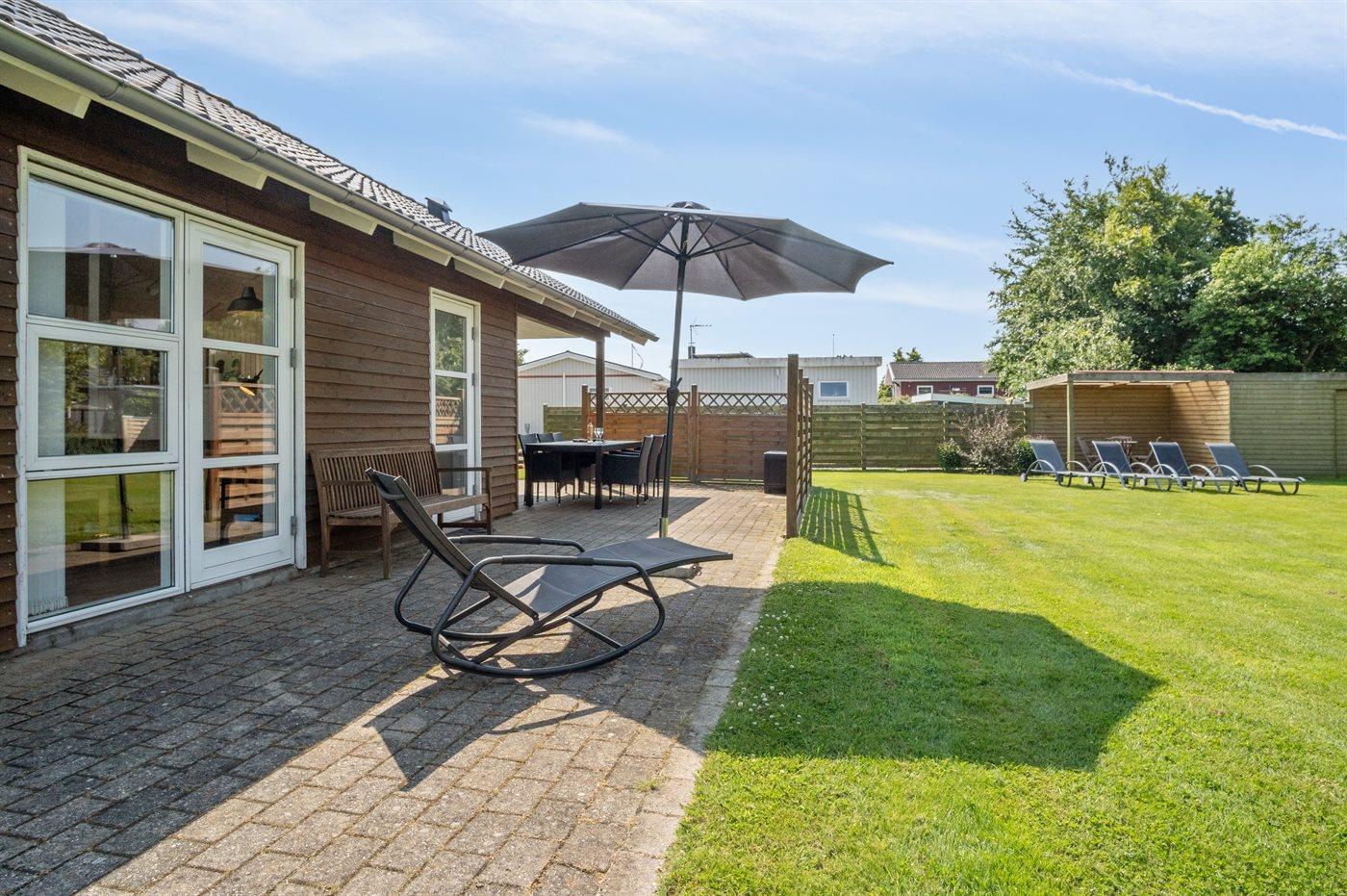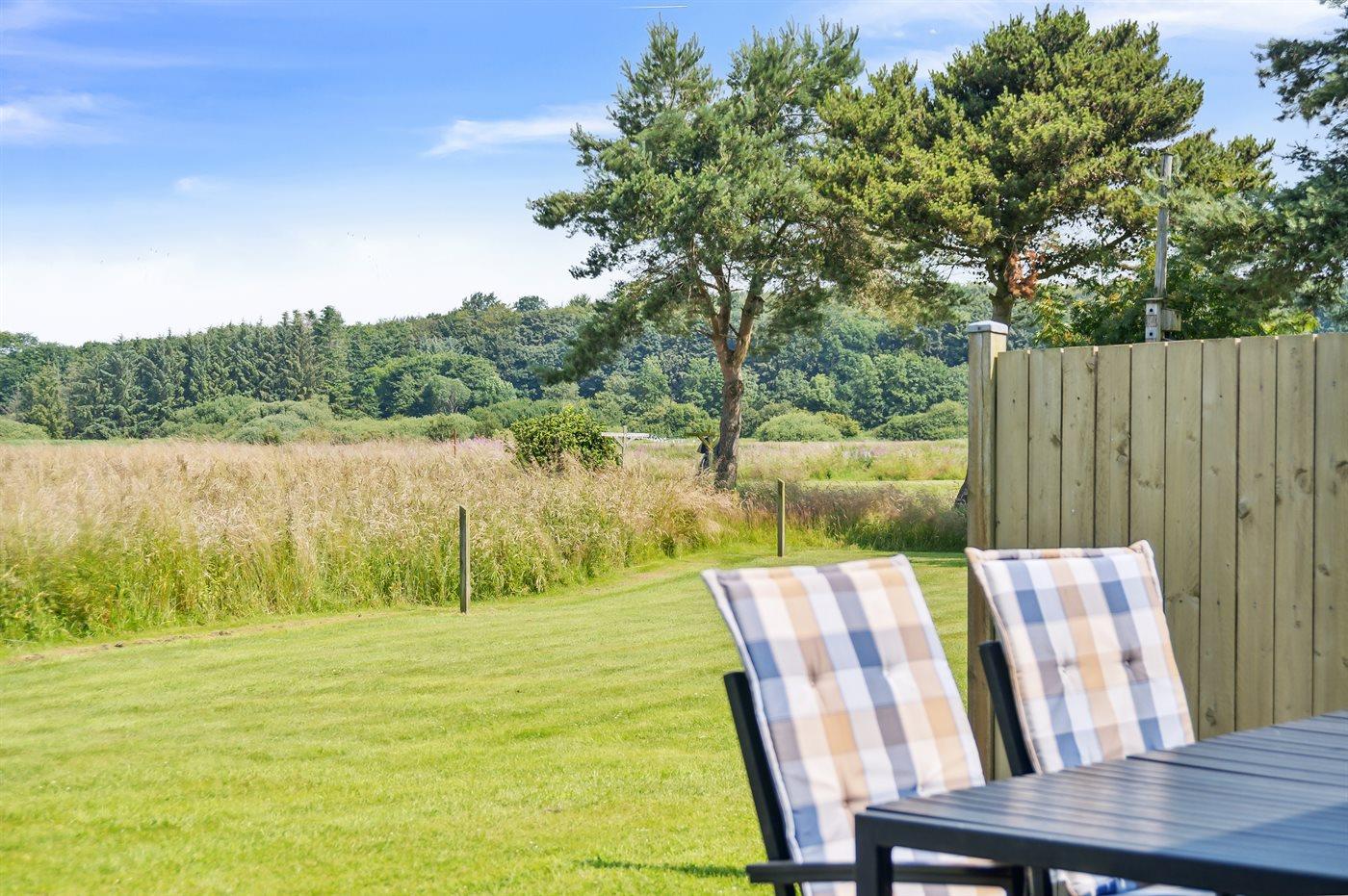 The holiday home is situated on a 1269 m² garden site. Situated 100 m from the sea. Nearest shop is 4000 m away. You will find a golf course in a distance of 10000 m. A terrace belong to the holiday home. Furthermore the house has a covered terrace. Swing. Sandbox. Barbecue at your disposal. Parking place by the holiday home.