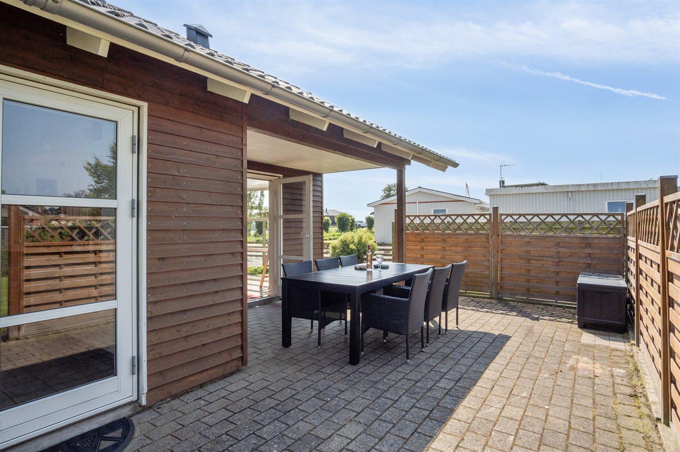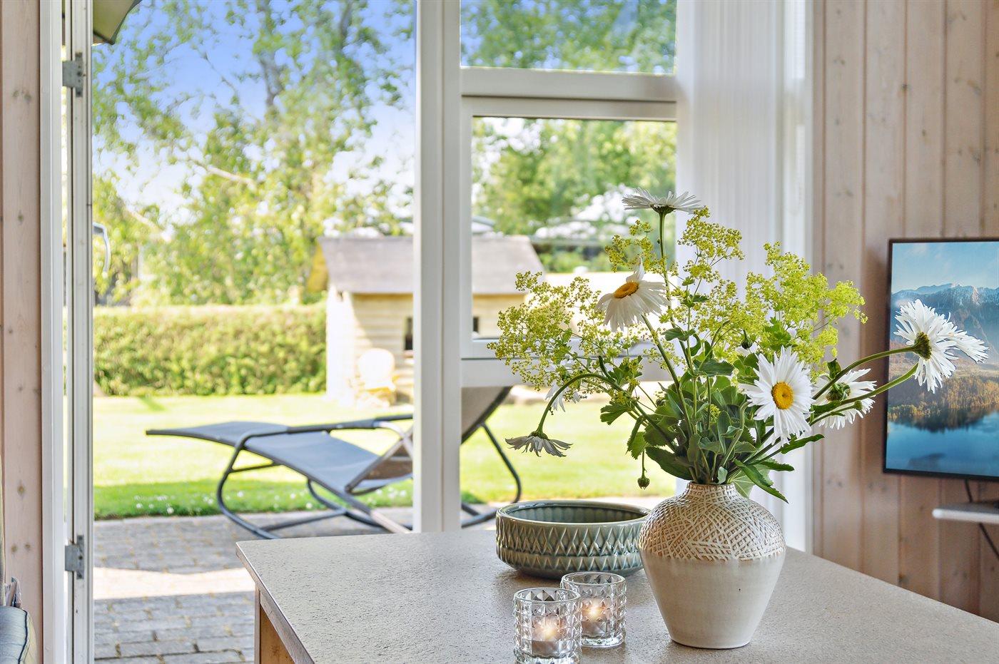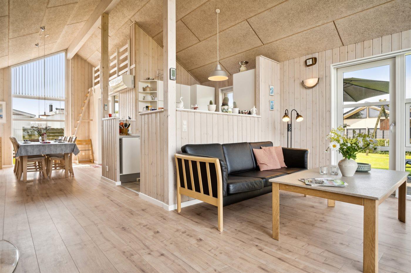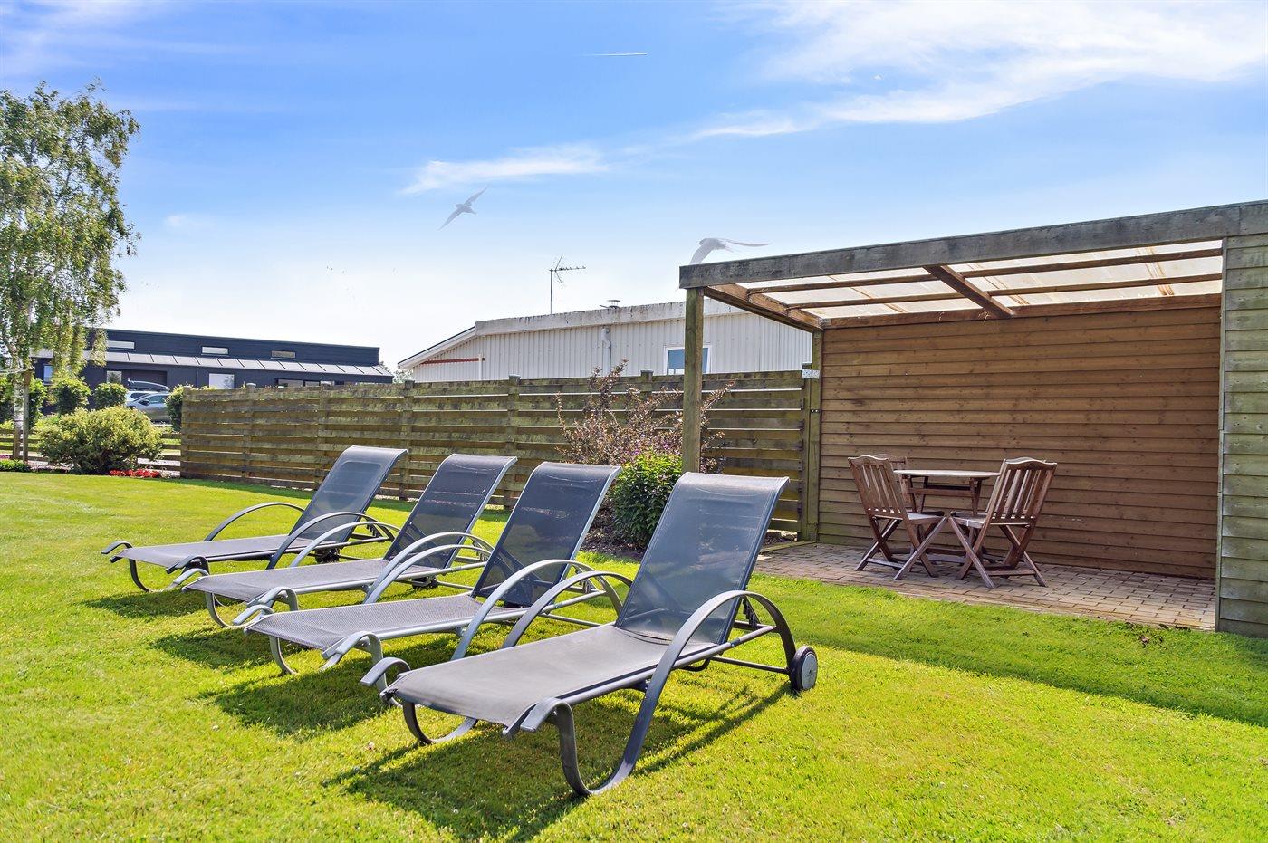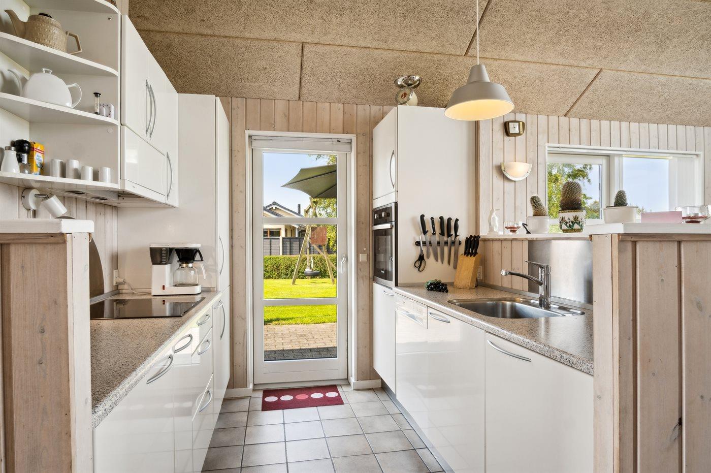 The holiday home is situated on a 1269 m² garden site. Situated 100 m from the sea. Nearest shop is 4000 m away. You will find a golf course in a distance of 10000 m. A terrace belong to the holiday home. Furthermore the house has a covered terrace. Swing. Sandbox. Barbecue at your disposal. Parking place by the holiday home.