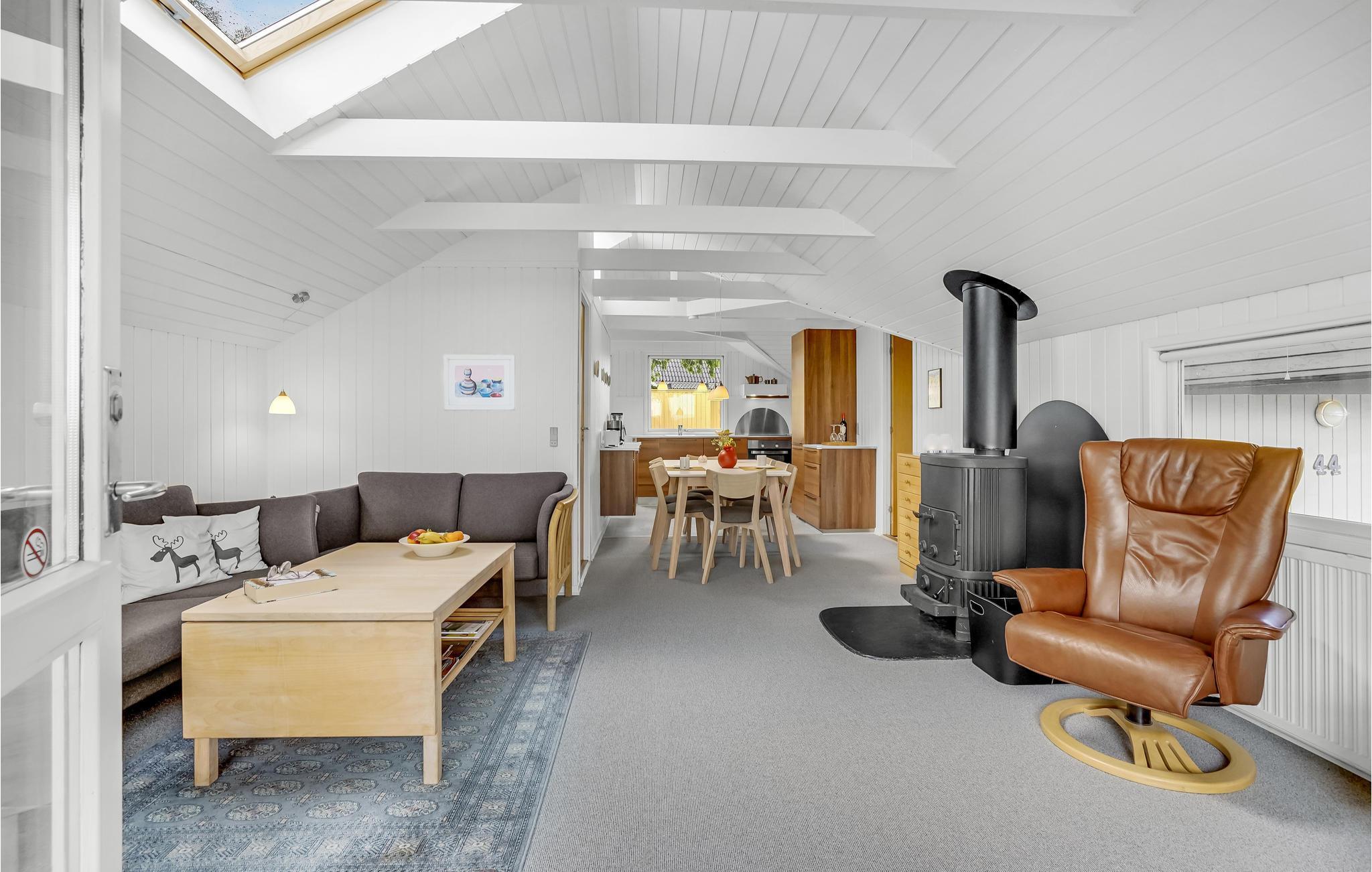 Gepflegtes Ferienhaus mit schönem Badezimmer und guter Küche. Es befindet sich auf einem großen Gartengrundstück und verfügt über eine teilweise überdachte Terrasse. Genießen Sie hier stundenlang die Sonne und die frische Luft im Freien. Die Räume sind mit Holz verkleidet und die Fußböden haben Teppichböden. Das Haus ist gut eingerichtet und vom Wohnzimmer haben Sie Aussicht auf die offene Landschaft. Auf dem Grund gibt es einen Geräteraum und einen Carport. Ca. 100 m entfernt liegt der Sandstrand. Das Haus Nahe am Slivsø ist von einer schönen Natur mit vielen Vögeln umgeben. Im See können Sie gut angeln.