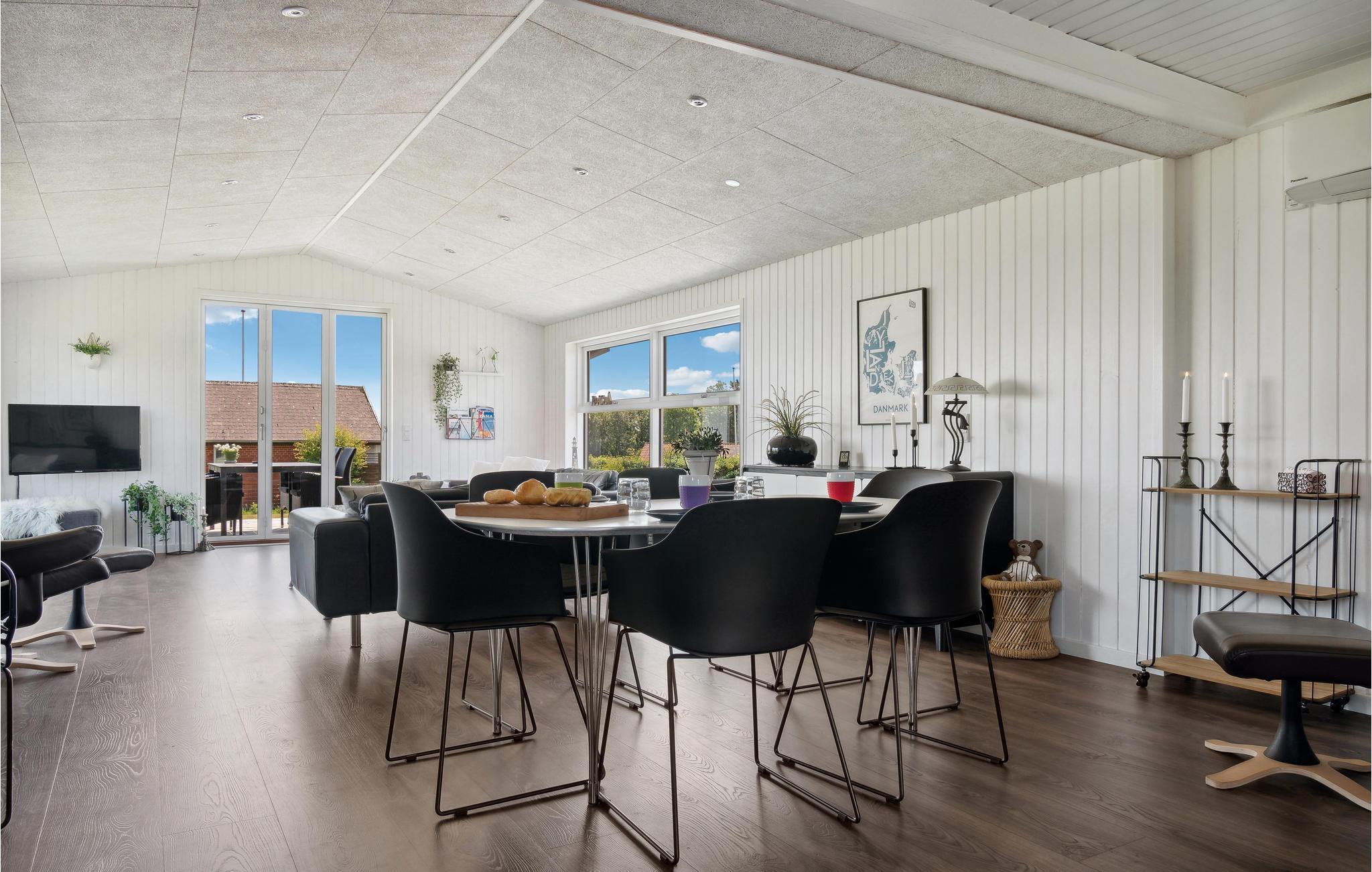 Freuen Sie sich auf ein elegant und stilvoll eingerichtetes Ferienhaus in Dänemark, welches Ihnen ausreichend Platz bieten wird, um sich vollkommen wohlfühlen zu können. Einerseits können Sie sich in der Wohnzimmerecke auf einem der Ledersofas gemütlichen machen, während Ihre Liebsten im Küchenbereich das Frühstück zubereiten, welches Sie zusammen entweder auf der offenen Terrasse oder beim Esstisch gustieren können. Auch im Garten können sich Ihre Kinder ungestört austoben und jeden Quadartmeter der Grünfläche nutzen.
