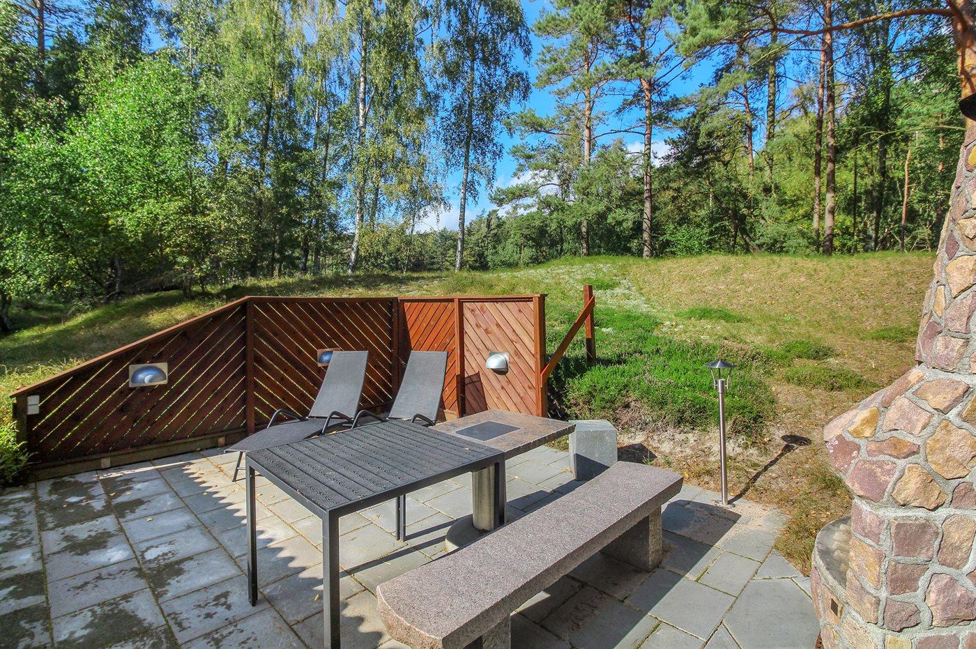 The holiday home is situated on a 2500 m² natural site. Situated 900 m from the sea. Nearest shop is 4000 m away. A 35 m² terrace belong to the holiday home. Furthermore the house has a 12 m² covered terrace. Plug for charging electric car is available. Parking place by the holiday home.