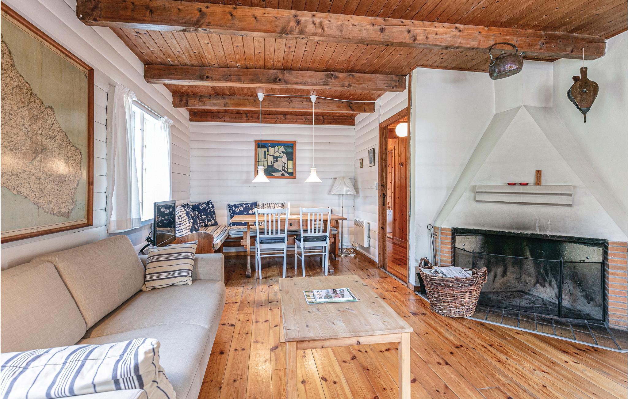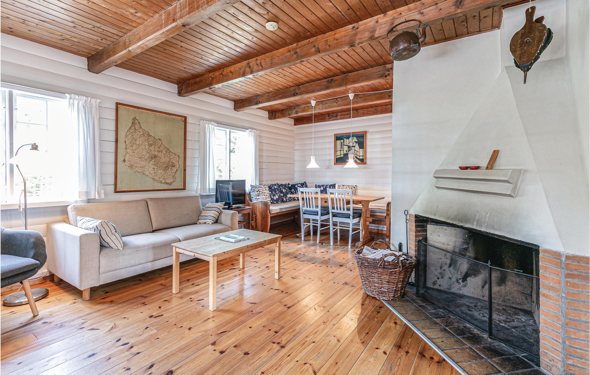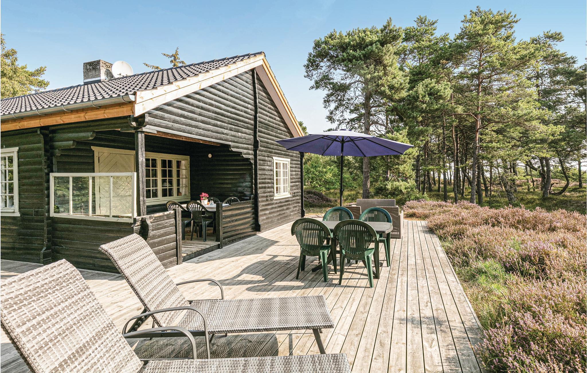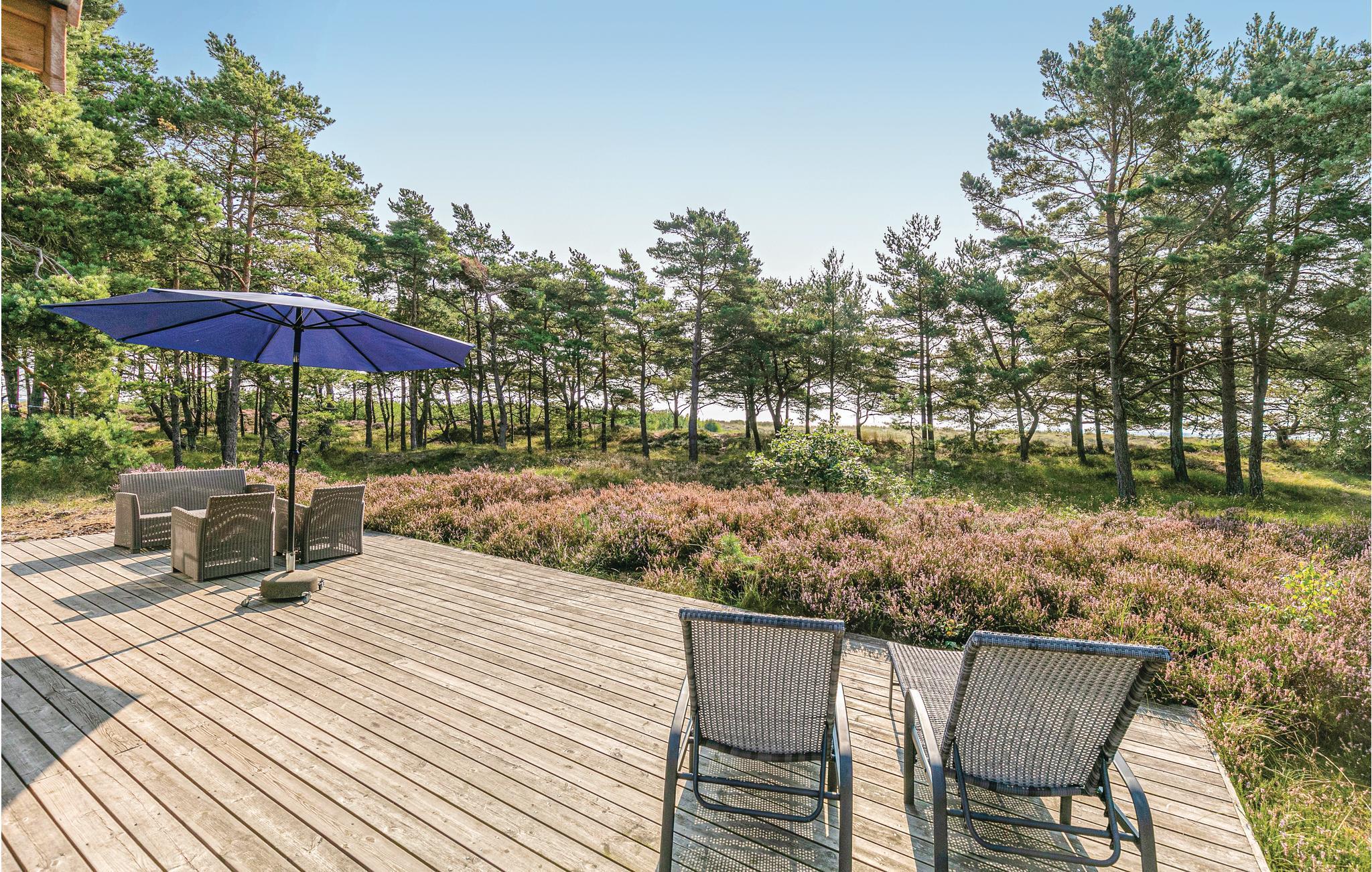 Draußen erwarten Sie eine schöne Holzterrasse und ein Weg, der direkt zum guten Sandstrand führt. Im Inneren des Hauses finden Sie ein gemütliches Dekor, natürliche Holzbalken an Wänden und Decken und einen offenen Kamin. Ältere, aber schöne Möbel. Vom Wohnzimmer gibt es Zugang auf die große Terrasse, auf der Sie sich entspannen und die frische Luft genießen können. Oder starten Sie hier in den Tag mit einem leckeren Frühstück und planen Sie die Aktivitäten des Tages.
