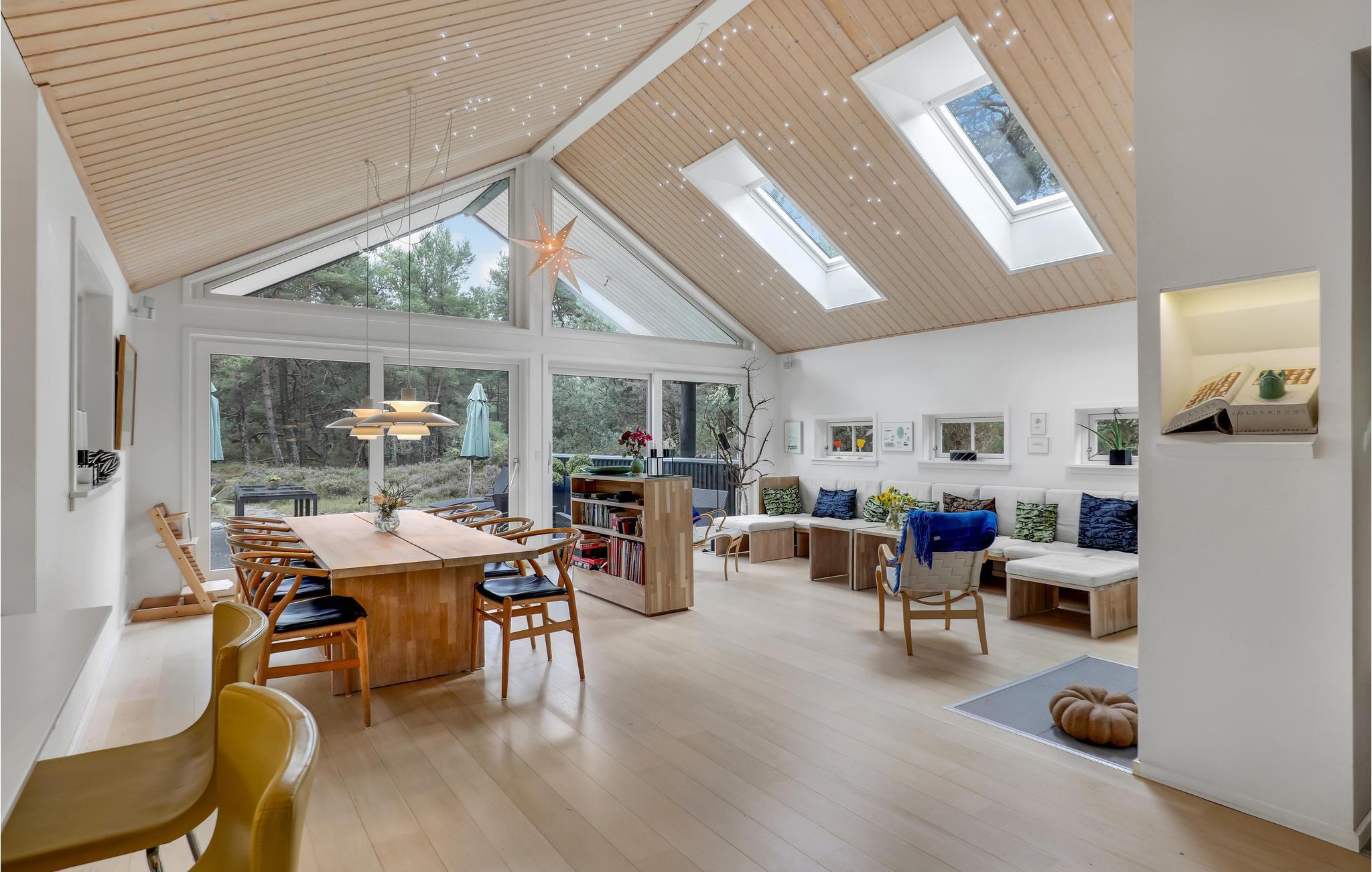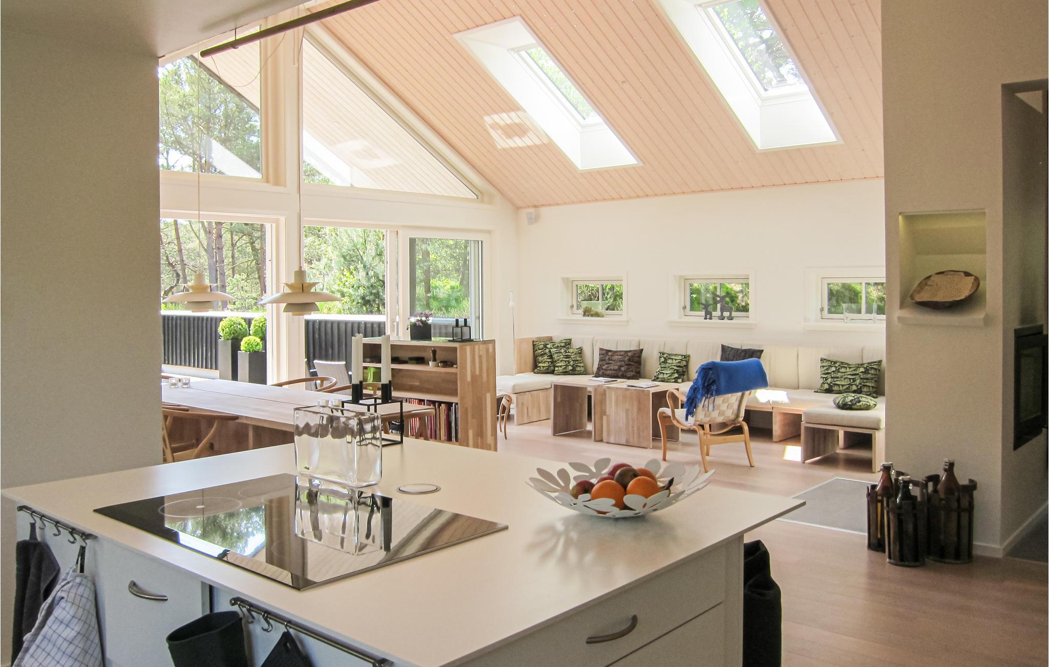 In idyllischer Lage am Waldrand und nur einen kurzen Spaziergang vom Strand entfernt begrüßt das helle und einladende Haus seine Gäste. Freuen Sie sich nach Ihren Erkundungen der Insel auf gemütliche Abende im heimeligen Wohnbereich. Lassen Sie den Blick durch die Fensterfront schweifen und plaudern Sie noch lange, während im Kaminofen die Flammen prasseln.