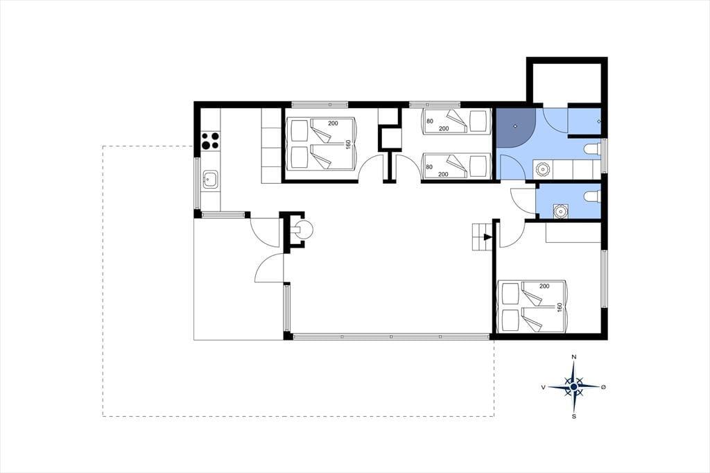 Das Haus umfasst 3 Schlafzimmer, einen offenen Küchen- und Essbereich, einen gemütlichen Wohnraum, ein Badezimmer mit einem Whirlpool und einer Sauna und ein Gäste-WC. Die Schlafplätze verteilen sich auf zwei Räume mit je einem Doppelbett und auf einen Raum mit Einzelbetten. Das Herzstück dieses Urlaubsdomizils bildet der Küchen- und Essbereich. Die Küche verfügt über alles, was eine moderne Familie für die Zubereitung der Urlaubsmahlzeiten benötigt. Hier genießen Sie einen schönen Tageslichteinfall und einen ansprechenden Blick in den Garten.
