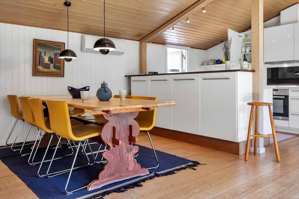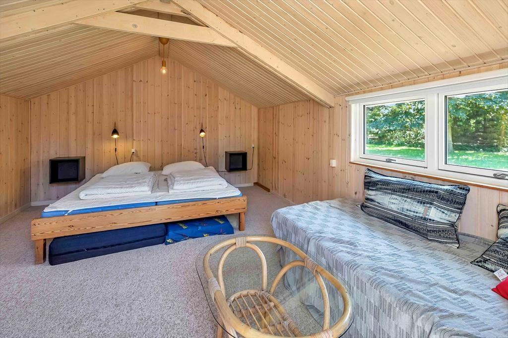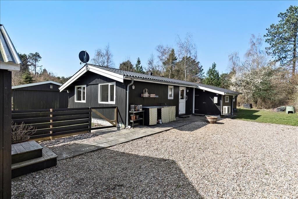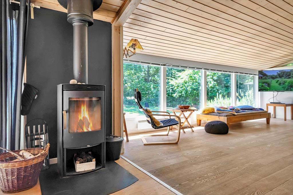 Das Haus ist mit einem Wohnraum und dazu hörender offenen Küche mit Decke zu kippen eingerichtet. In der Küche haben Sie Geschirrspüler und Mikroherd, und im Wohnraum finden Sie Fernseher, Holzofen und Wärmepumpe, was das Haus zu Ferien durch das ganze Jahr geeignet macht. Von den fantastischen Panoramafenstern haben Sie einen Blick zu dem gemütlichen und ungestörten Garten, wo die Rehe häufig kreuzen. Im Haus haben Sie auch 3 gute Schlafzimmer mit Doppelbetten, und ein Nebengebäude mit Doppelbett. Das Badezimmer ist mit Dusche. Auf der südlichen Fliesenterrasse haben Sie optimale Sonnenbedingungen. In der Einfahrt gibt es eine gute Außenküche, und ganz dicht am Haus finden Sie auch eine Schleppstelle für ein Boot.