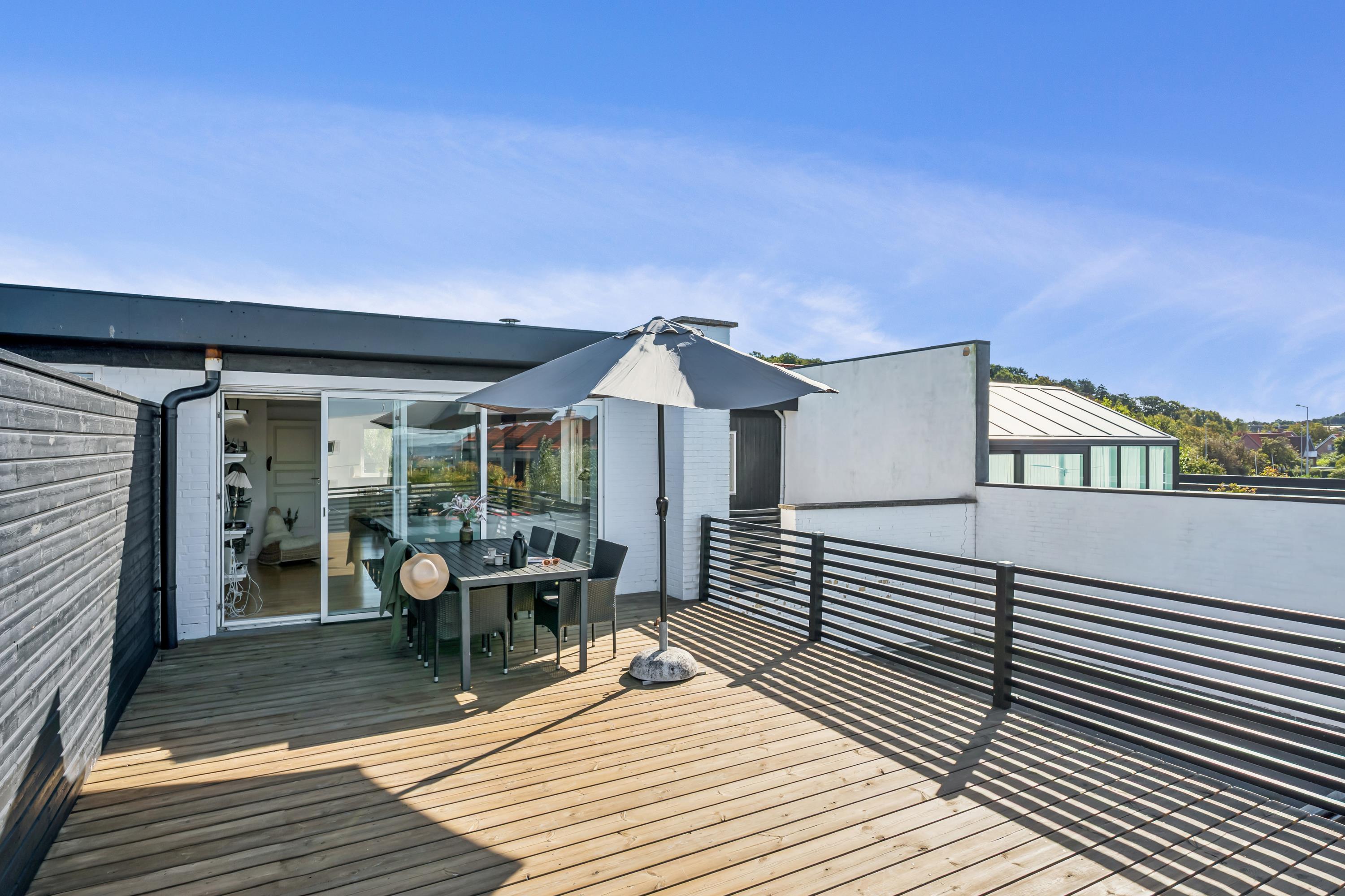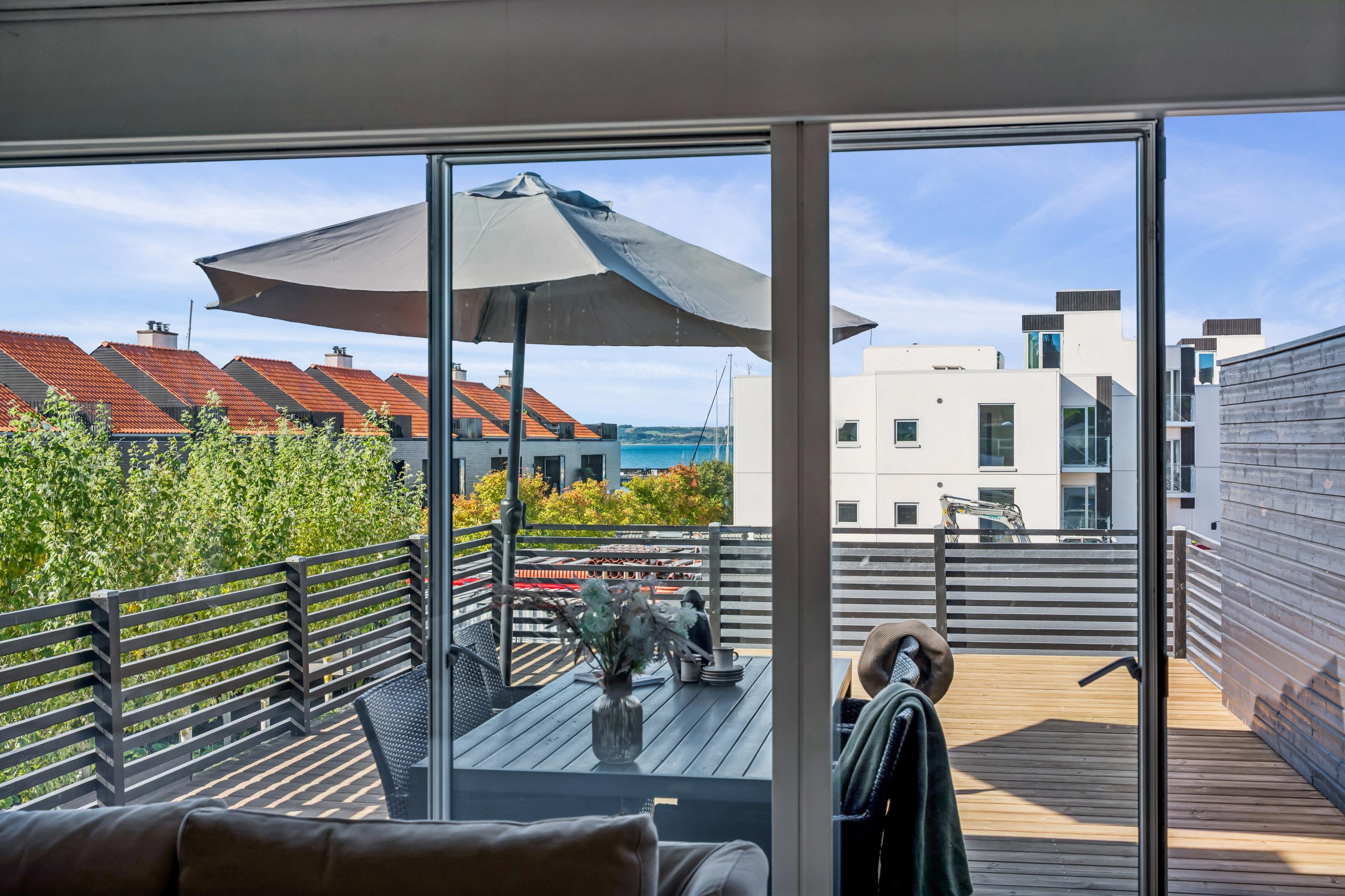 Centrally located city apartment by the harbor in Ebeltoft with large roof terrace. The residence is bright and inviting after a total renovation in 2017. Here, you can enjoy the unique life and atmosphere of the harbor environment and the spectacular sunsets over Ebeltoft Vig.