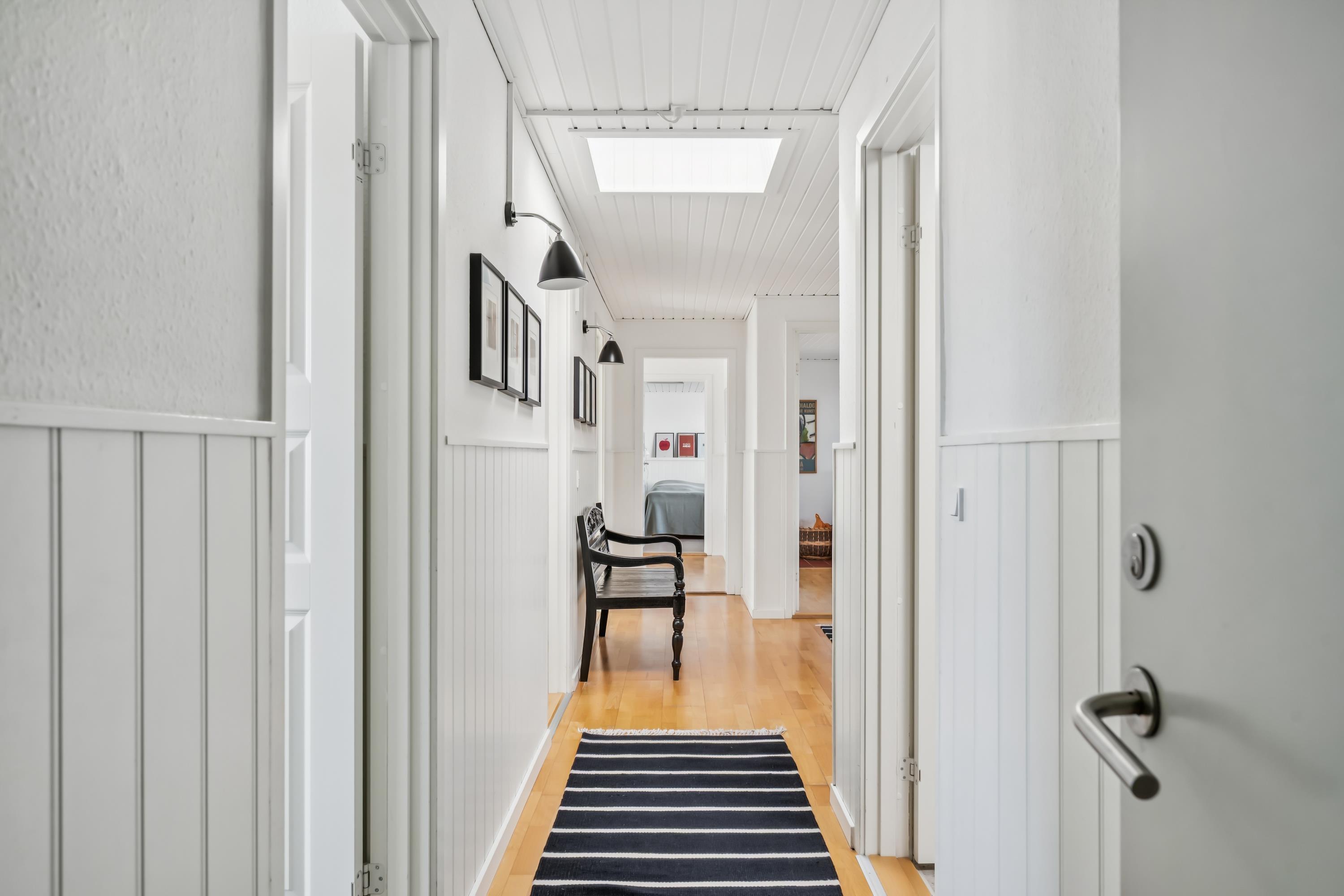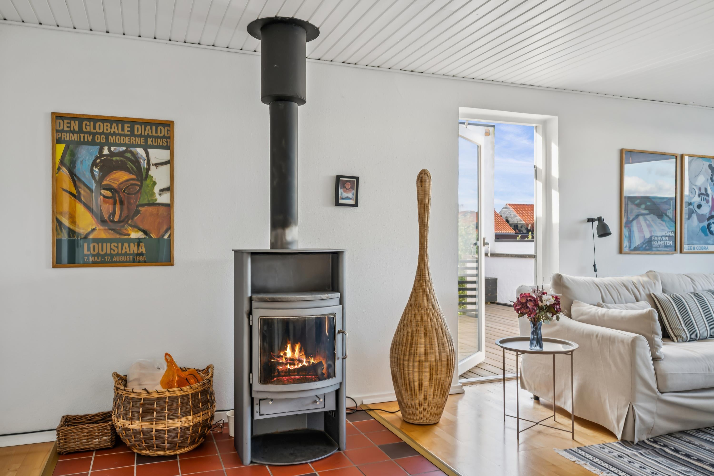 From the entrance, there is access to a delightful living room with panoramic windows and an exit to the rooftop terrace. Modern and comfortable furniture, a wood-burning stove, cable TV with Danish (including TV2) and German channels, and a radio are available. The new, spacious kitchen offers ample table and cupboard space, ceramic hobs, built-in oven, refrigerator, dishwasher, and microwave. Next to the kitchen, you'll find a lovely bright dining room with seating for 6 people. The house accommodates 6 people in 2 good-sized bedrooms and 1 slightly smaller room, all with double beds. The bathroom is simple and neat, equipped with a bathtub, shower, and underfloor heating. There is internet access.