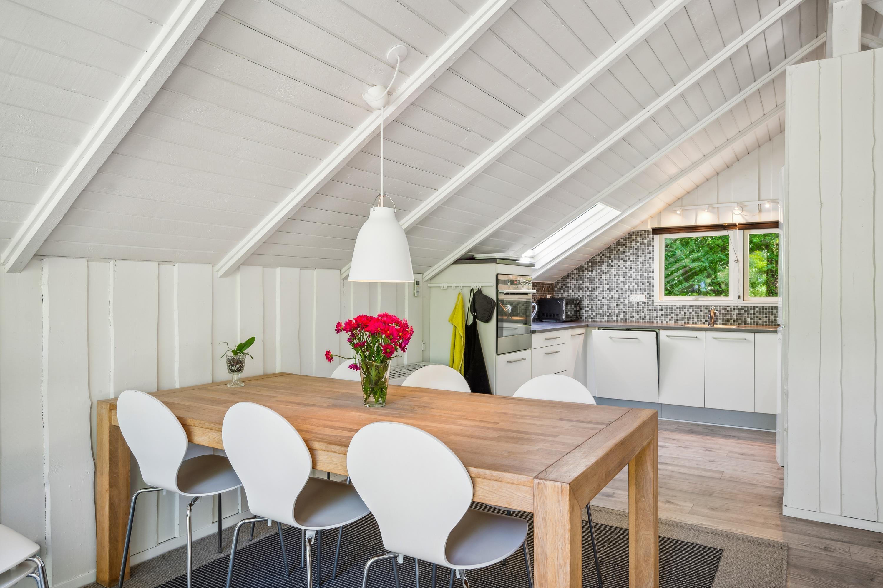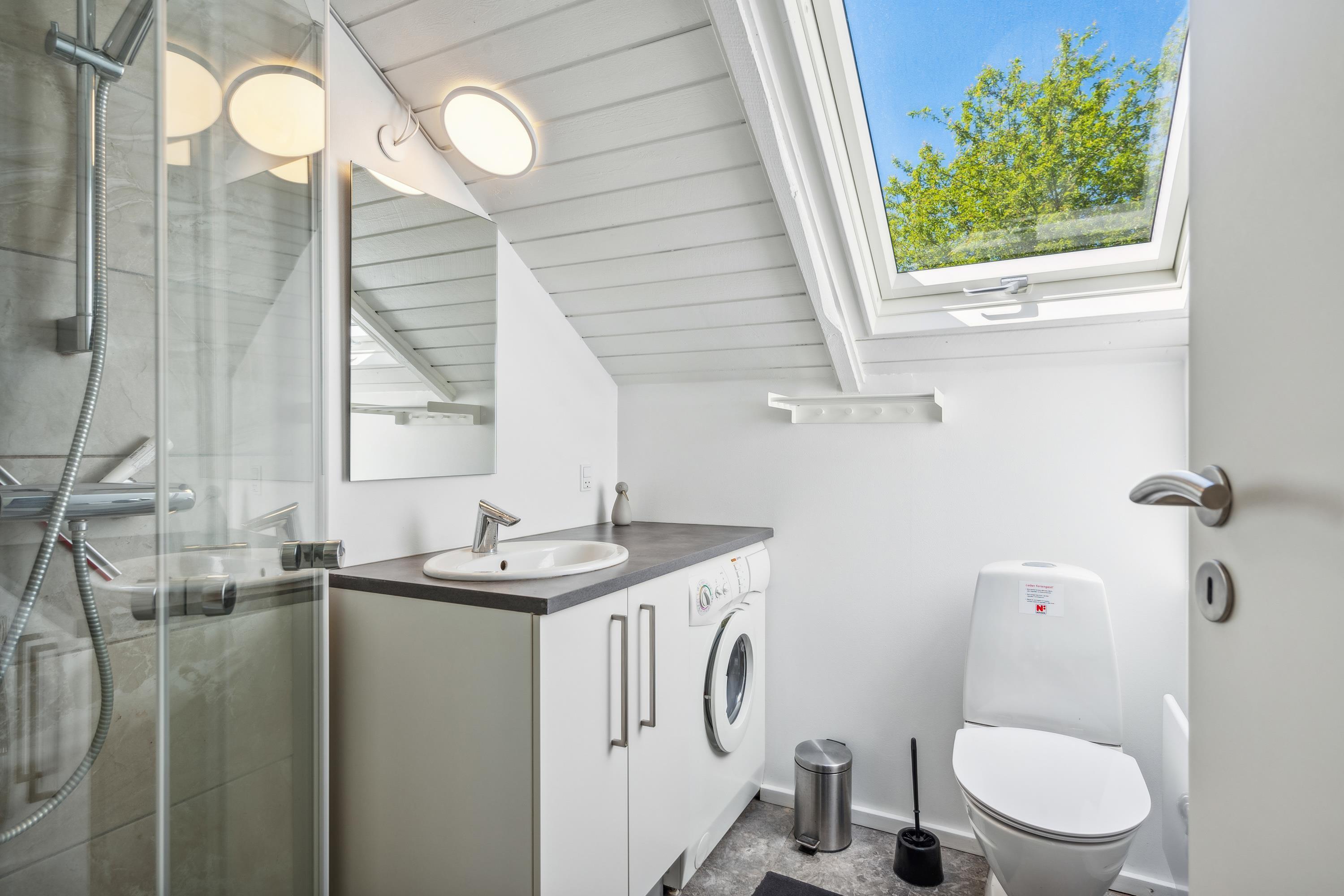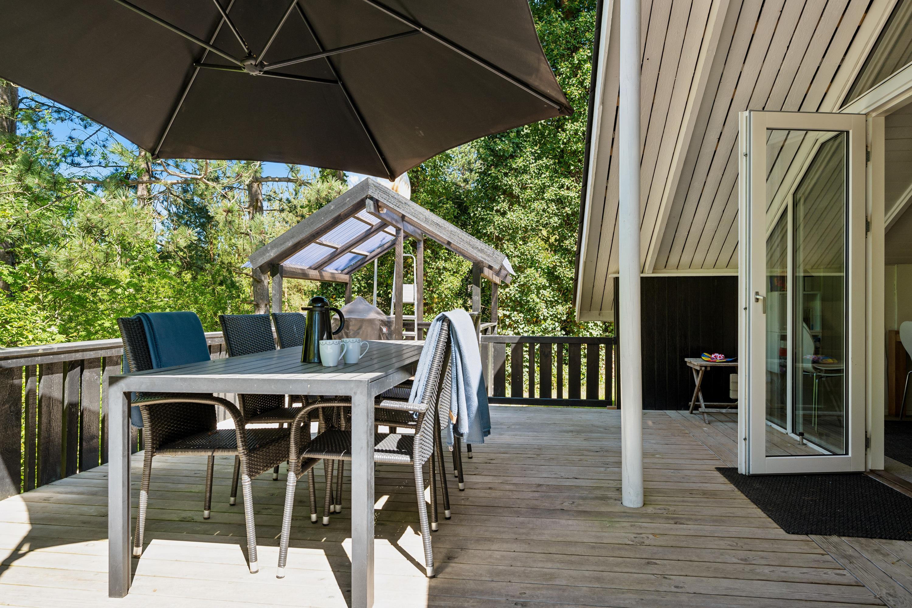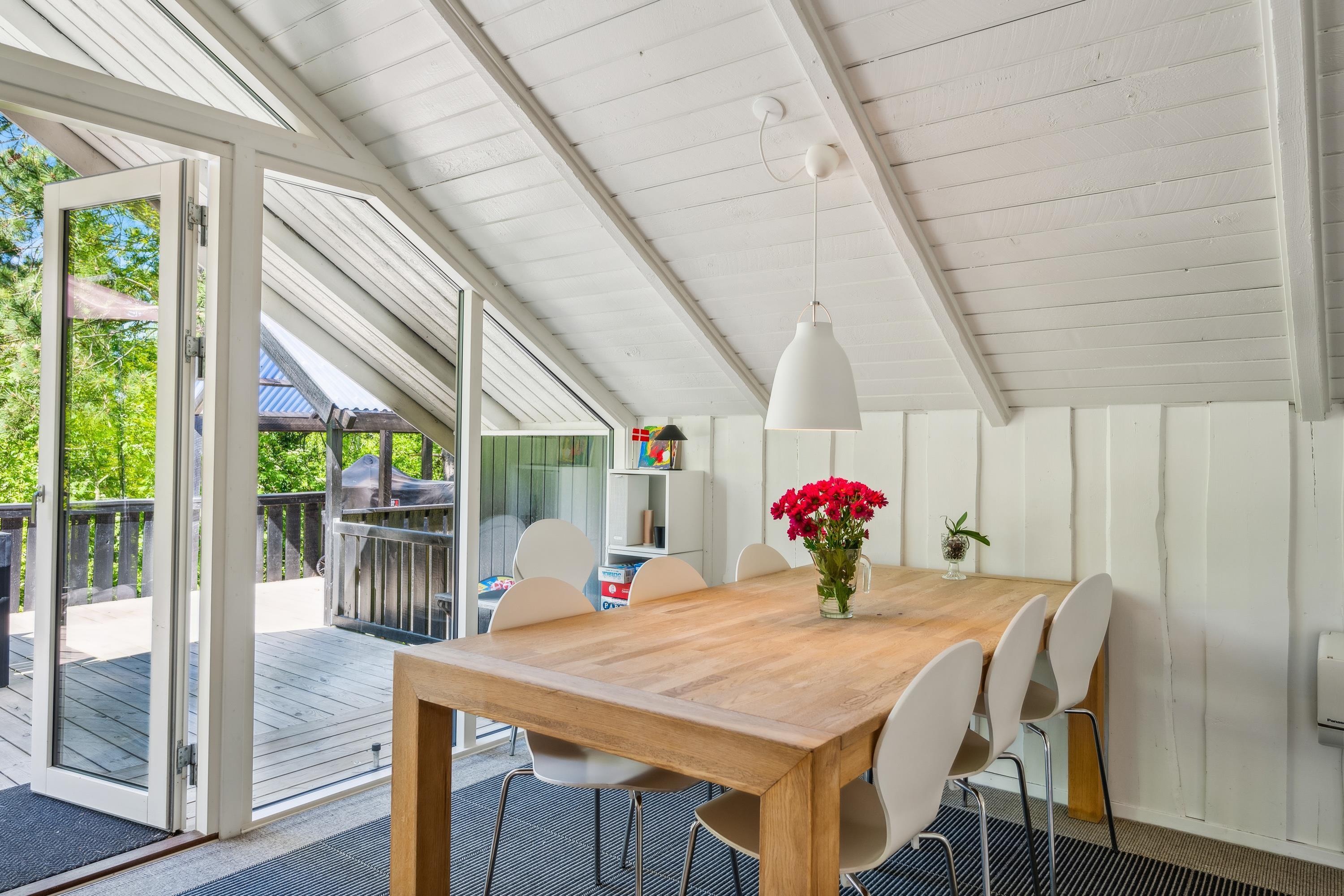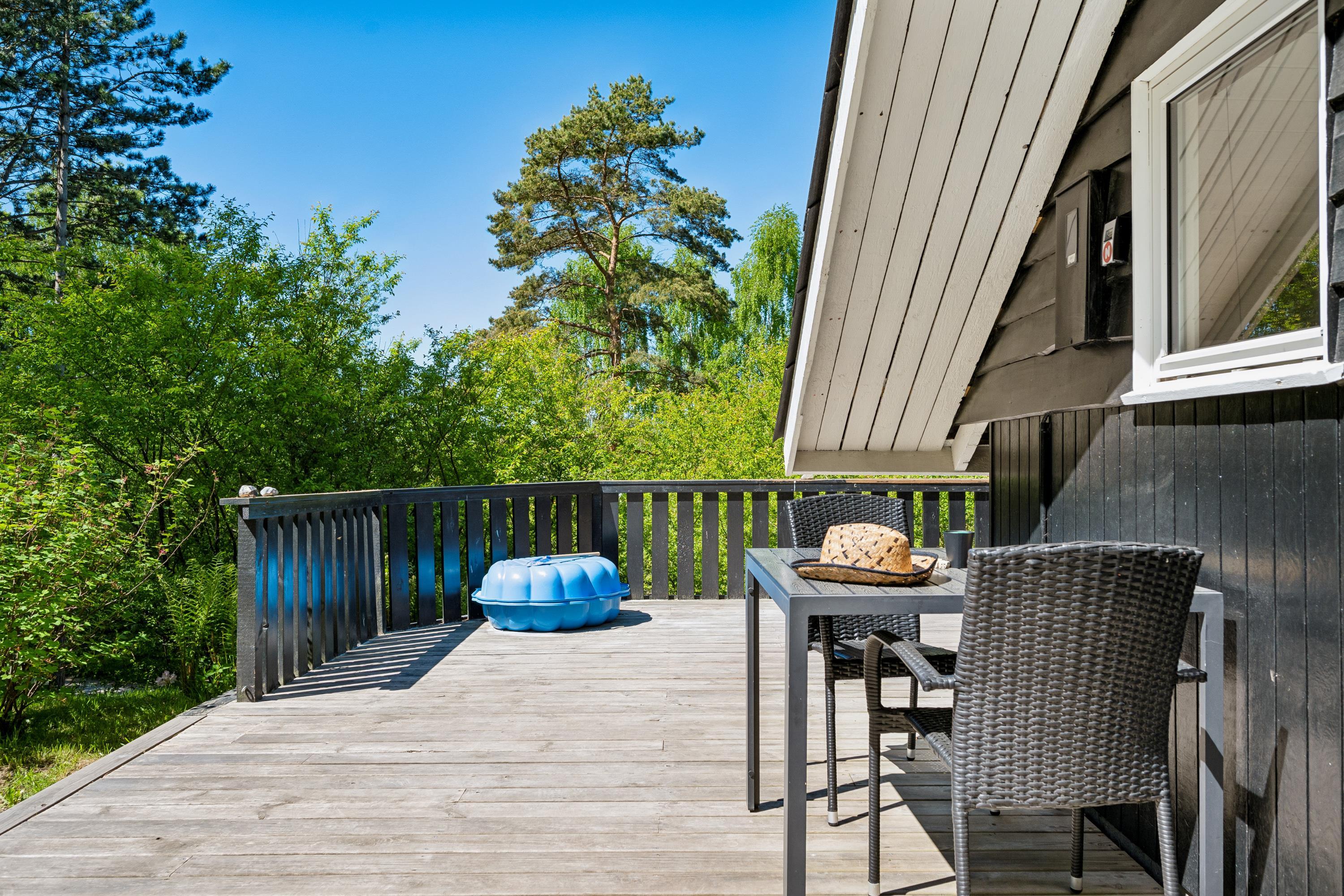 Just a 5-minute drive from Ebeltoft, you will find this exceptionally well-maintained and cozy holiday home. The house is situated on an elevated position with views over the beautiful landscape and features a lovely living room, cozily furnished with good furniture, a wood stove, and a heat pump. From the living room, there is access to a truly wonderful terrace with good garden furniture and a grill. Adjacent to the dining area is the cozy and well-equipped kitchen, including a dishwasher. There are three bedrooms with double beds measuring 120x200 cm, 140x200 cm, and 160x200 cm, respectively. The house also includes a nice bathroom with a shower. For the little holiday guests, there is a cot, a high chair, and a sandbox. The house offers DR1 channels, a Chromecast, and internet. There is also an electric car charging station. The house is located on a sloping plot and is therefore not suitable for people with mobility issues. It is set in a beautiful natural area about 2 km from Ebeltoft Golf Course and within cycling distance of Ebeltoft town. Here, you can stroll through the town's cobblestone streets with hollyhocks, visit one of the small specialty shops, or visit the Old Town Hall. At the harbor, you will find the Frigate Jylland and the Glass Museum, as well as several good dining options and shops. A visit to Djurs Sommerland is also recommended, where you will find attractions for both young and old. Or visit the Kattegat Center in Grenaa, which recently expanded its collection with the cutest penguins.