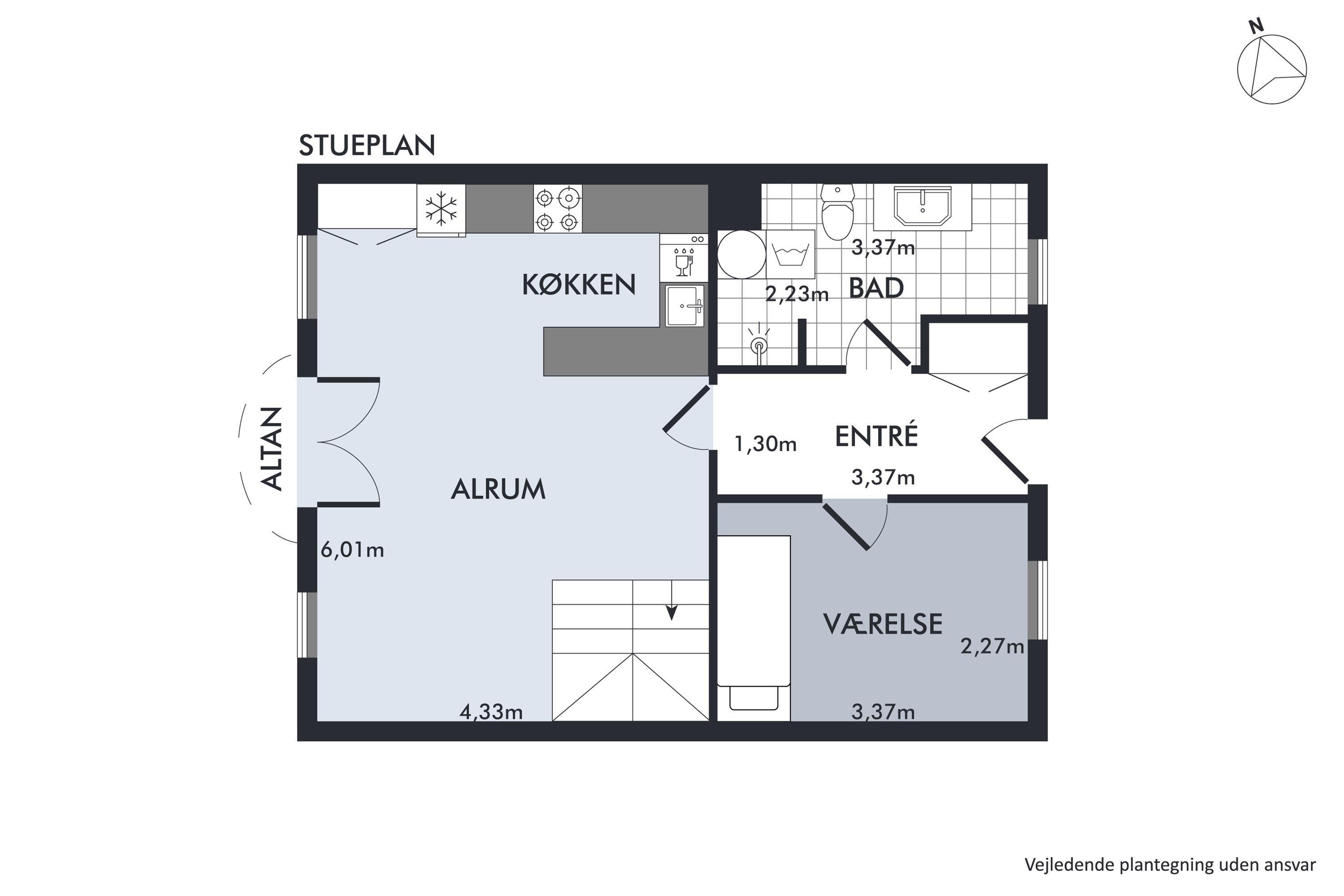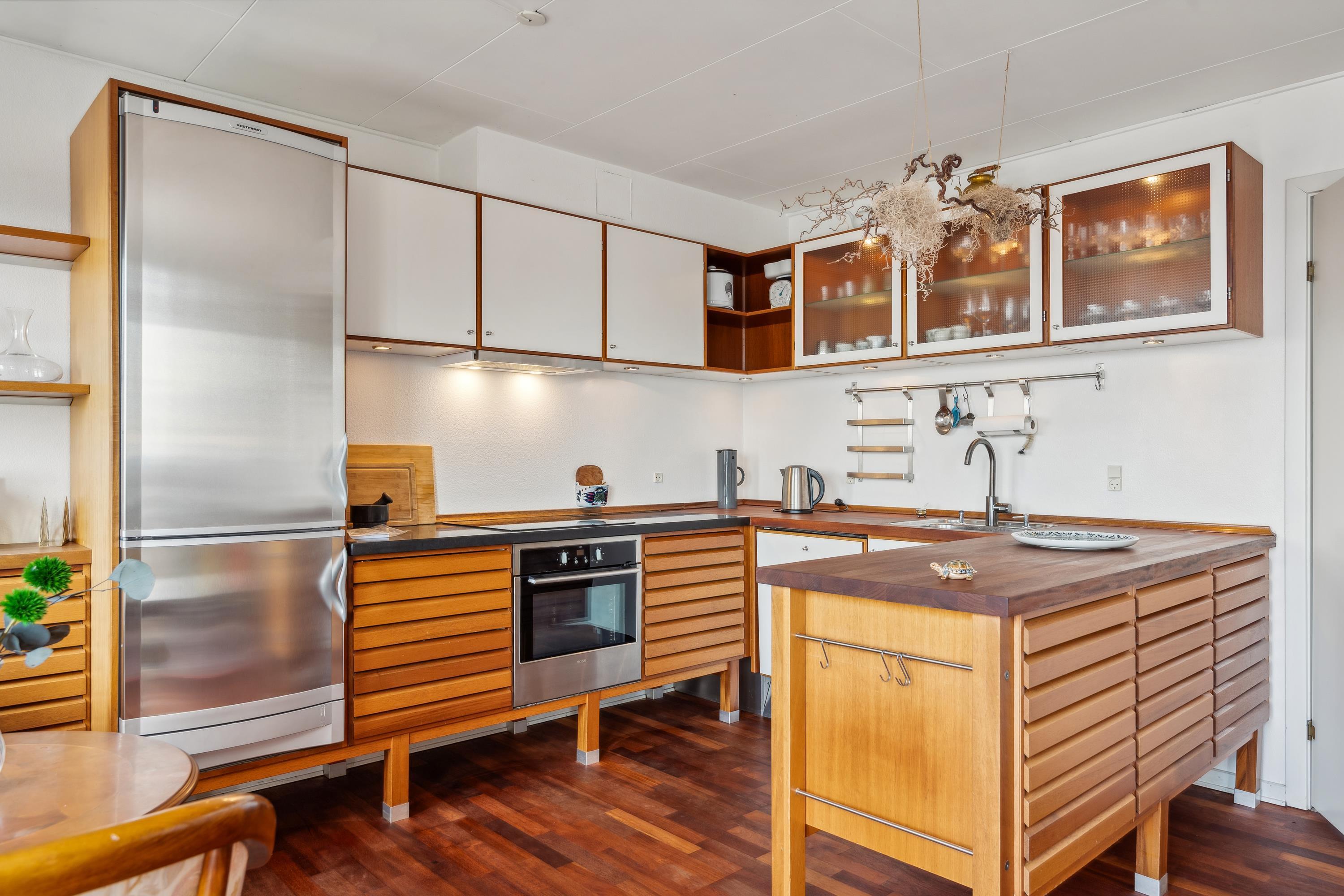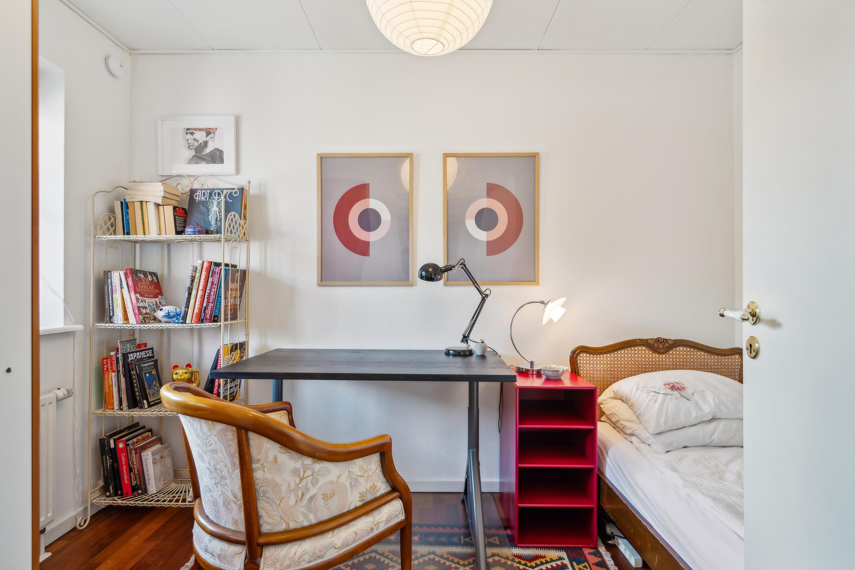 In a cozy and quiet residential complex on the first floor, you will find this lovely two-story apartment. On the lower floor, there is a beautiful kitchen-dining area with a large dining space adjacent to the kitchen and access to a small balcony with a table and a couple of chairs. There is a nice bathroom with a shower and a bedroom with a single bed. From the dining area, there are stairs leading up to the first floor, where you will find a cozy living room with a comfortable double sofa bed and a very large bedroom with a double bed. The owner of the apartment is currently abroad, so you should expect the apartment to have some personal items, including books, which you are naturally allowed to read. There is parking close to the apartment and an elevator. The apartment is located just a stone's throw from the city's charming cobblestone streets with many delightful cafes, restaurants, and small specialty shops. Here, you will also find the Old Town Hall, which is worth a visit. At the harbor, you will find the Frigate Jylland and the Glass Museum, which is famous for its unique glass art. Here, you will also find several good dining options and opportunities to buy freshly caught fish every day.