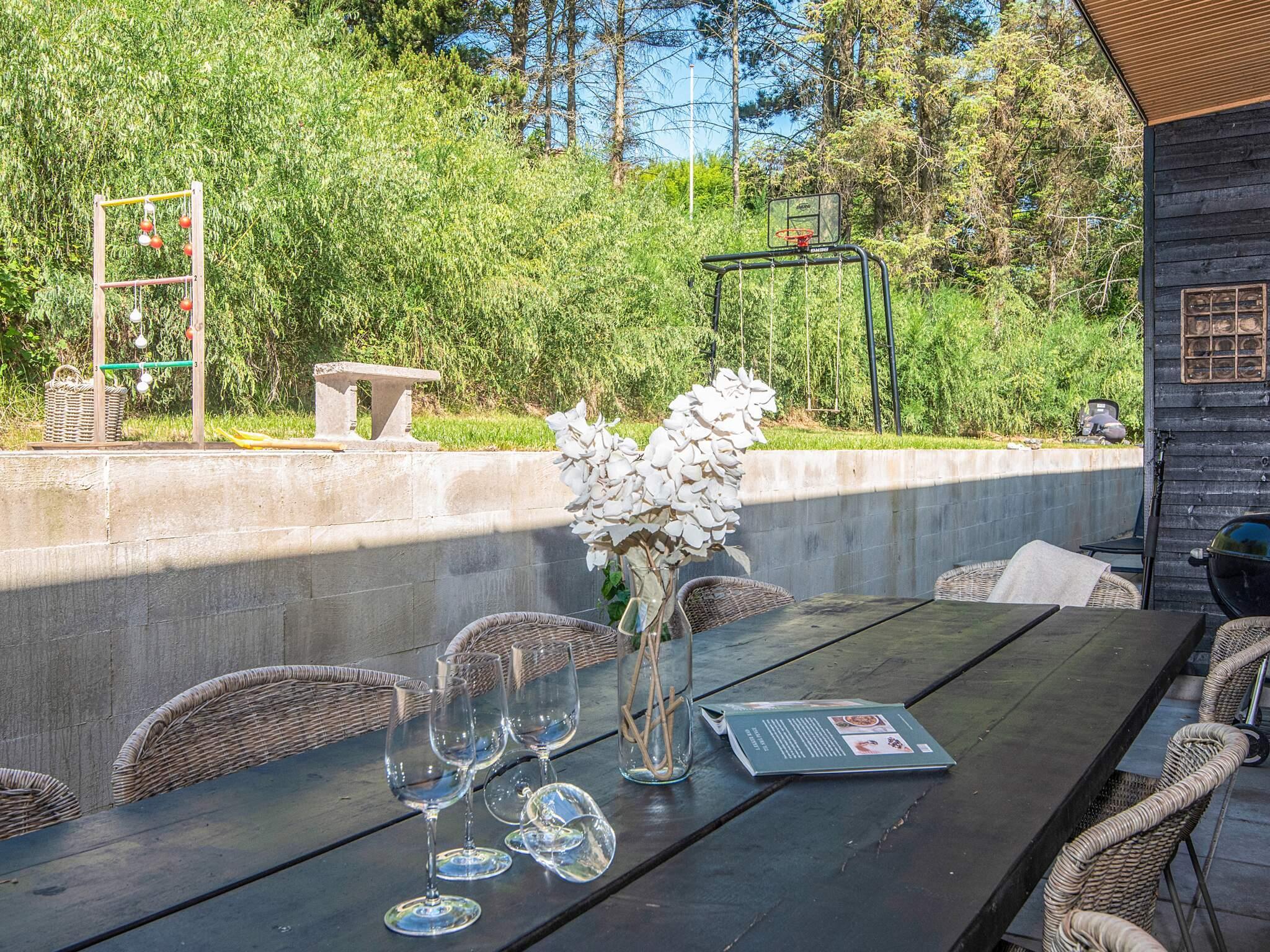 Das Anwesen liegt auf einem natürlich abschüssigen Grundstück, was den Außenbereichen Charme und Charakter verleiht. Gäste mit eingeschränkter Mobilität sollten jedoch beachten, dass die Steigung eine Herausforderung darstellen kann. Die Kombination aus Innen- und Außenbereich sorgt dafür, dass jeder die passende Art der Entspannung oder Aktivität findet – sei es beim Entspannen im Whirlpool, beim Spielen oder einfach beim Genießen der umliegenden Landschaft.