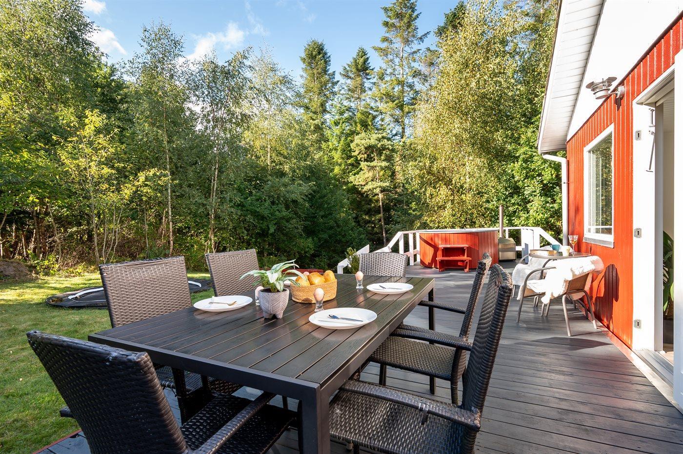 The holiday home is situated on a 1200 m² natural site. Situated 925 m from the sea. Situated 20 m from lake. Nearest shop is 2000 m away. A terrace belong to the holiday home. Furthermore the house has a covered terrace. You find a tool shed. Swing. Sandbox. Playhouse. Trampoline. Play tower. Slide.Fire place. Shelter. Barbecue at your disposal. Parking place by the holiday home.