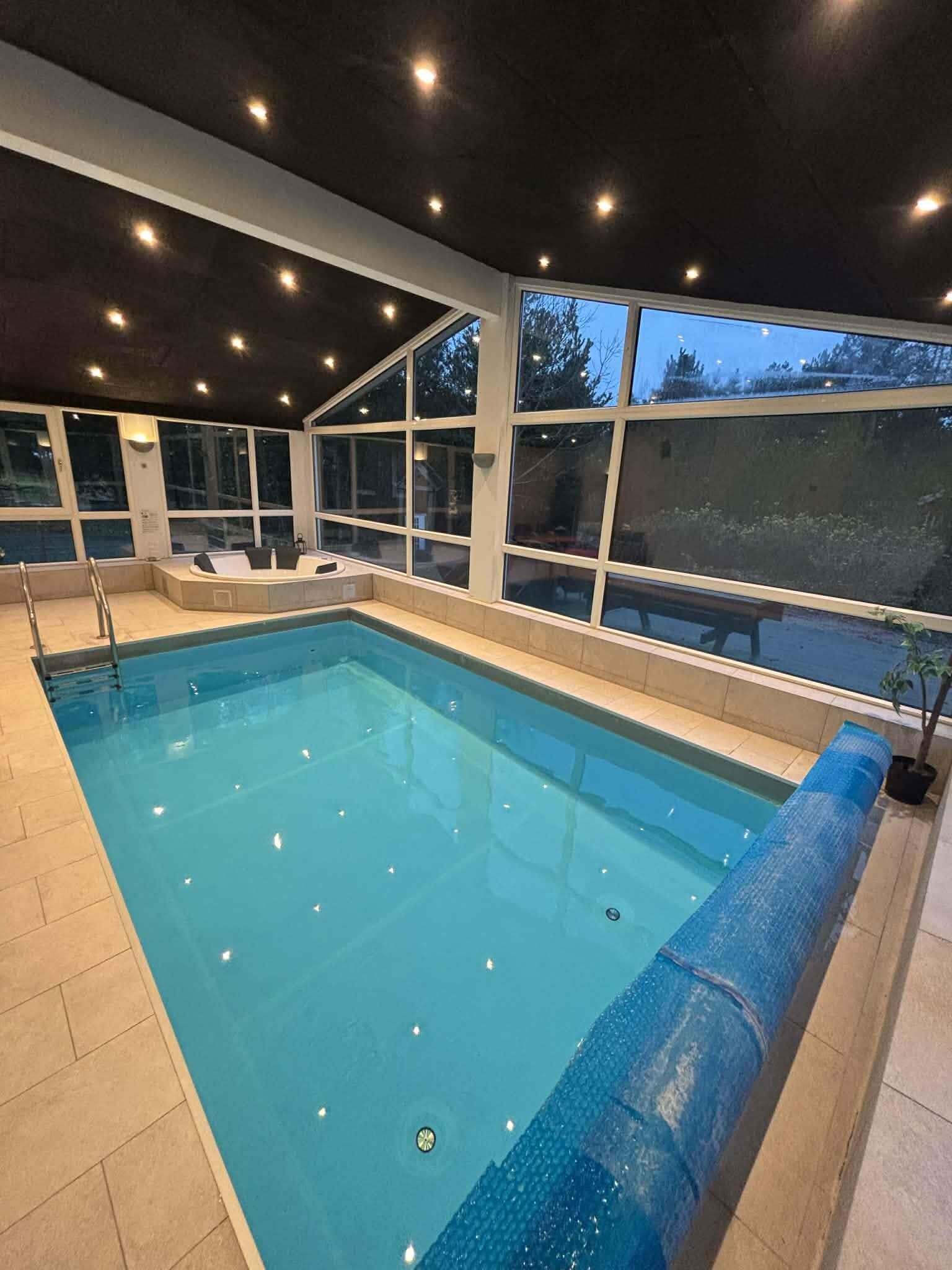 This spacious and well-designed 205 m² summer house is ideal for large groups or multiple families. With 7 bedrooms and room for 14 people, it offers both privacy and social spaces. The house is equipped with an air-to-water heat pump and a wood stove, ensuring a comfortable temperature year-round. Internet access makes it easy to stay connected or stream during your leisure time. From the house, you’ll enjoy stunning views of the sea and the area around Jernhatten, known for its excellent fishing. The view can be appreciated both indoors and outdoors. Just 50 meters from the water, the house provides easy access to the beach. Swimming, relaxing, or a refreshing walk along the coast are all within reach. The area surrounding the house offers excellent surfing opportunities. The nearby conditions are ideal for both beginners and experienced surfers looking to challenge themselves on the water. Jernhatten is a popular spot for fishing enthusiasts. Here, you can catch various fish species in a scenic environment that also invites hiking. Ebeltoft is a short drive away. Visit its charming cobblestone streets, glass workshops, the Old Town Hall, and the frigate Jylland, all contributing to a delightful holiday atmosphere. The nature around Ebeltoft is perfect for both active and relaxing holidays. Trails and cycling routes allow you to explore forests, hills, and coastal landscapes up close. With its many bedrooms and spacious common areas, the house is perfect for larger groups seeking to combine comfort with a scenic location near water and activities. Enjoy the lovely indoor pool measuring 3 x 5 metres This summer house is the ideal base for a holiday where you can enjoy beautiful surroundings, water activities, and the many opportunities Ebeltoft and the area have to offer.
