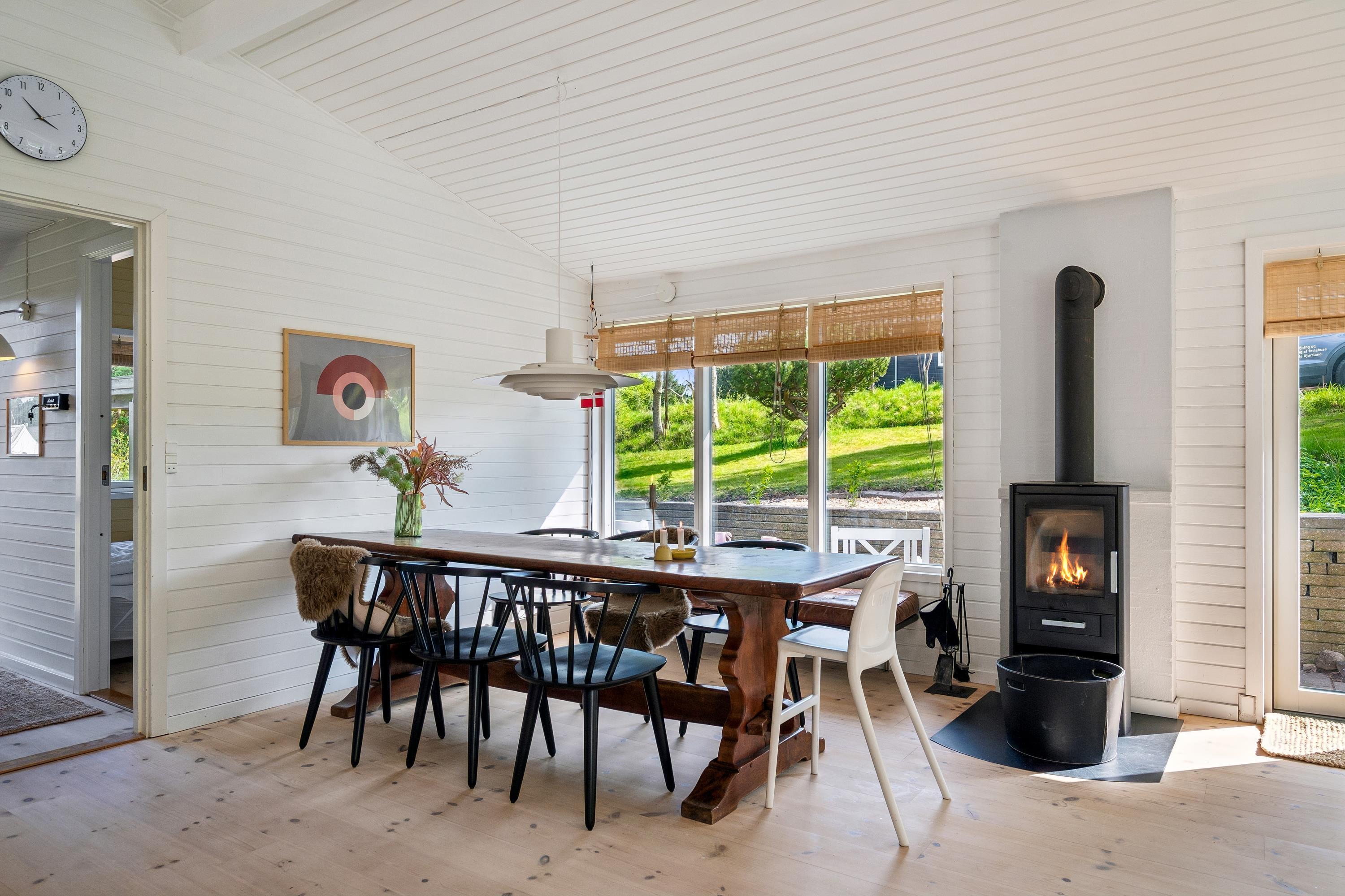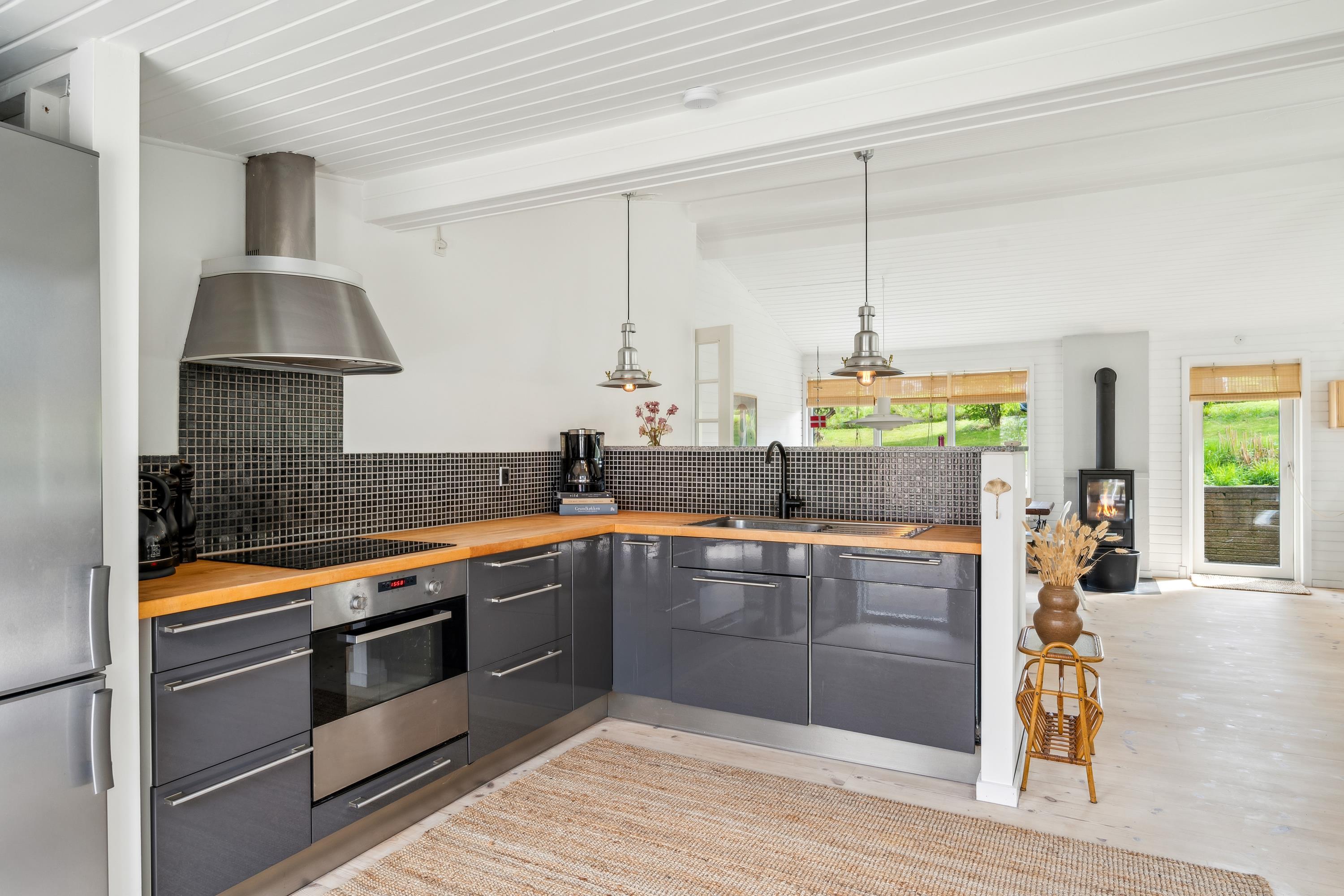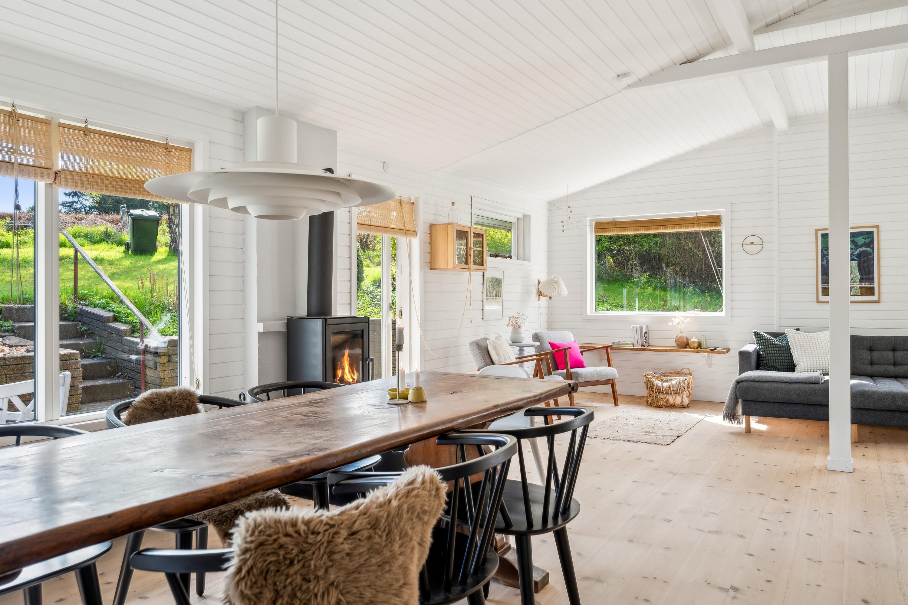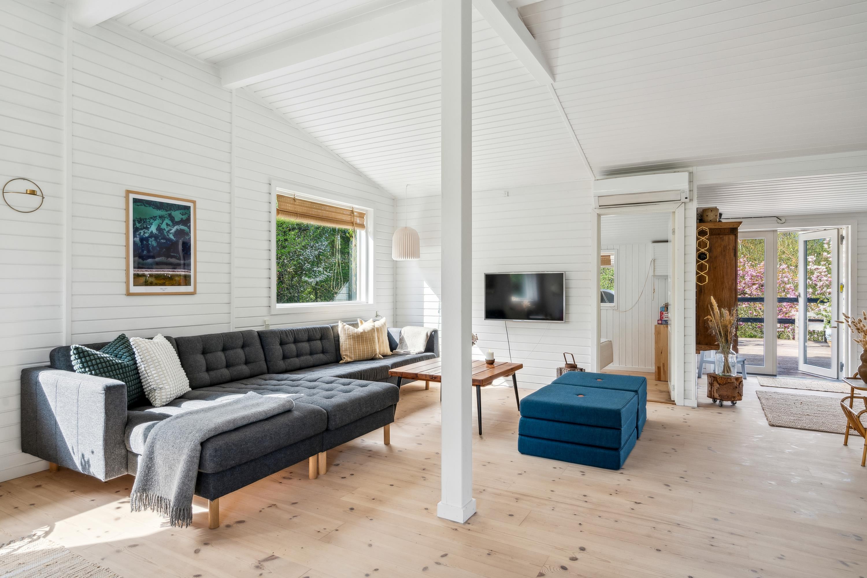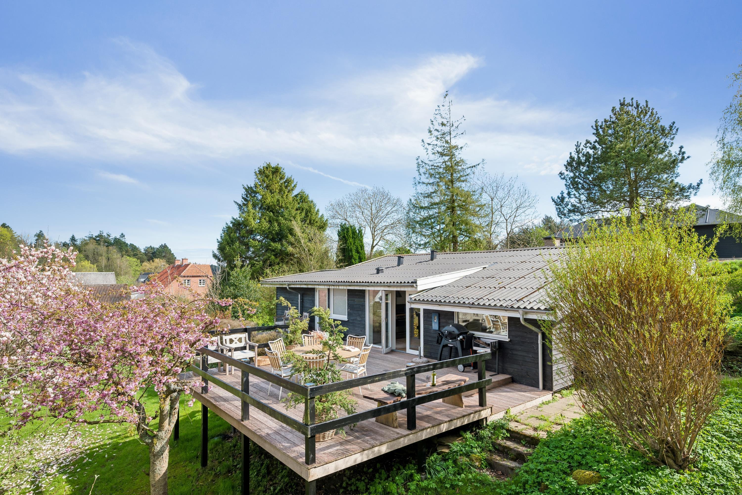 Just a 10-minute drive from Ebeltoft, you'll find this well-maintained and charming holiday home. The house features a bright and spacious living room, comfortably furnished with quality furniture. Adjacent to the living room is a stylish kitchen equipped with a dishwasher, and from here, you have direct access to a large, lovely terrace with garden furniture. The sleeping arrangements include three cosy bedrooms – two with double beds and one with two single beds. The bathroom is nice and functional with a shower and access to a washing machine and tumble dryer.