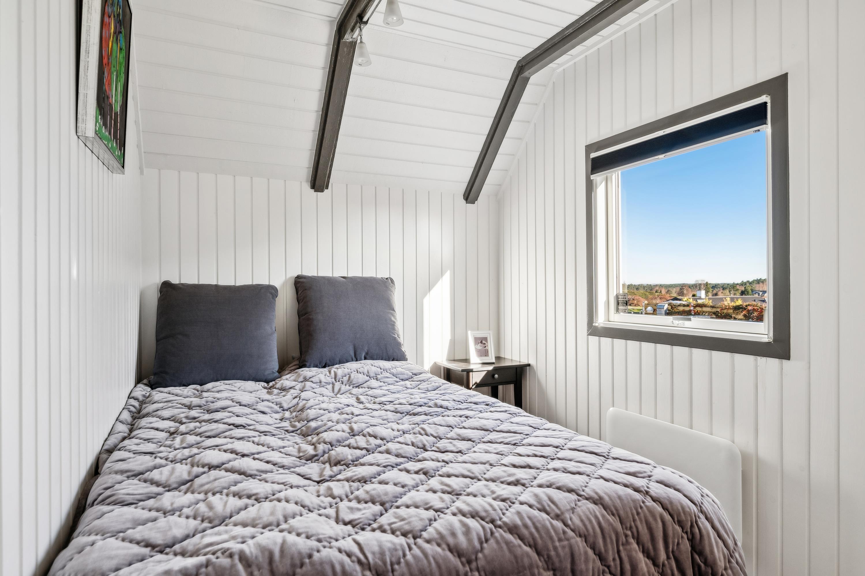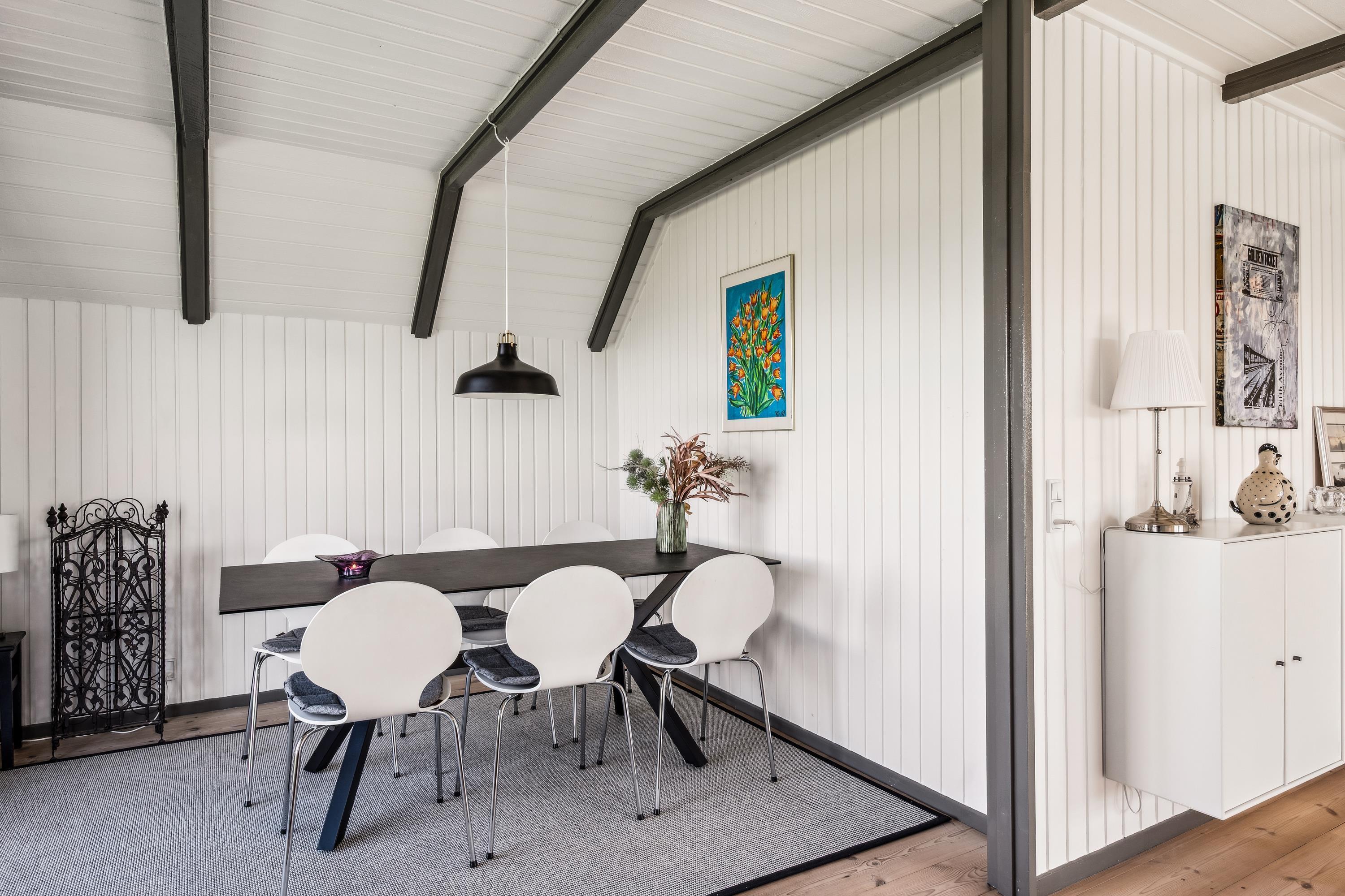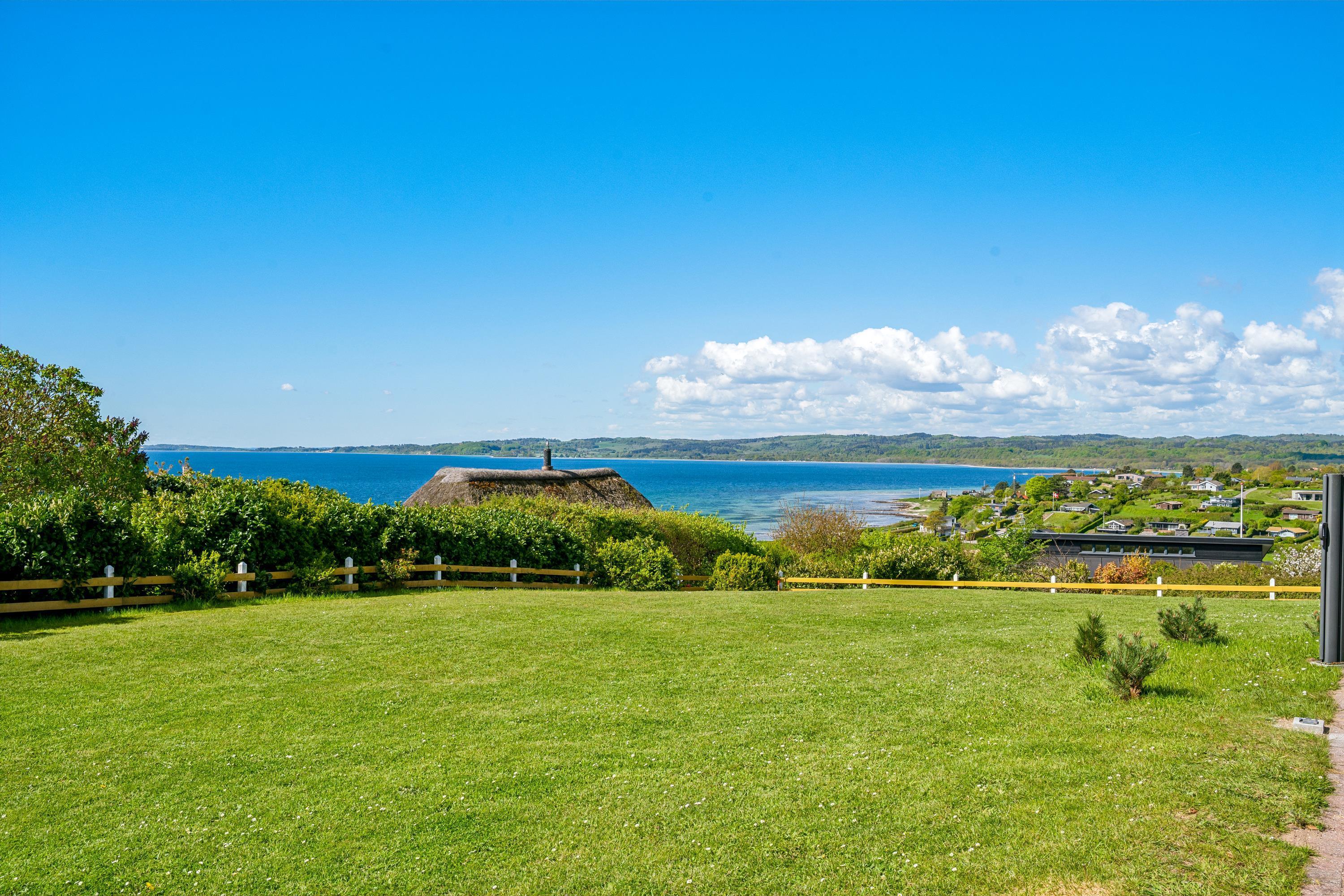 Welcome to this beautifully elevated holiday home at Egsmark Strand, offering one of the most stunning panoramic views in the area. Here, you will find an inviting living room, furnished with quality furniture and direct access to a fantastic terrace with comfortable outdoor seating. Adjacent to the living room is the kitchen, which includes a dishwasher, as well as a lovely and well-furnished dining area. The modern bathroom features a shower, underfloor heating, and access to a washing machine and dryer.