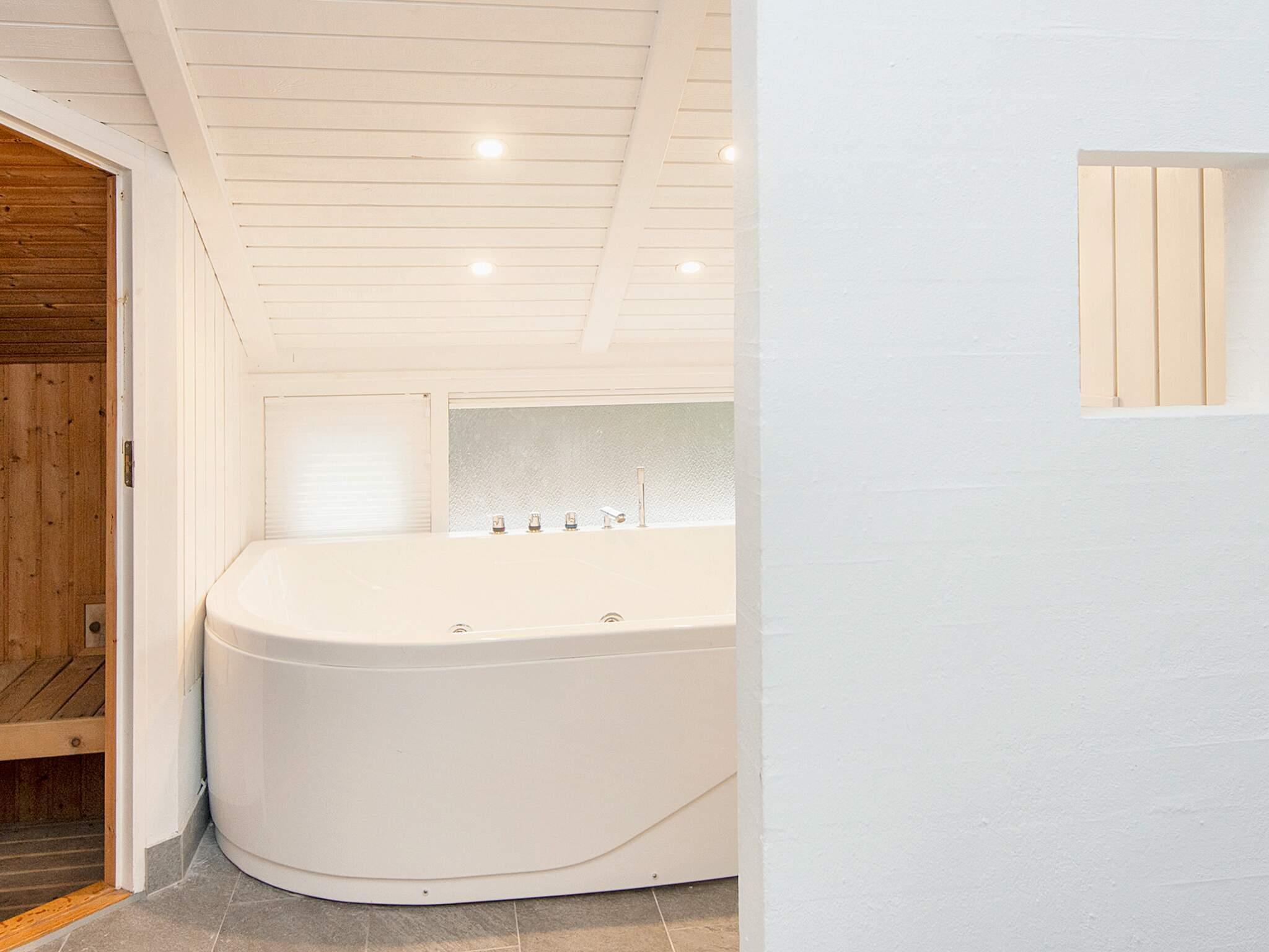 Zur Entspannung stehen im größeren der beiden Badezimmer auch Sauna und Whirlpool bereit. Die 43 m² große, größtenteils eingefasste Terrassenfläche lädt an schönen Tagen zum Aufenthalt im Freien ein. Ein Teil der Fläche ist zudem überdacht und seitlich verglast, um so auch an windigeren Tagen nutzbar zu sein.