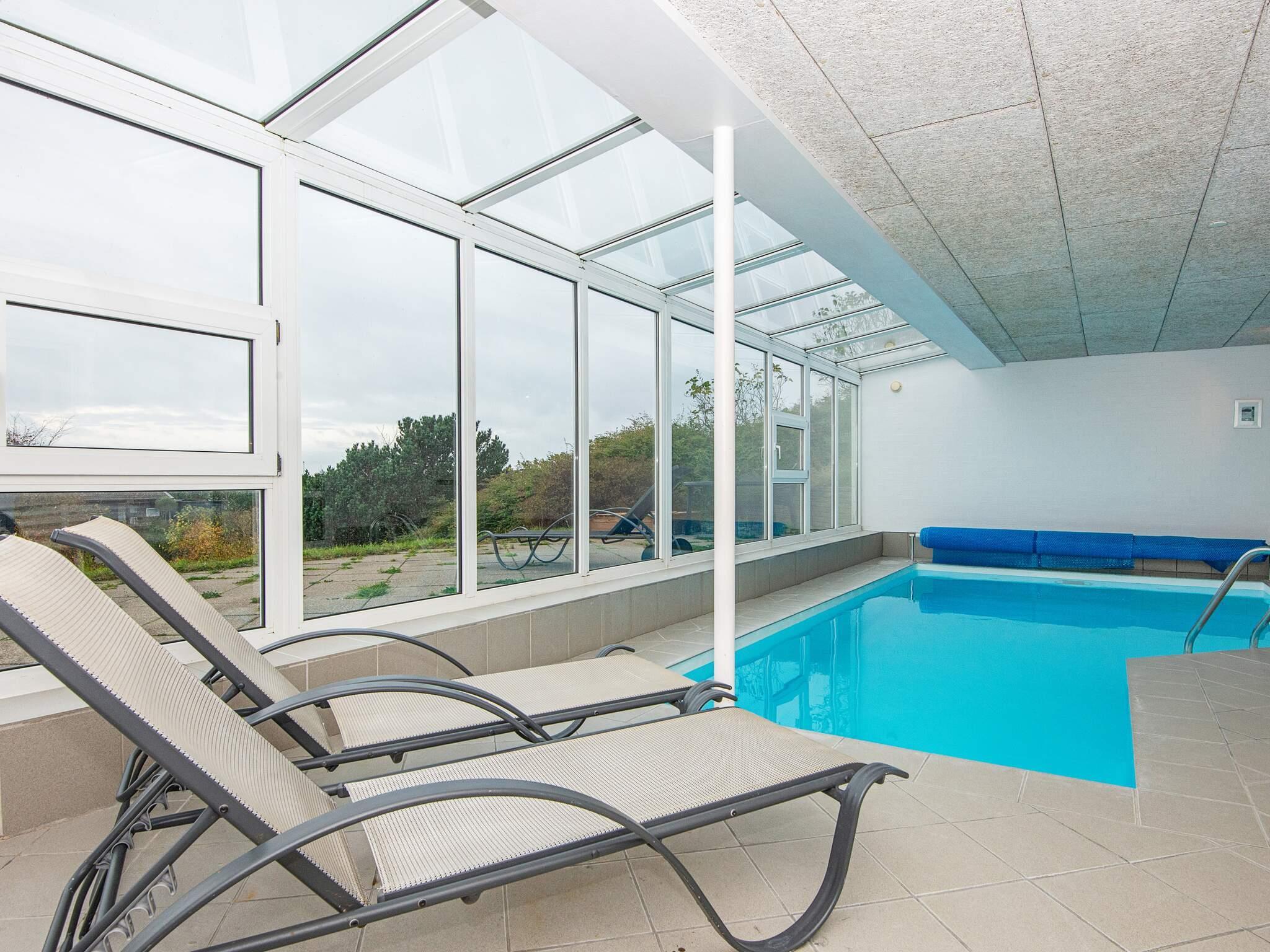 der Poolbereich untergebracht. Dort stehen auf etwa 60 m² Fläche ein