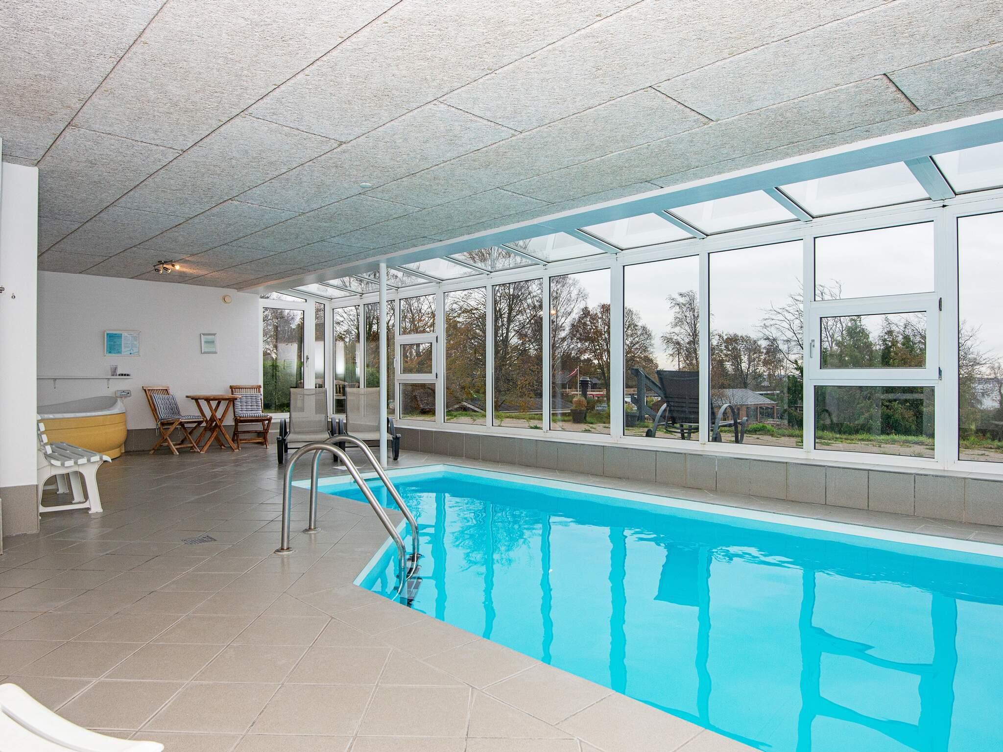 Dieses Poolhaus bietet eine einzigartig schöne Lage, mit wunderbarer Aussicht zur Bucht Ebeltoft Vig. Es liegt etwa 20 m über dem Wasser, daher mit freier Sicht zur Küste. Nur etwa 600 m weiter findet man den kinderfreundlichen Sandstrand mit seichtem Ufer und einem Badesteg. Den Ausblick zum Meer kann man von Wohnzimmer, Küche, Terrasse sowie im Poolbereich genießen.