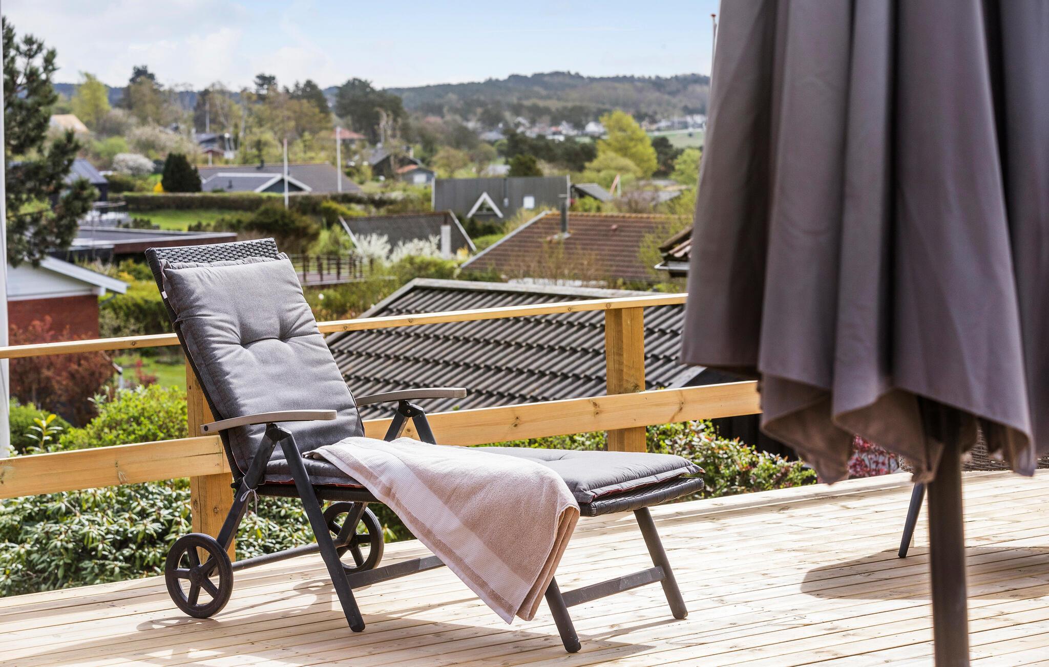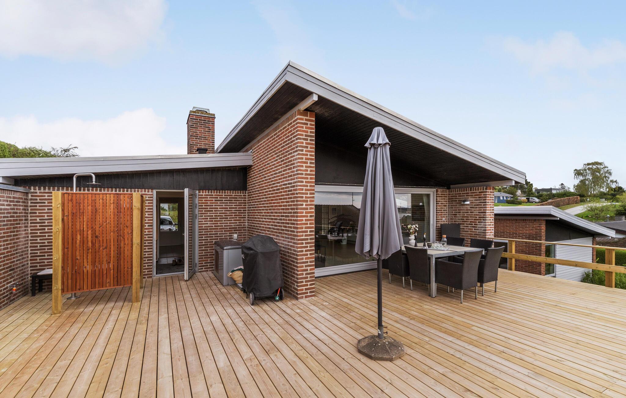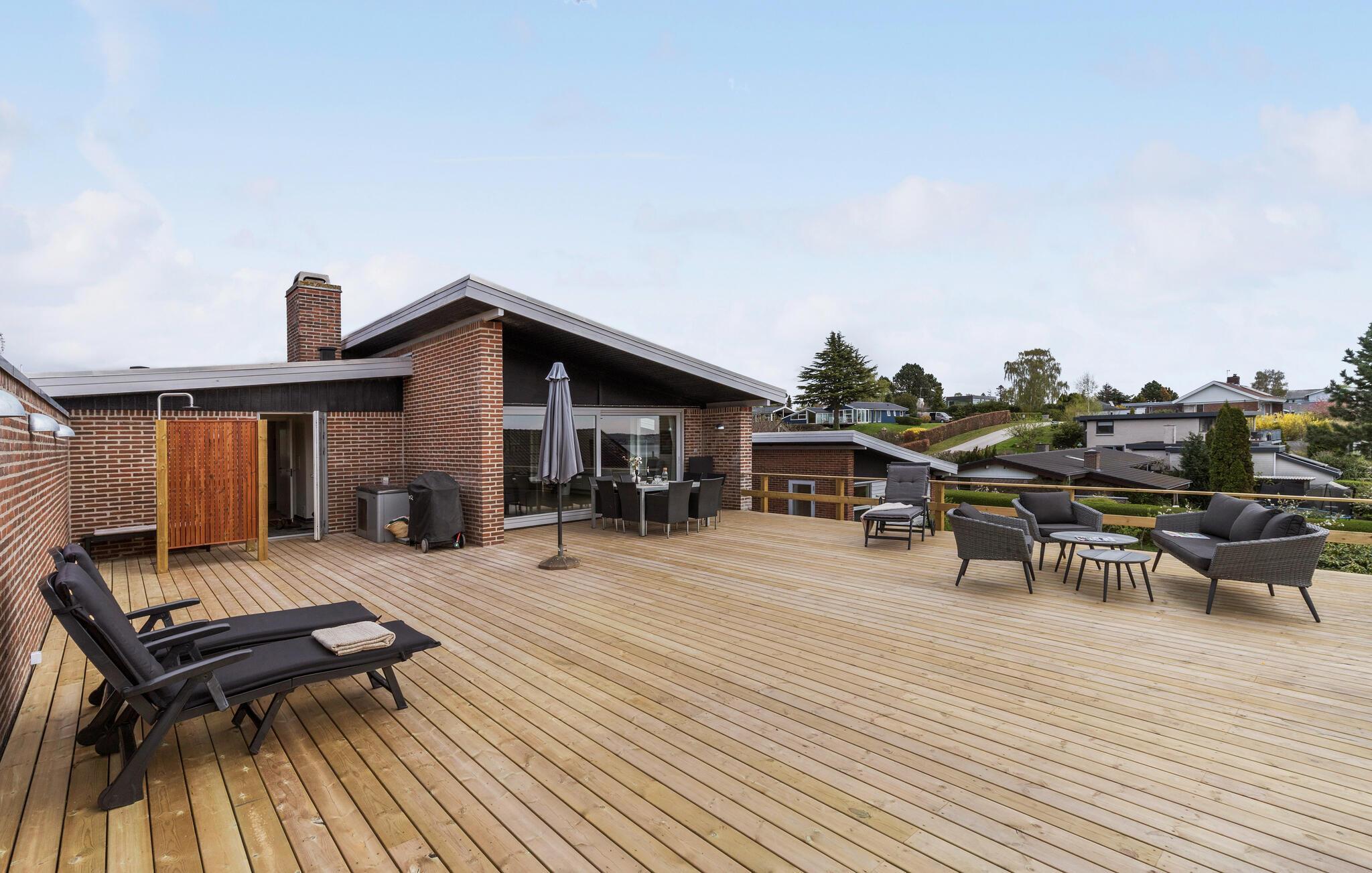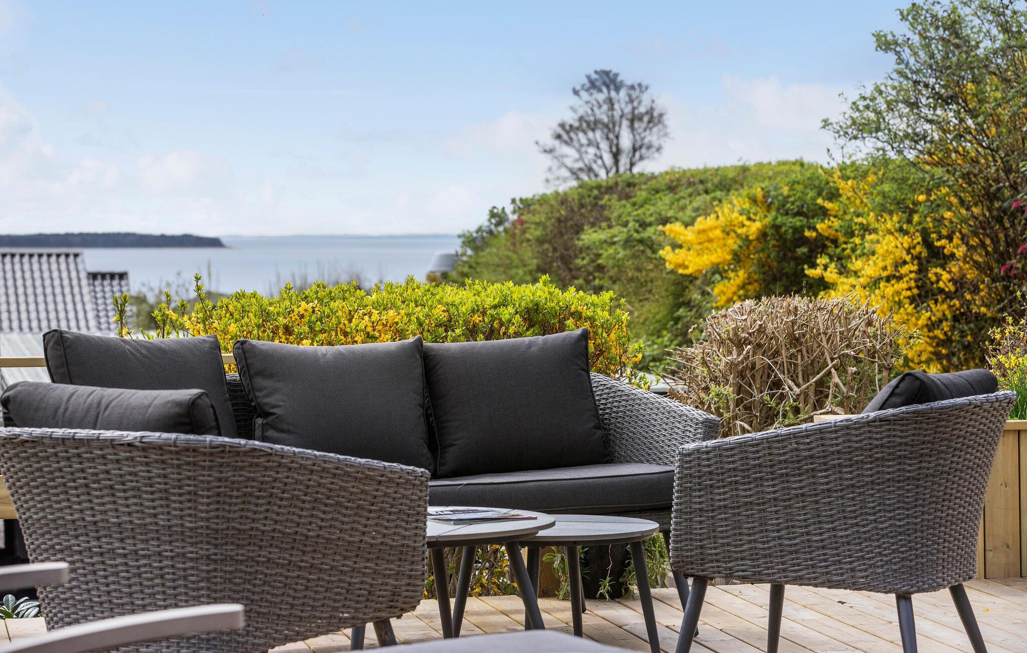 Mit einer fanatischer Panoramaaussicht auf die Ebeltoft Bucht heißt Sie dieses komfortable und große Ferienhaus mit schöner Terrasse willkommen.