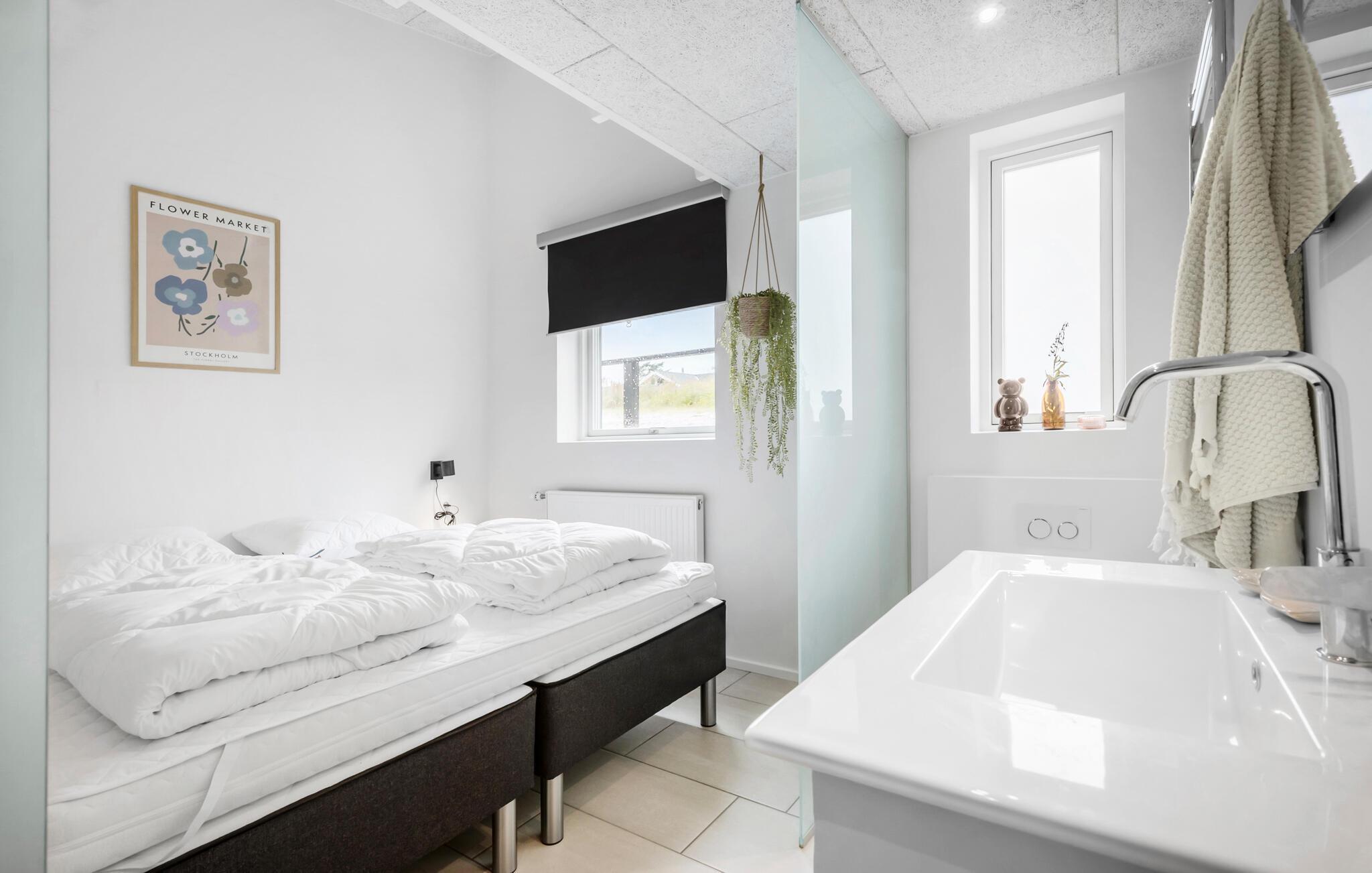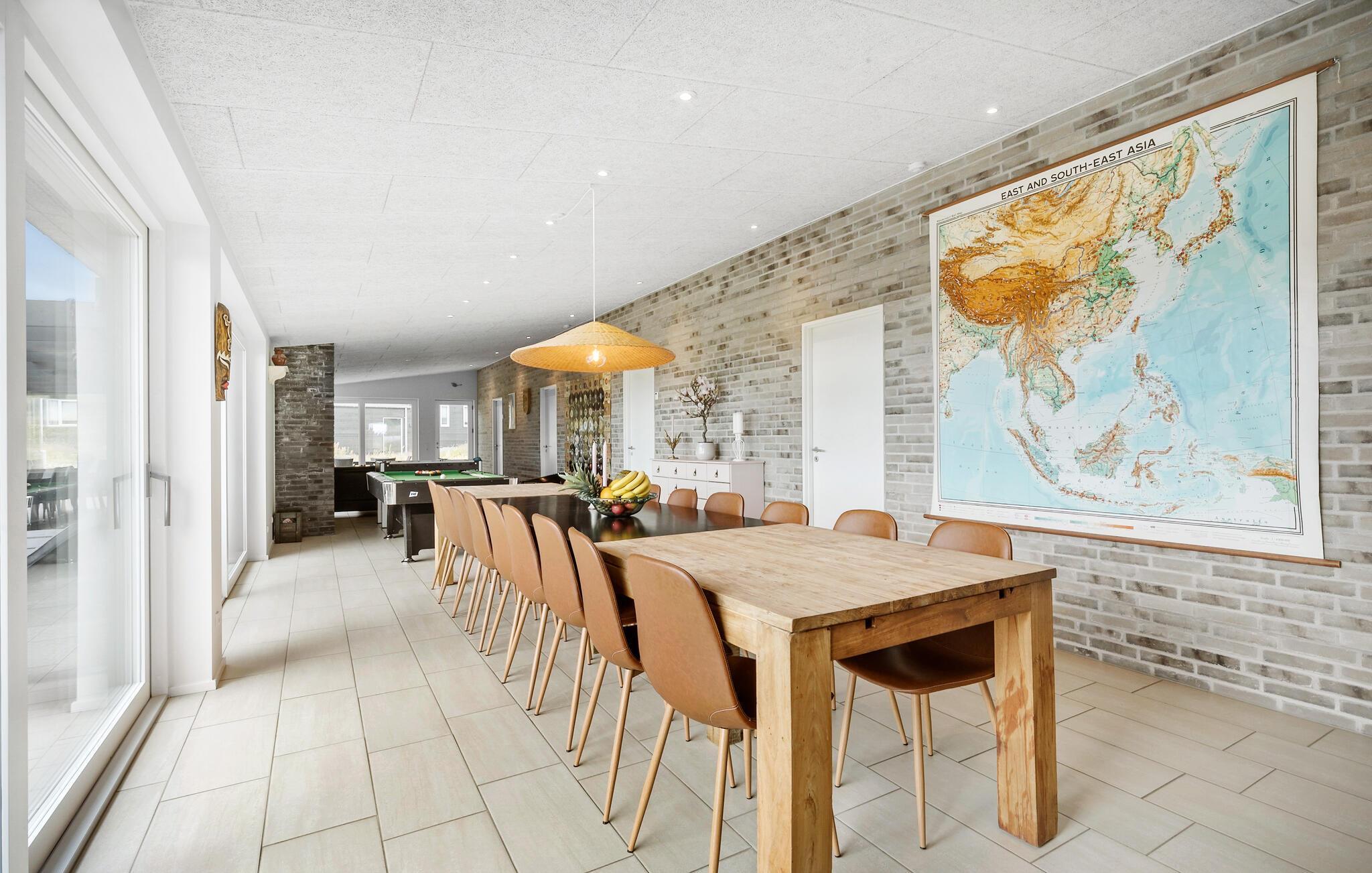 Ihr luxuriös anmutendes Ferienhaus am Egsmark Strand, das Platz für bis zu drei Familien bietet, hat alles, was Sie für einen wundervollen Aufenthalt in Dänemark benötigen. Lassen Sie sich von der modernen Ausstattung und der gemütlichen Atmosphäre begeistern. Beginnen Sie Ihren Tag mit einem ausgiebigen Frühstück. Speisen können Sie an einem der langen Esstische, entweder auf dem überdachten Teil der Terrasse oder im gemütlichen Wohnbereich. Danach können Sie es sich auf dem großzügigen Sofa bequem machen, einen Film schauen und die Pläne des Tages besprechen. Ein weiteres Highlight: In Ihrem Ferienhaus haben alle Schlafzimmer jeweils ein eigenes WC und eine Dusche.